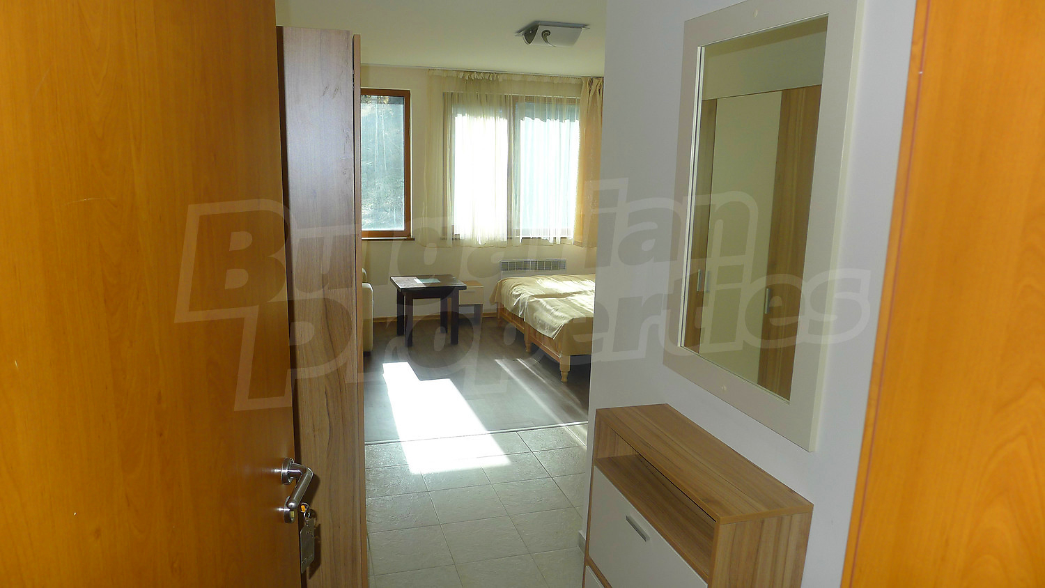 Квартира-студия площадью 35.86 кв. метров в комплексе «Форест Нук» в горнолыжном курорте Пампорово. Окна пвх, паркетный пол, покрашенные стены и терракотовый пол имеются в предлагаемой недвижимости. Недвижимость включает следующую меблировку и оборудование: встроенная кухня, вытяжка, духовка, душевая, меблировку и телевизор. Из основных коммуникаций обеспечены электричество, вода и канализация. Внутренний туалет, внутренняя ванная, парковка вне дороги, терраса, лифт, заасфальтированная дорога, интернет и кабельное телевидение имеются в наличии среди прочих перечисленных характеристик предлагаемого объекта, что обеспечит дополнительный комфорт для пользования. Виды на горы и виды на лес открываются с недвижимости, раскрывая часть красот живописной Болгарии.