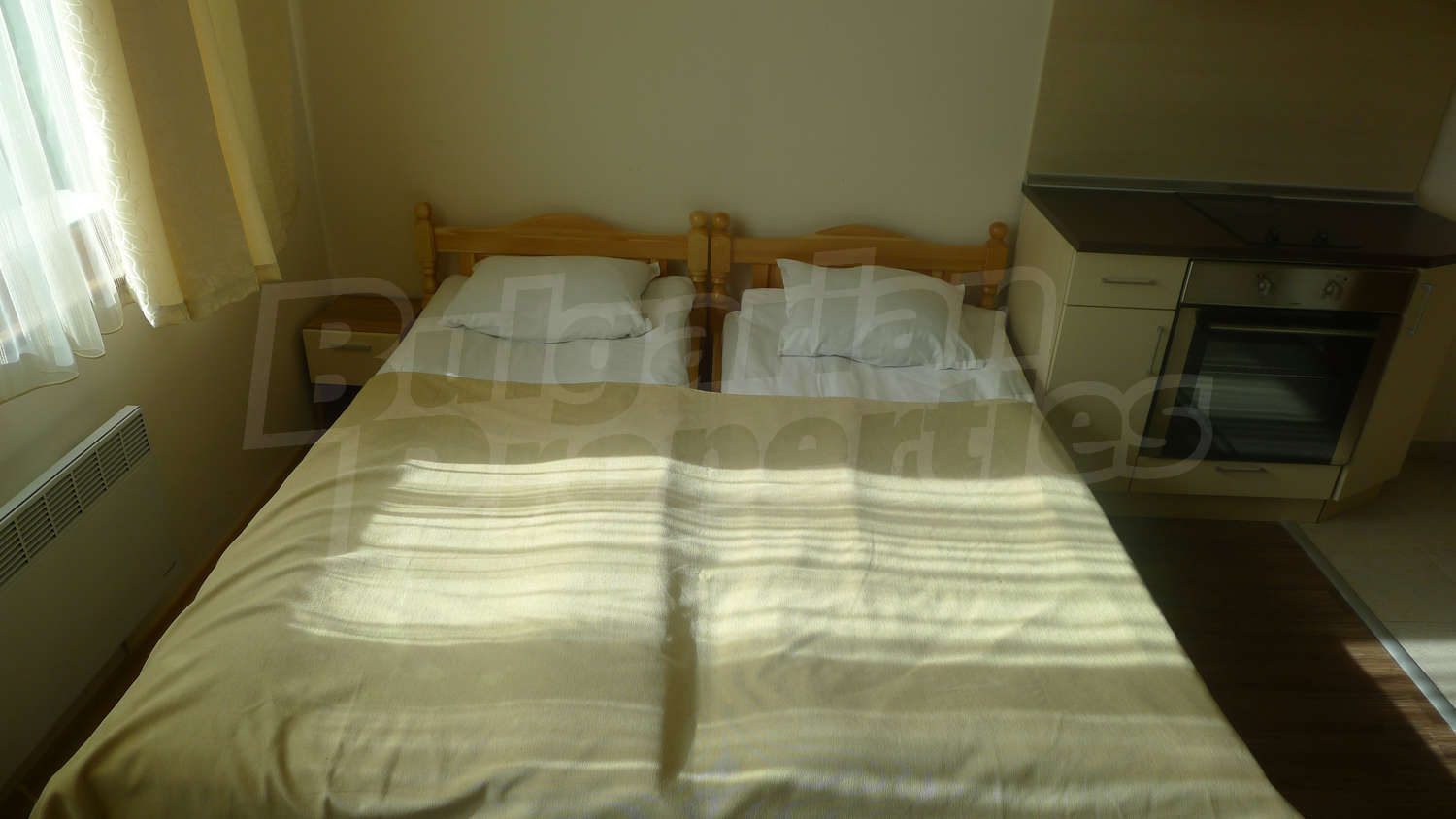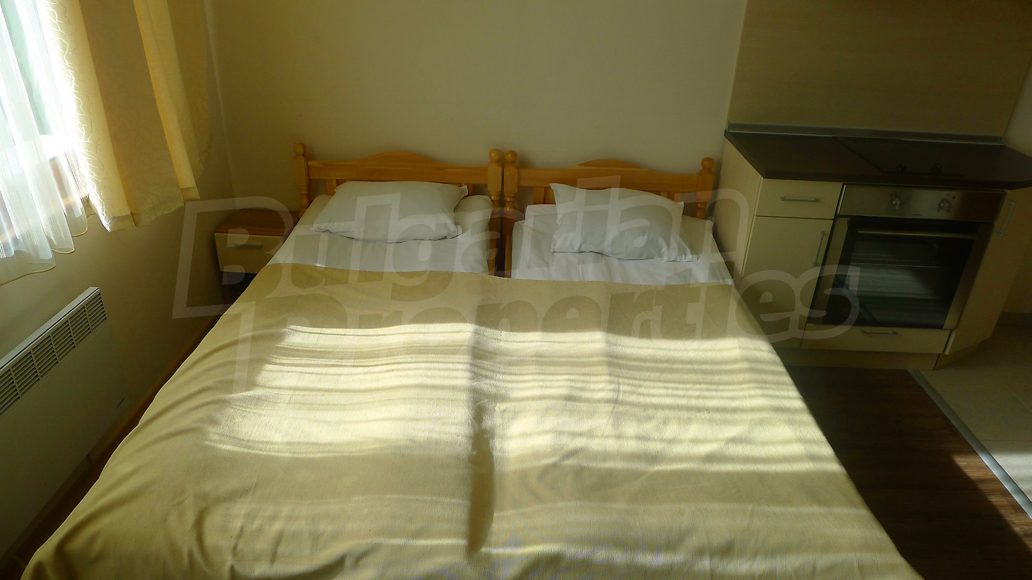 Квартира-студия площадью 35.86 кв. метров в комплексе «Форест Нук» в горнолыжном курорте Пампорово. Окна пвх, паркетный пол, покрашенные стены и терракотовый пол имеются в предлагаемой недвижимости. Недвижимость включает следующую меблировку и оборудование: встроенная кухня, вытяжка, духовка, душевая, меблировку и телевизор. Из основных коммуникаций обеспечены электричество, вода и канализация. Внутренний туалет, внутренняя ванная, парковка вне дороги, терраса, лифт, заасфальтированная дорога, интернет и кабельное телевидение имеются в наличии среди прочих перечисленных характеристик предлагаемого объекта, что обеспечит дополнительный комфорт для пользования. Виды на горы и виды на лес открываются с недвижимости, раскрывая часть красот живописной Болгарии.