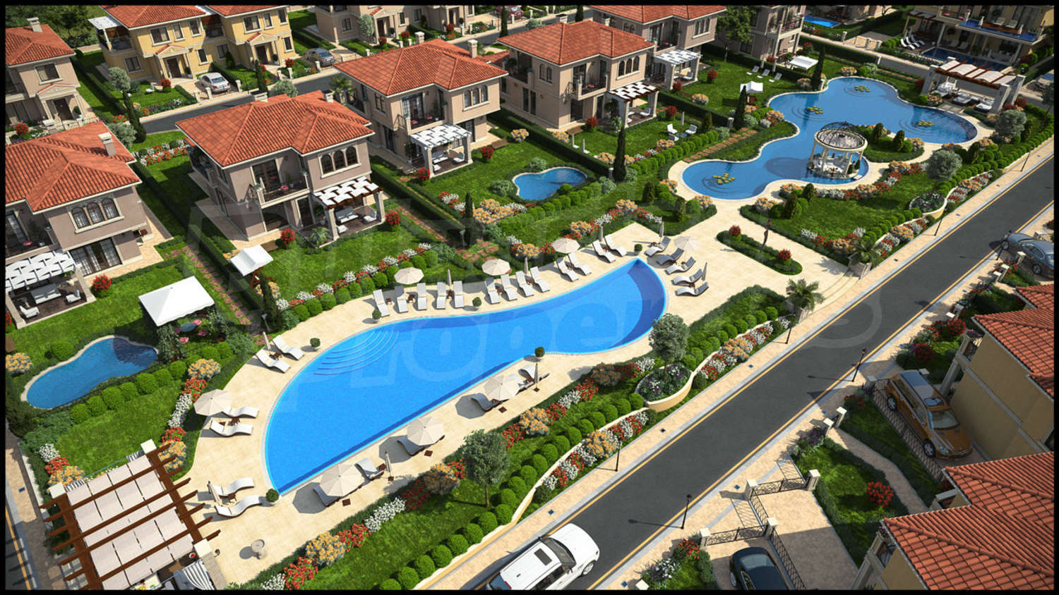 Виктория Парадайз - включает 42 роскошных дома с собственными внутренними двориками и парковочными местами. В процессе строительства возможны индивидуальные интерьерные решения. Дома спроектированы и будут построены в соответствии с требованиями современного строительства - с монолитными железобетонными конструкциями, электрической и сантехнической разводкой, современной гидро- и теплоизоляцией, армированными входными и ламинированными межкомнатными дверями. Для окон предусмотрена пятикамерная система ПВХ со стеклопакетами, а стены возведены из кирпича WIENERBERGER. Безопасность обеспечивается внедренной системой контроля доступа. Для удобства гостей предусмотрена отдельная парковка. Зеленые зоны оформлены богатой и красивой растительностью.