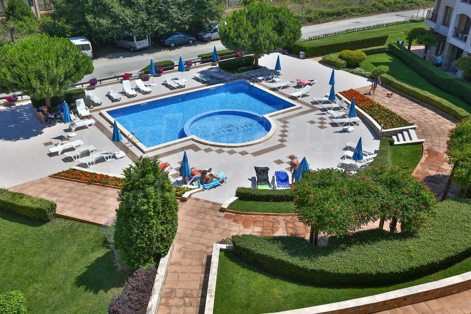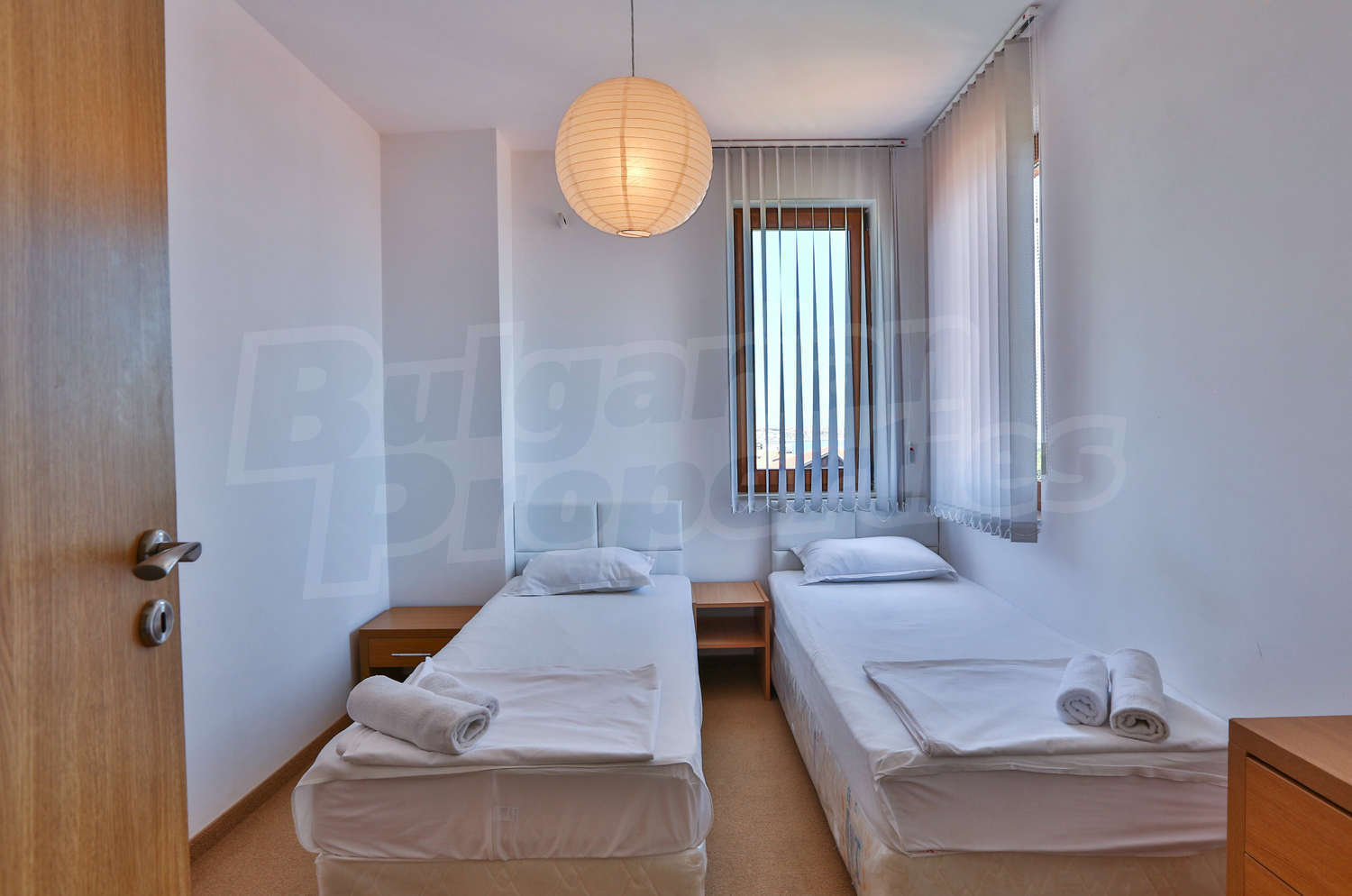 Предлагаемая недвижимость построена в 2008. Отопление кондиционером. Ковровый настил, окна пвх, покрашенные стены и терракотовый пол имеются в предлагаемой недвижимости. Недвижимость включает следующую мебель и оснащение: встроенная кухня, мебель и оборудованная ванная комната. Из основных коммуникаций обеспечены электричество, вода и центральная канализация. Терраса, бассейн, комплекс закрытого типа, лифт, общие части с отделкой люкс, заасфальтированная дорога, интернет и кабельное телевидение имеются в наличии среди прочих обозначенных характеристик предлагаемого объекта, что обеспечит дополнительный комфорт для пользования. Виды на море открываются с недвижимости, раскрывая часть красот живописной Болгарии.