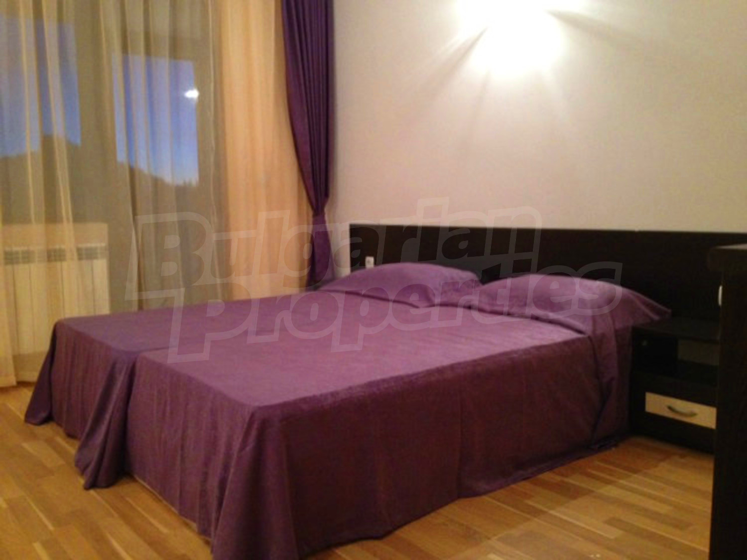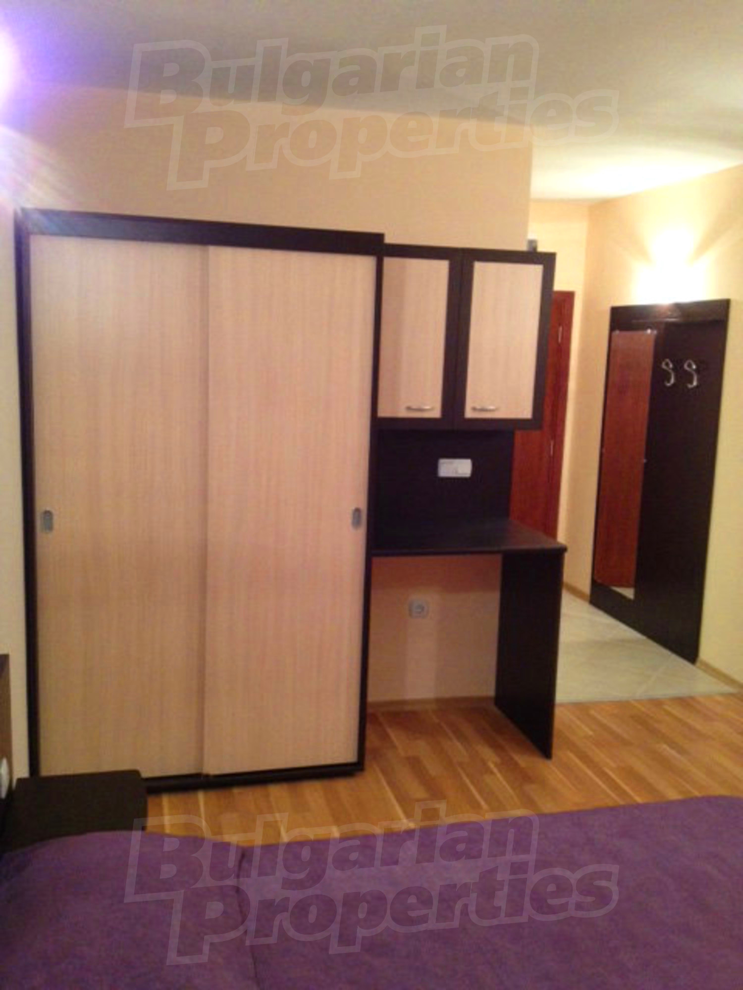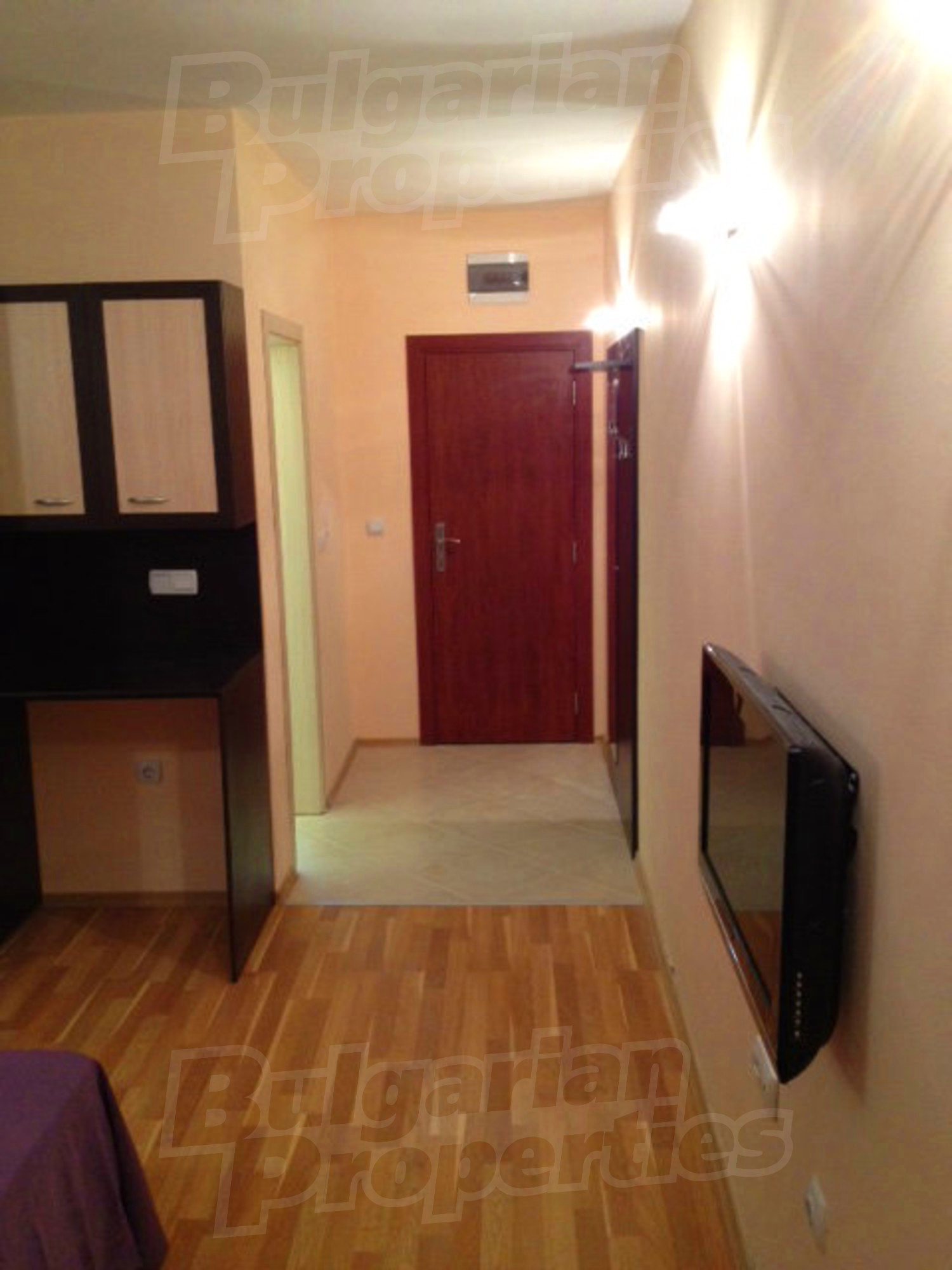 Квартира-студия площадью 40.97 кв.м. Локальное отопление и отопление на электрических радиаторах. Внешняя изоляция, ламинированный пол, окна пвх, покрашенные стены и терракотовый пол имеются в предлагаемой недвижимости. Недвижимость включает следующую меблировку и оборудование: душевая, меблировку, оборудованная ванная комната и холодильник. Из основных коммуникаций обеспечены электричество, вода и центральная канализация. Ванная комната с туалетом, внутренний туалет, внутренняя ванная, терраса, комплекс закрытого типа, консьерж, лифт, общие части с отделкой люкс и заасфальтированная дорога имеются в наличии среди прочих упомянутых характеристик предлагаемого объекта, что обеспечит дополнительный комфорт для пользования. Виды на горы открываются с недвижимости, раскрывая часть красот живописной Болгарии.