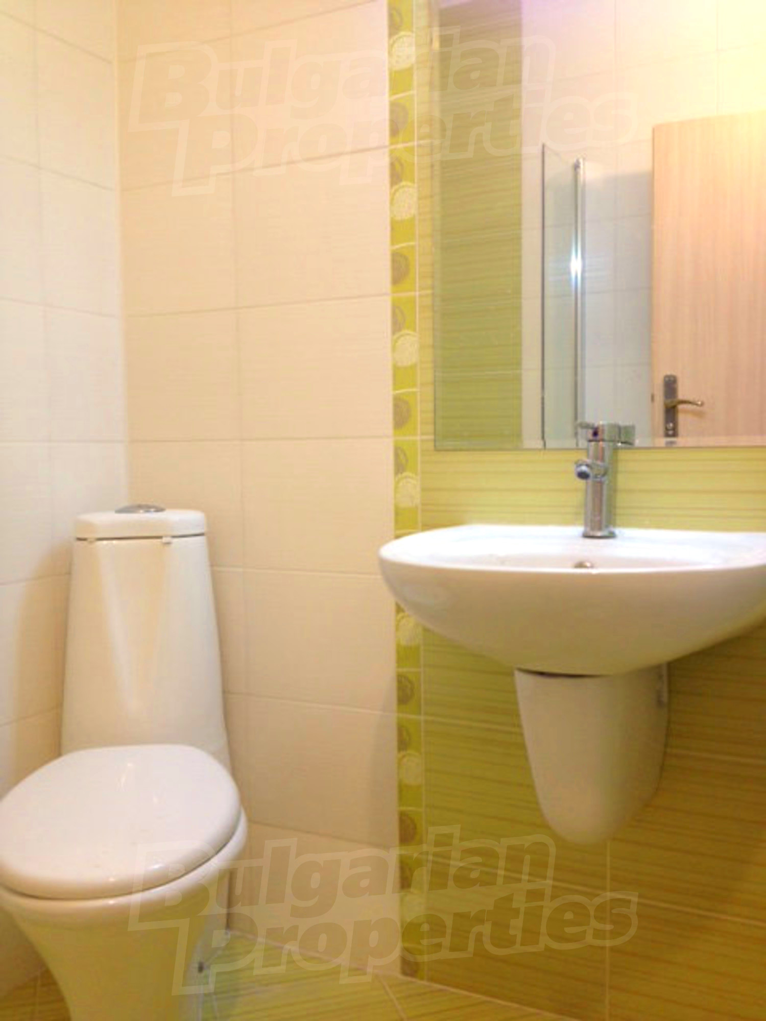 Квартира-студия площадью 40.97 кв.м. Локальное отопление и отопление на электрических радиаторах. Внешняя изоляция, ламинированный пол, окна пвх, покрашенные стены и терракотовый пол имеются в предлагаемой недвижимости. Недвижимость включает следующую меблировку и оборудование: душевая, меблировку, оборудованная ванная комната и холодильник. Из основных коммуникаций обеспечены электричество, вода и центральная канализация. Ванная комната с туалетом, внутренний туалет, внутренняя ванная, терраса, комплекс закрытого типа, консьерж, лифт, общие части с отделкой люкс и заасфальтированная дорога имеются в наличии среди прочих упомянутых характеристик предлагаемого объекта, что обеспечит дополнительный комфорт для пользования. Виды на горы открываются с недвижимости, раскрывая часть красот живописной Болгарии.