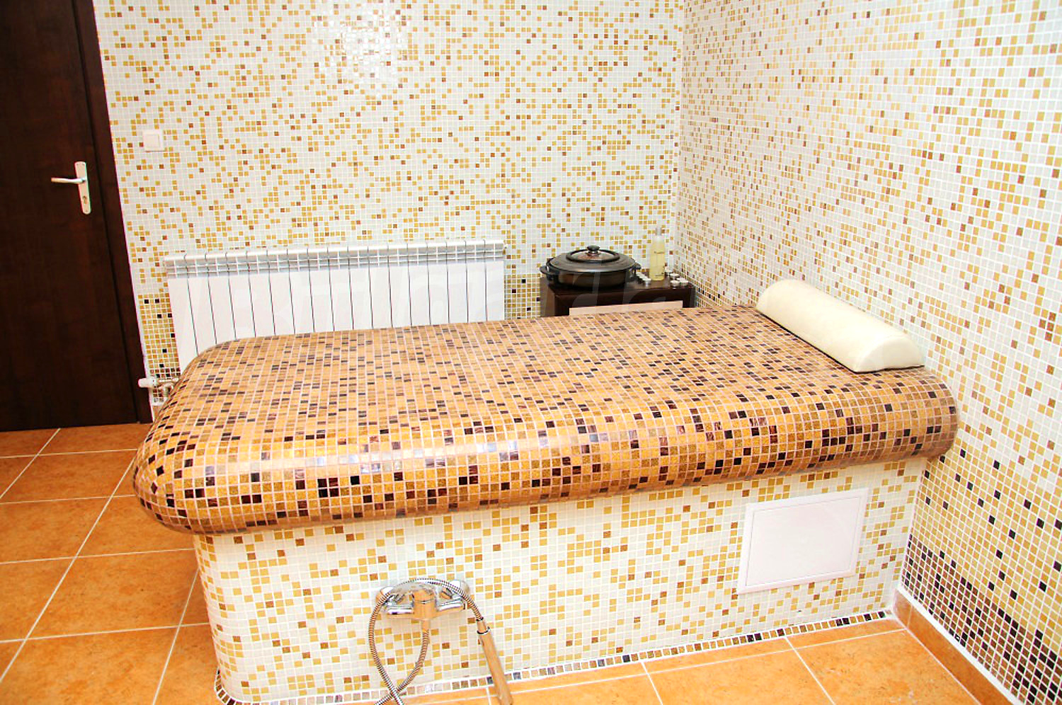 Квартира-студия площадью 40.97 кв.м. Локальное отопление и отопление на электрических радиаторах. Внешняя изоляция, ламинированный пол, окна пвх, покрашенные стены и терракотовый пол имеются в предлагаемой недвижимости. Недвижимость включает следующую меблировку и оборудование: душевая, меблировку, оборудованная ванная комната и холодильник. Из основных коммуникаций обеспечены электричество, вода и центральная канализация. Ванная комната с туалетом, внутренний туалет, внутренняя ванная, терраса, комплекс закрытого типа, консьерж, лифт, общие части с отделкой люкс и заасфальтированная дорога имеются в наличии среди прочих упомянутых характеристик предлагаемого объекта, что обеспечит дополнительный комфорт для пользования. Виды на горы открываются с недвижимости, раскрывая часть красот живописной Болгарии.