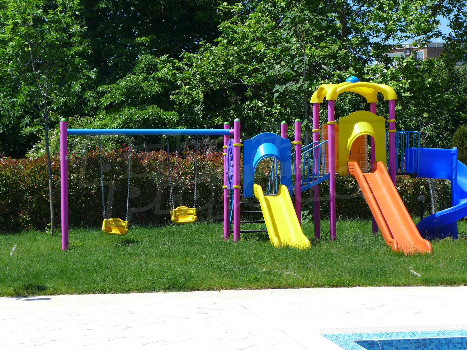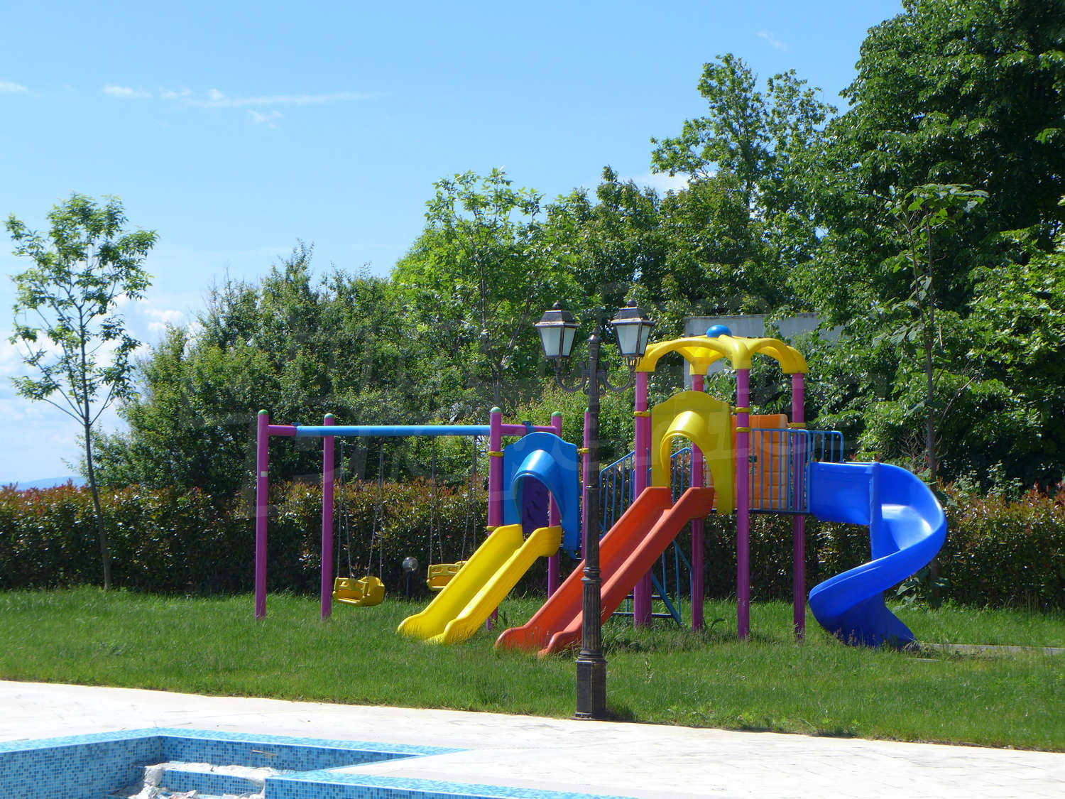 7. Бассейн с пандусами и шезлонгами
