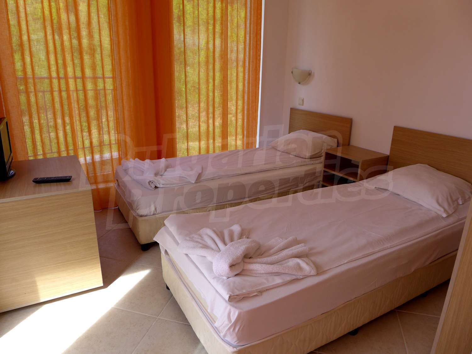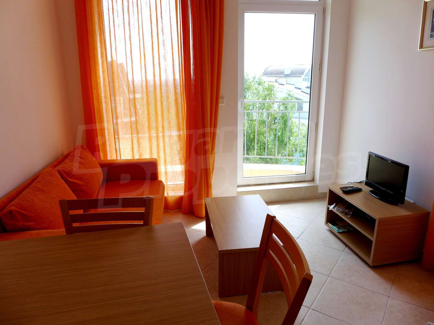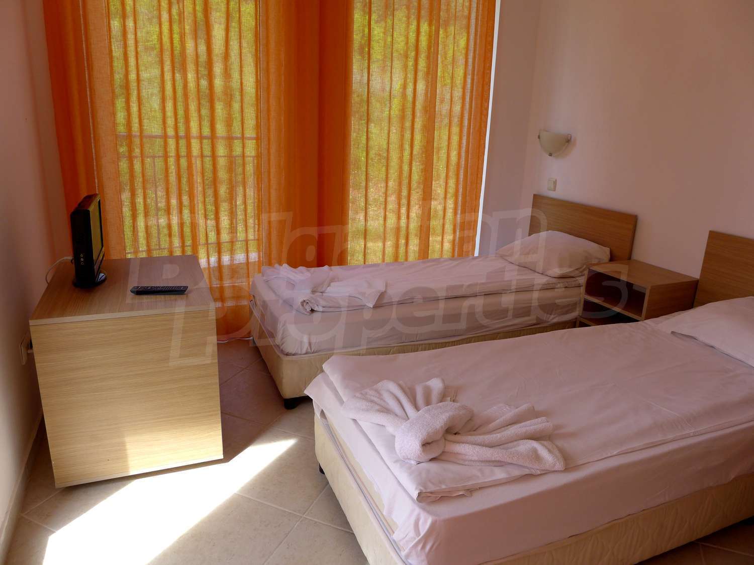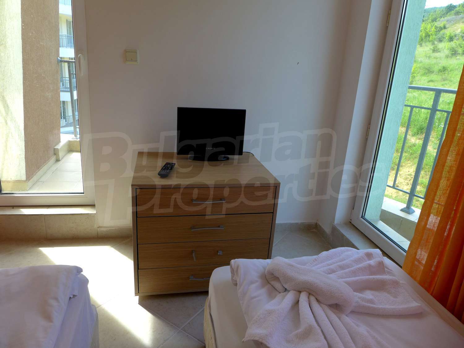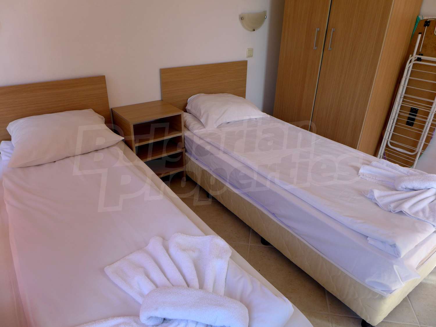 Двухкомнатная квартира площадью 62 кв.м. Предлагаемая недвижимость построена в 2008. Отопление кондиционером. Обеспечено кондиционирование следующего типа: стандартные кондиционеры. Межкомнатные двери, окна пвх, покрашенные стены и терракотовый пол имеются в предлагаемой недвижимости. Недвижимость включает следующую мебель и оснащение: бойлер электрический, вытяжка, духовка, душевая, кондиционер, мебель, оборудованная ванная комната, стиральная машина и телевизор. Из основных коммуникаций обеспечены электричество, вода, центральное водоснабжение и канализация. Балконы, ванная комната с туалетом, парковка вне дороги, бассейн, комплекс закрытого типа, консьерж, лифт, общие части с отделкой люкс, заасфальтированная дорога, интернет и кабельное телевидение имеются в наличии среди прочих указанных характеристик предлагаемого объекта, что обеспечит дополнительные удобства для пользования. Виды на бассейн, виды на внутренний двор и виды на горы открываются с недвижимости, раскрывая часть красот живописной Болгарии.