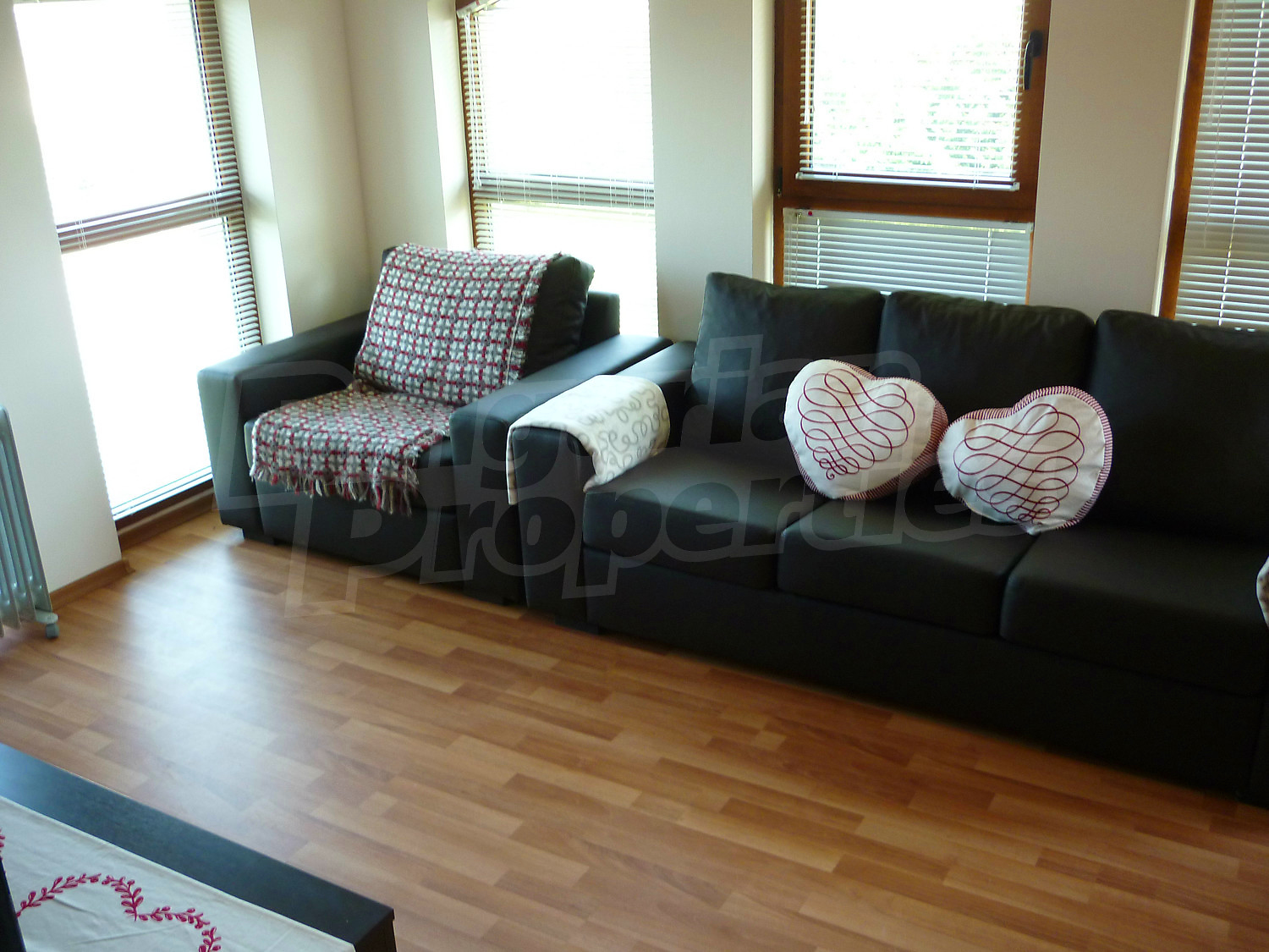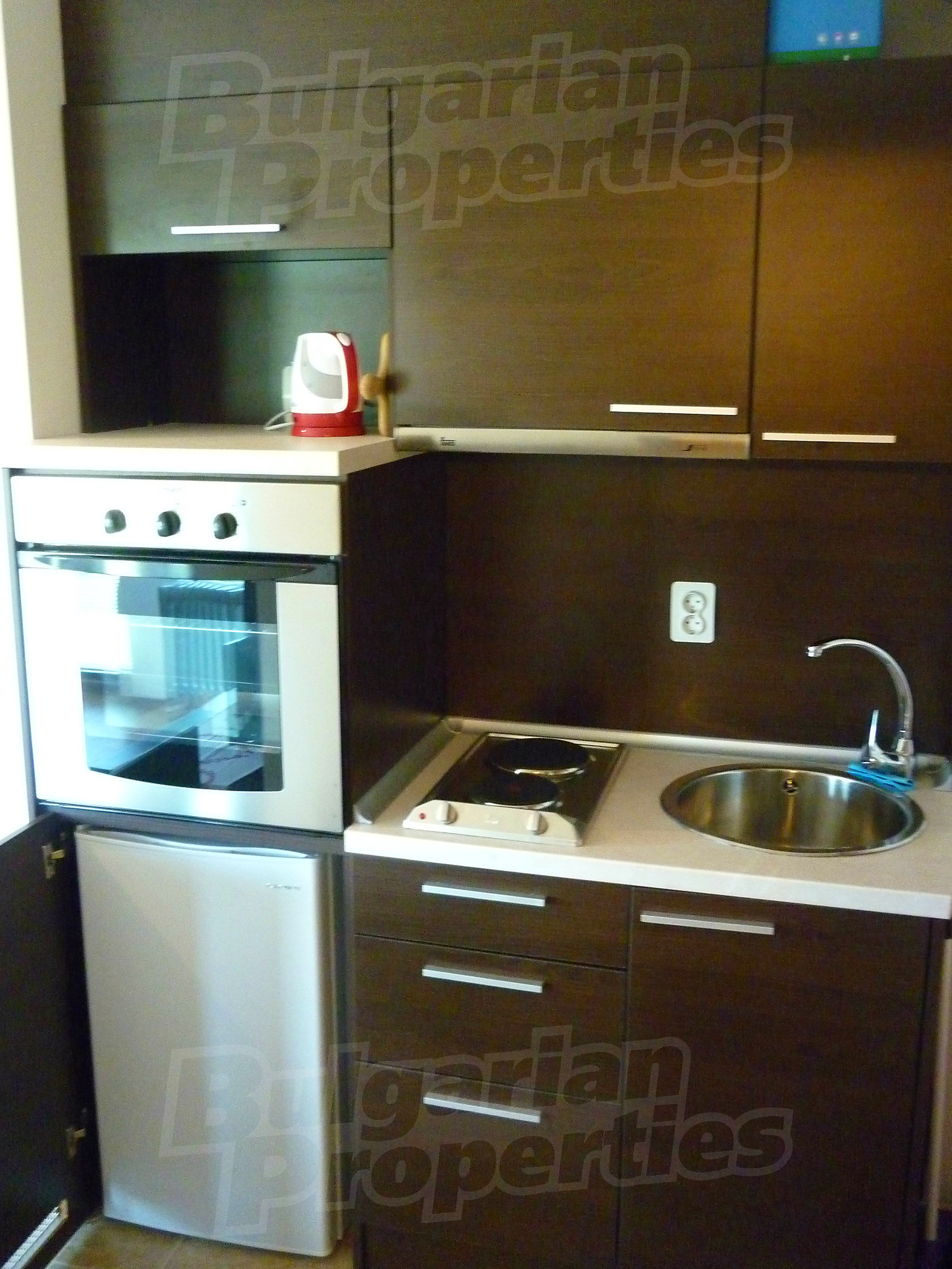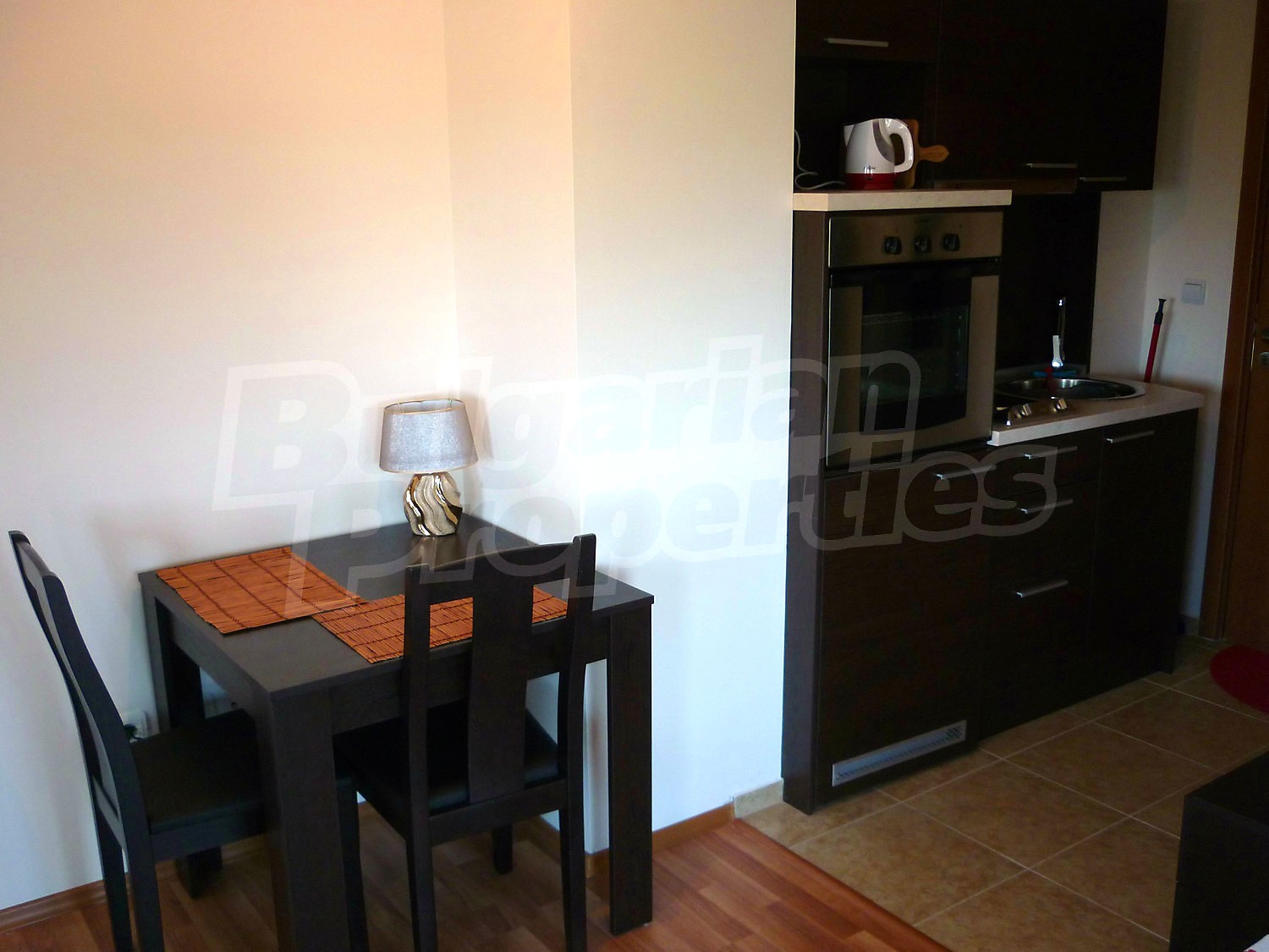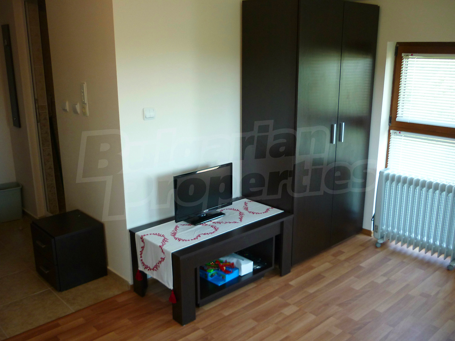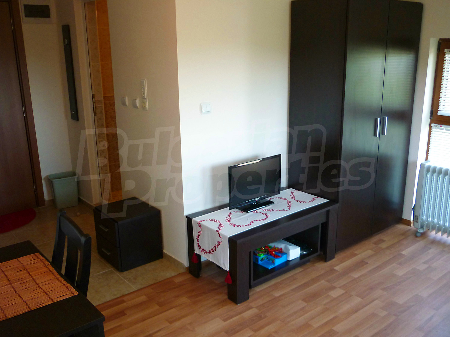 Квартира-студия площадью 34.08 кв.м. Двойной стеклопакет, ламинированный пол, межкомнатные двери, окна пвх и стены покрашенные латексной краской имеются в предлагаемой недвижимости. Из основных коммуникаций обеспечены электричество и центральная канализация. Виды на населенный пункт и виды на горы открываются с недвижимости, раскрывая часть красот живописной Болгарии.