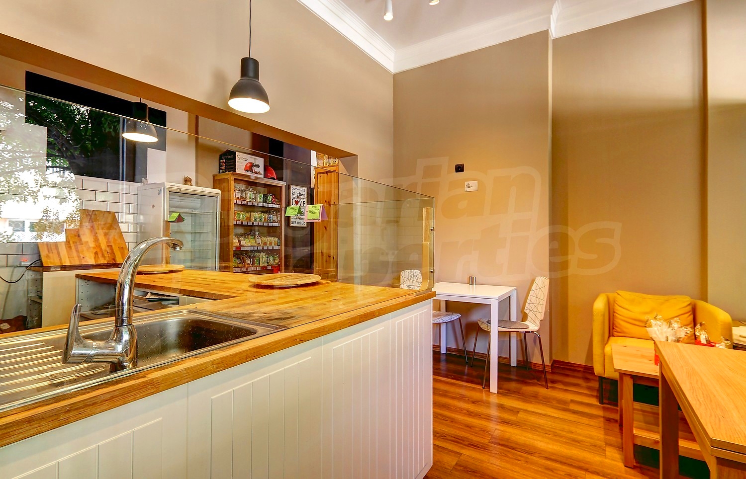 Магазин площадью 48 кв. метров. Отопление кондиционером. Внешняя изоляция, внутренняя изоляция, деревянные полы, межкомнатные двери и покрашенные стены имеются в предлагаемой недвижимости. Недвижимость включает следующую мебель и оборудование: мебель и оборудованная ванная комната. Из основных коммуникаций обеспечены электричество, вода и центральная канализация. Парковка вне дороги, туалет, заасфальтированная дорога и система охранной сигнализации имеются в наличии среди прочих отличительных характеристик предлагаемого объекта, что обеспечит дополнительные удобства для пользования. Виды на город открываются с недвижимости, раскрывая часть красот живописной Болгарии.