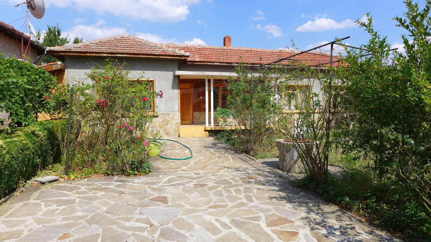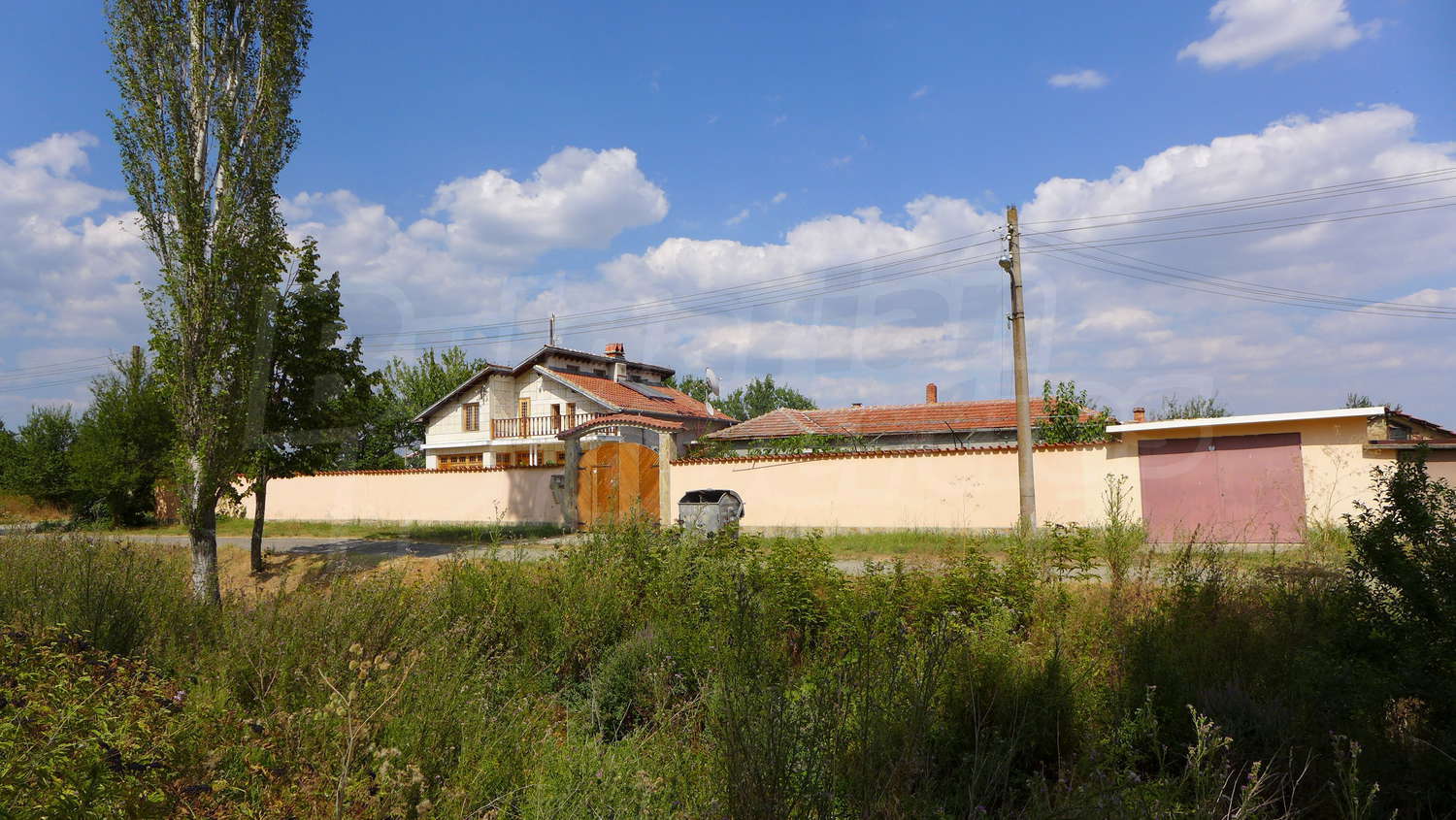 Недвижимость вкратце состоит из двухэтажного большого дома, однаэтажного дома, склада, стоянка, гараж, хозяйственные постройки и обширный сад 1525 кв м.
