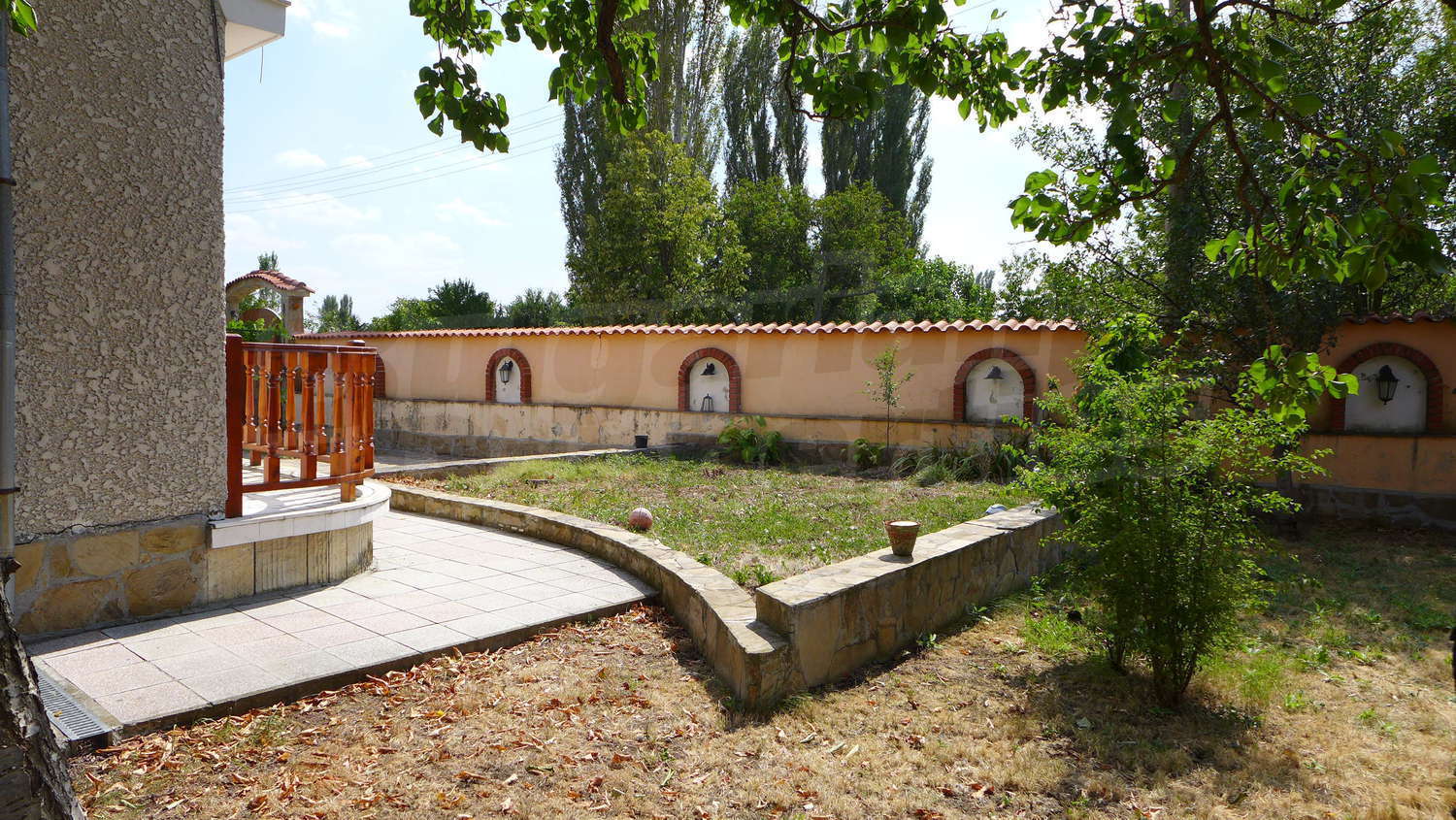 Сад посажены фруктовые деревья. Существует также колодец.