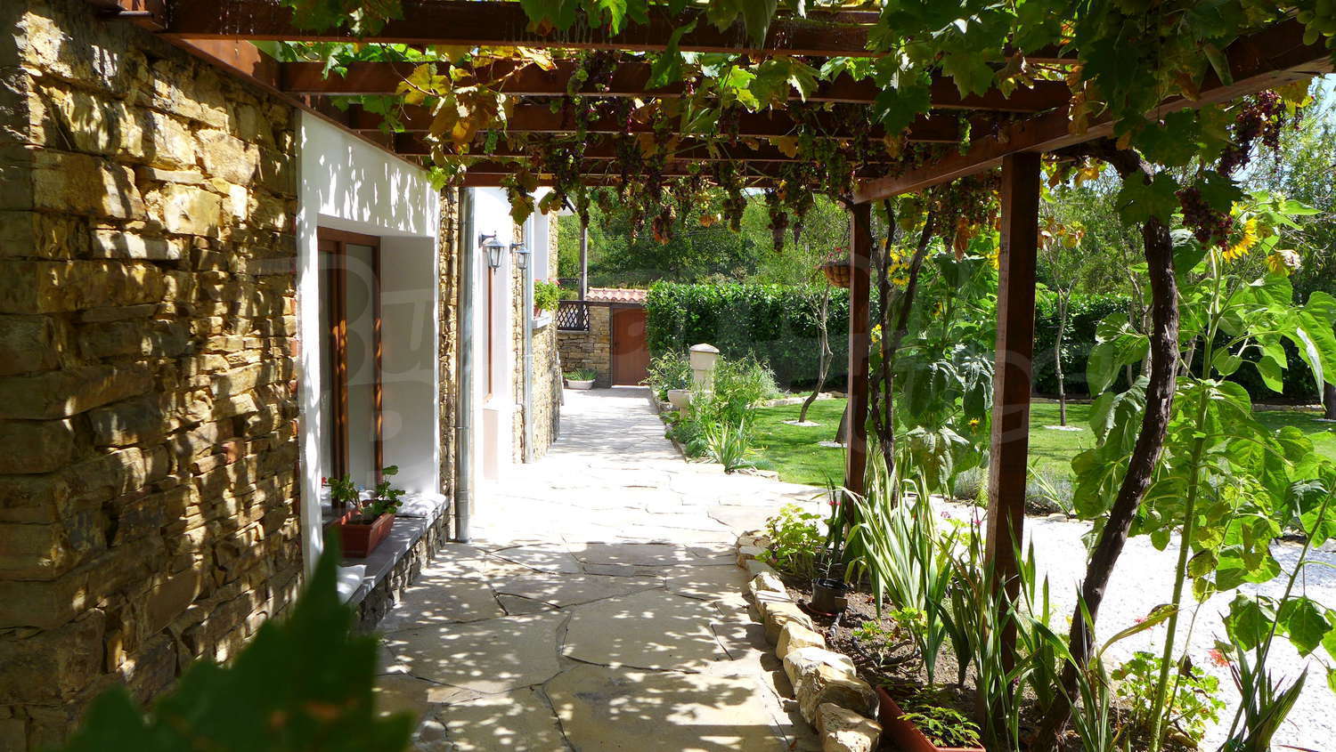 Недвижимость состоит из дом на одном этаже площадью 80 кв.м., гараж и сад 580 кв.м. Жилая площадь распределена между прихожей, коридором, гостиной, кухней, двумя спальнями и двумя ванными комнатами с туалетами. Полы отделаны ламинатом и терракотой, а окна из ПВХ. Дом сделан из камня и кирпича.