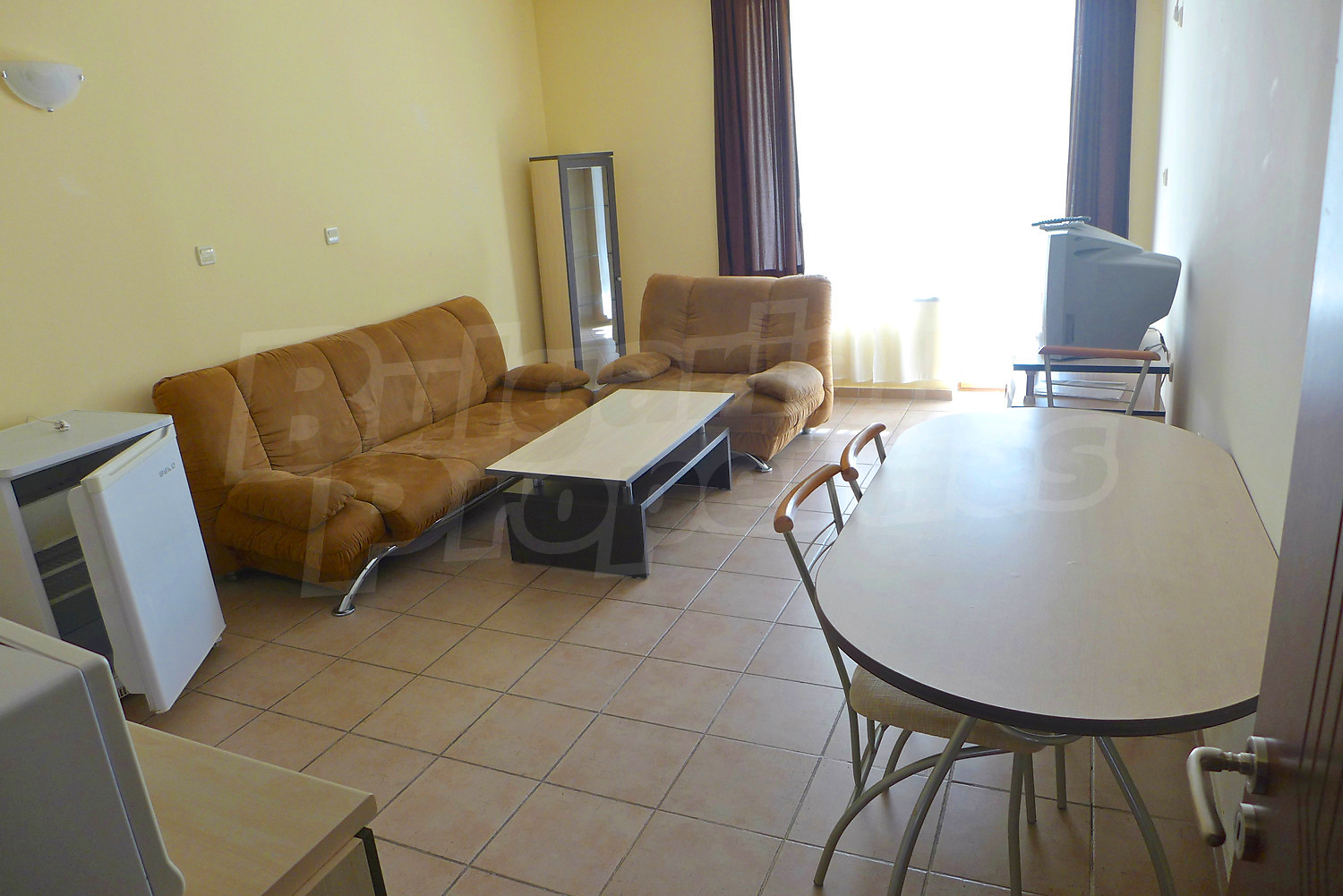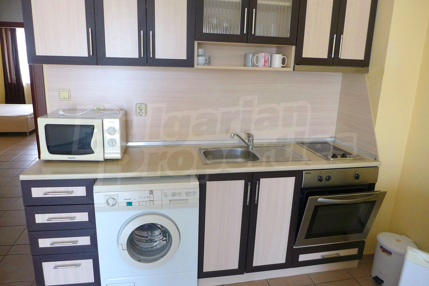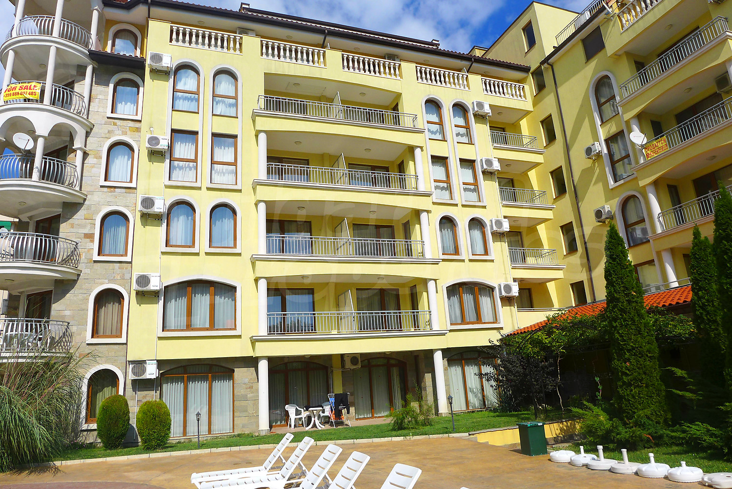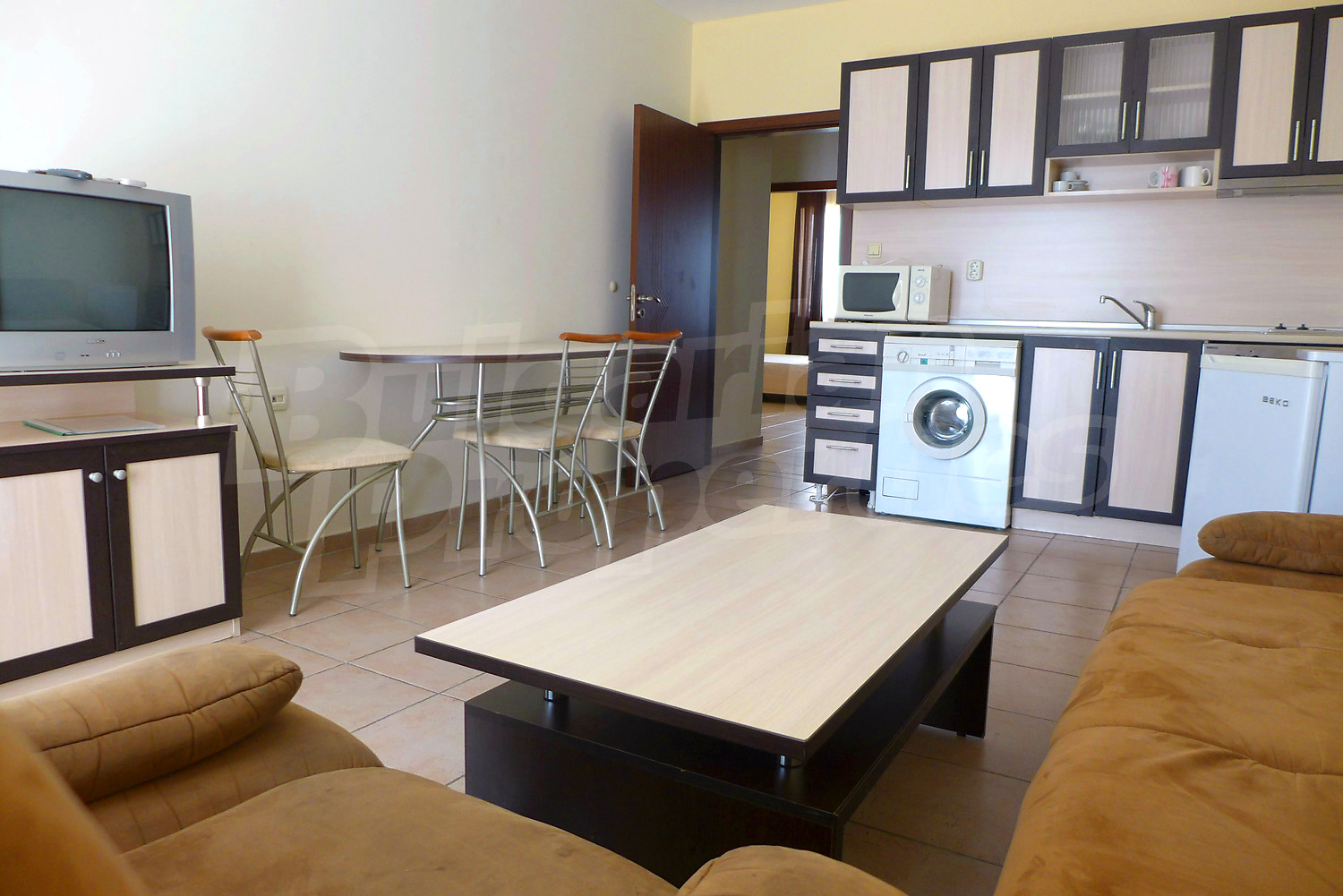 Трехкомнатная квартира площадью 84 м2. Предлагаемая недвижимость построена в 2005. Отопление кондиционером и отопление на электроконвекторах. Обеспечено кондиционирование следующего типа: стандартные кондиционеры. Стены покрашенные латексной краской и терракотовый пол имеются в предлагаемой недвижимости. Недвижимость включает следующую мебель и оборудование: бойлер электрический, встроенная кухня, вытяжка, духовка, кондиционер, мебель, оборудованная ванная комната, стиральная машина, телевизор и холодильник. Из основных коммуникаций обеспечены электричество, центральное водоснабжение и центральная канализация. Ванная комната с туалетом, обозначенная стоянка, терраса, бассейн, комплекс закрытого типа, консьерж, лифт, заасфальтированная дорога и интернет имеются в наличии среди прочих упомянутых характеристик предлагаемого объекта, что обеспечит дополнительные удобства для пользования. Виды на бассейн и виды на внутренний двор открываются с недвижимости, раскрывая часть красот живописной Болгарии.
