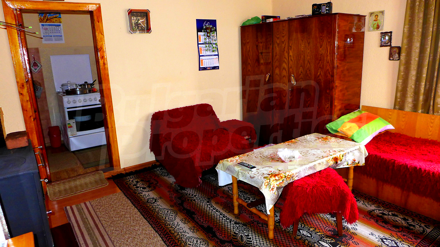Дом площадью 77 кв.м. Предлагаемая недвижимость построена в 1970. Отопление на дровах. Деревянные оконные рамы, деревянные полы, ковровый настил и ламинированный пол имеются в предлагаемой недвижимости. Недвижимость включает следующую мебель и оснащение: мебель и оборудованная ванная комната. Из основных коммуникаций обеспечены электричество, вода и септическая яма. Заасфальтированная дорога имеются в наличии среди прочих отличительных характеристик предлагаемого объекта, что обеспечит дополнительные удобства для пользования. Виды на внутренний двор и виды на село открываются с недвижимости, раскрывая часть красот живописной Болгарии.