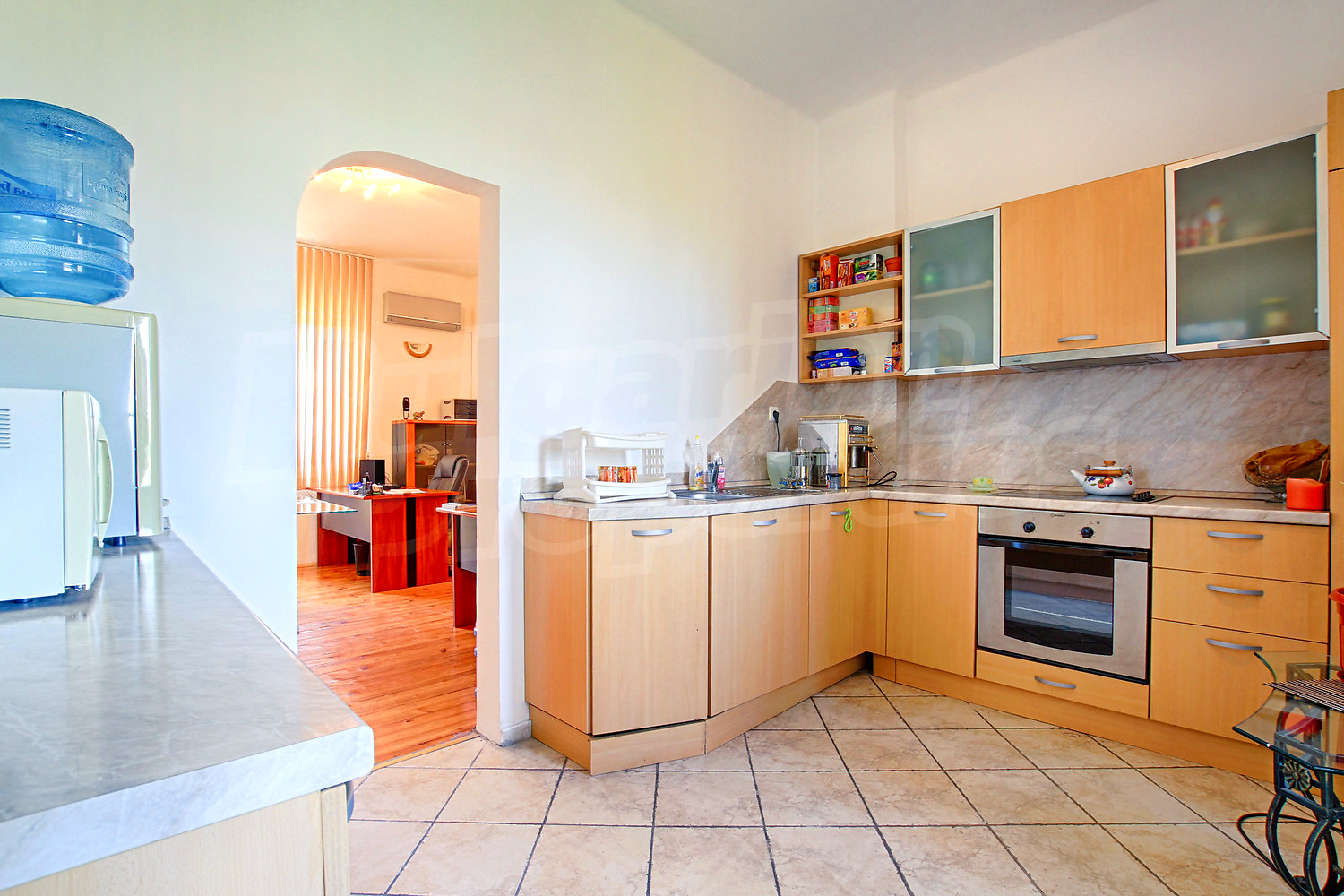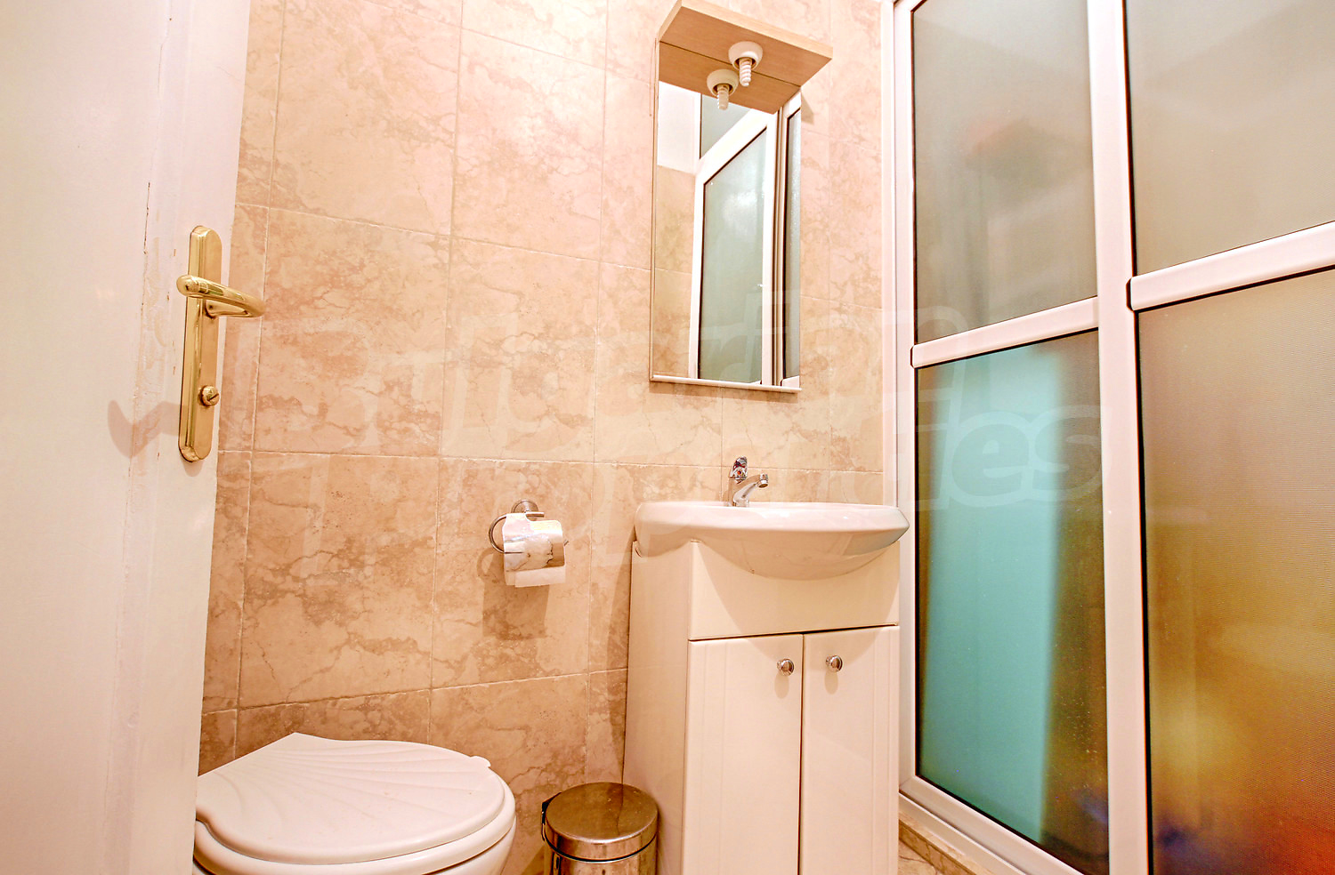 Четырехкомнатная квартира площадью 124.10 кв. метров. Предлагаемая недвижимость построена в 1960. Отопление кондиционером и отопление на электрических радиаторах. Обеспечено кондиционирование следующего типа: стандартные кондиционеры. Деревянные полы, межкомнатные двери, окна пвх, покрашенные стены и терракотовый пол имеются в предлагаемой недвижимости. Недвижимость включает следующую меблировку и оборудование: кондиционер и меблировку. Из основных коммуникаций обеспечены электричество, центральное водоснабжение и центральная канализация. Балконы, ванная комната с туалетом, парковка вне дороги, подвал, туалет, чердачное помещение и заасфальтированная дорога имеются в наличии среди прочих обозначенных характеристик предлагаемого объекта, что обеспечит дополнительный комфорт для пользования. Виды на город открываются с недвижимости, раскрывая часть красот живописной Болгарии.