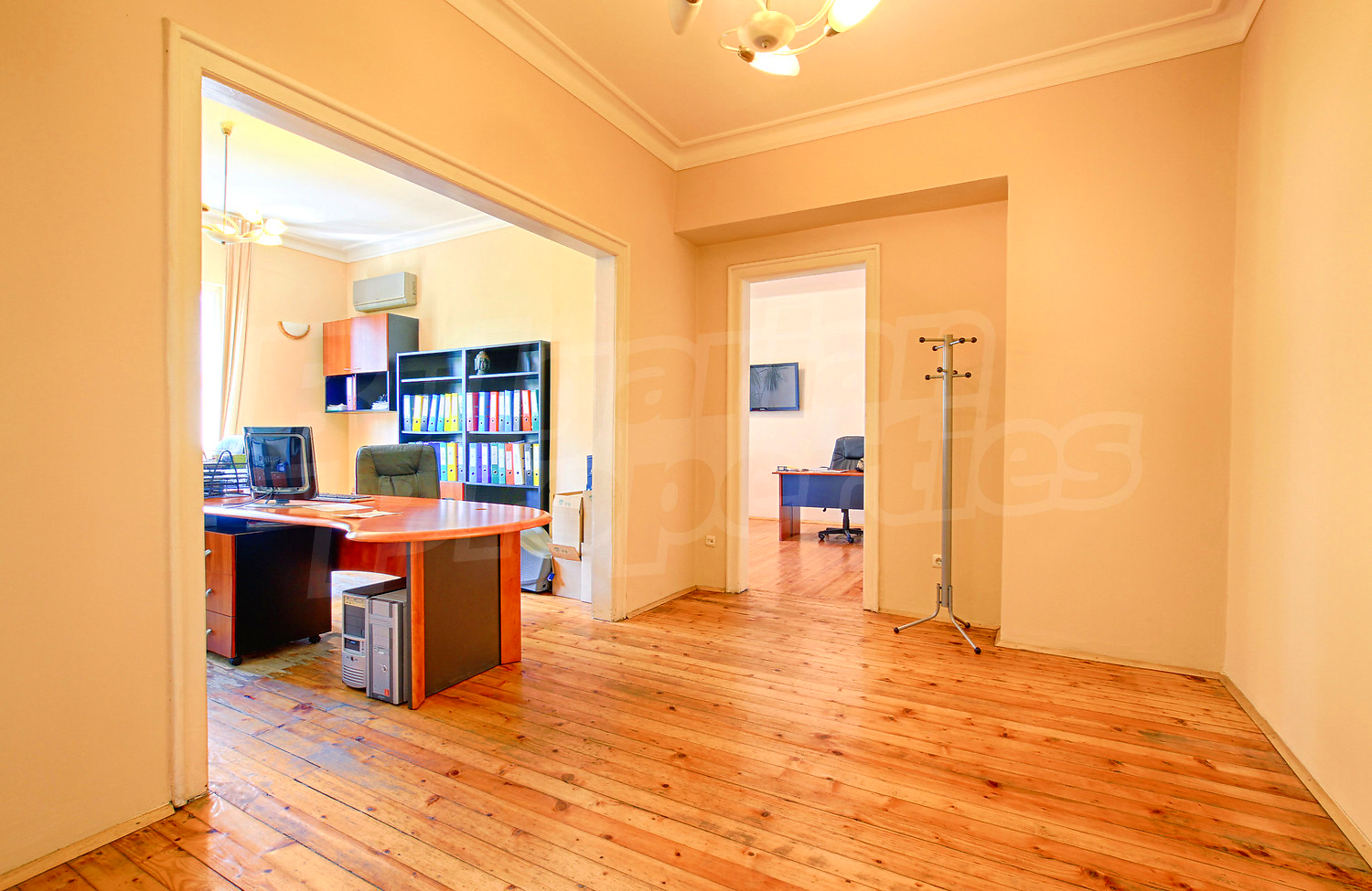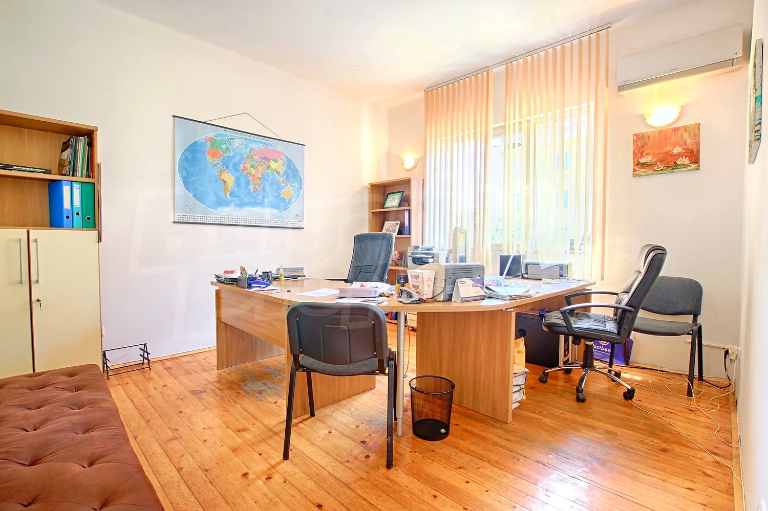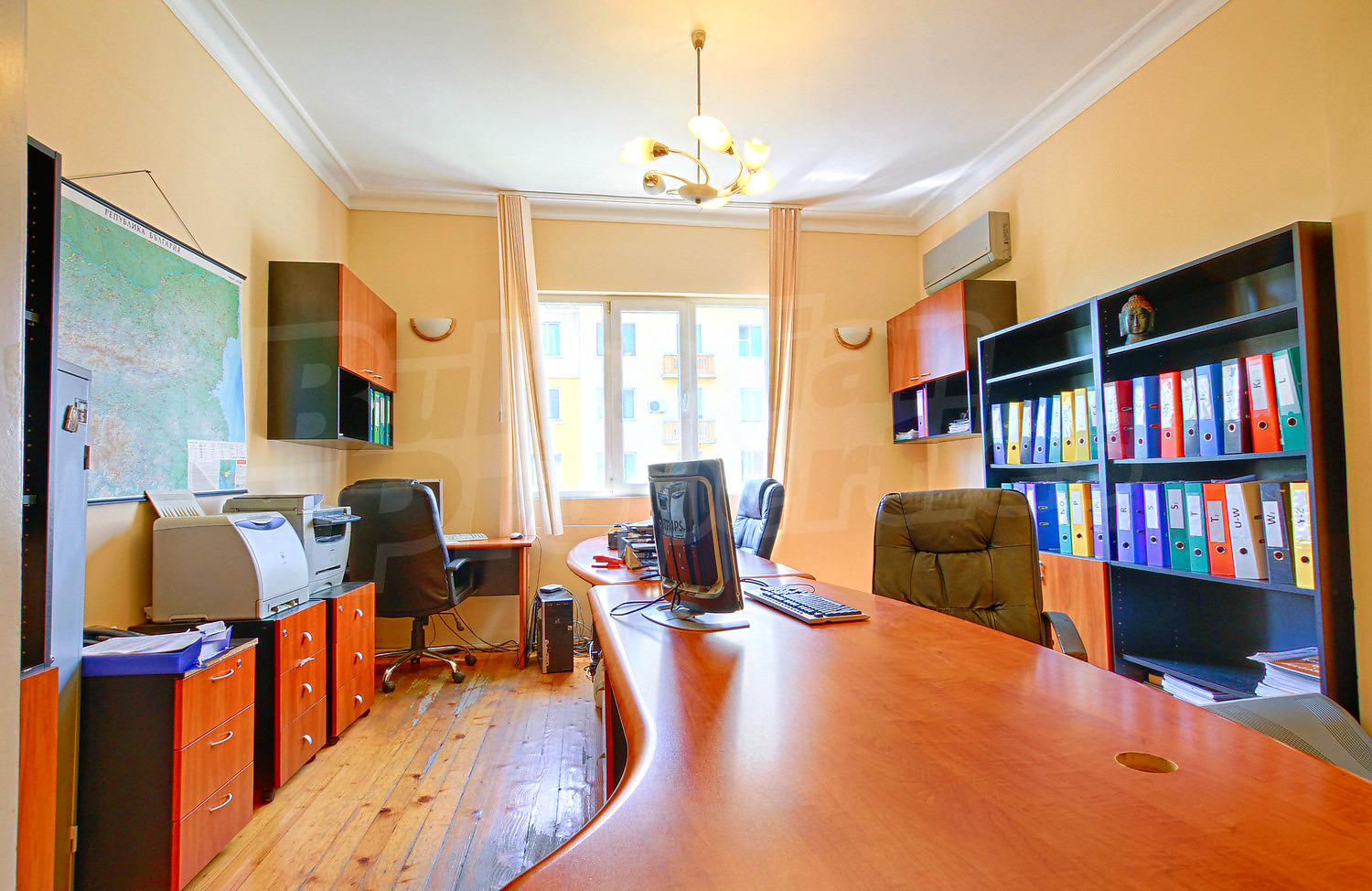Четырехкомнатная квартира площадью 124.10 кв. метров. Предлагаемая недвижимость построена в 1960. Отопление кондиционером и отопление на электрических радиаторах. Обеспечено кондиционирование следующего типа: стандартные кондиционеры. Деревянные полы, межкомнатные двери, окна пвх, покрашенные стены и терракотовый пол имеются в предлагаемой недвижимости. Недвижимость включает следующую меблировку и оборудование: кондиционер и меблировку. Из основных коммуникаций обеспечены электричество, центральное водоснабжение и центральная канализация. Балконы, ванная комната с туалетом, парковка вне дороги, подвал, туалет, чердачное помещение и заасфальтированная дорога имеются в наличии среди прочих обозначенных характеристик предлагаемого объекта, что обеспечит дополнительный комфорт для пользования. Виды на город открываются с недвижимости, раскрывая часть красот живописной Болгарии.