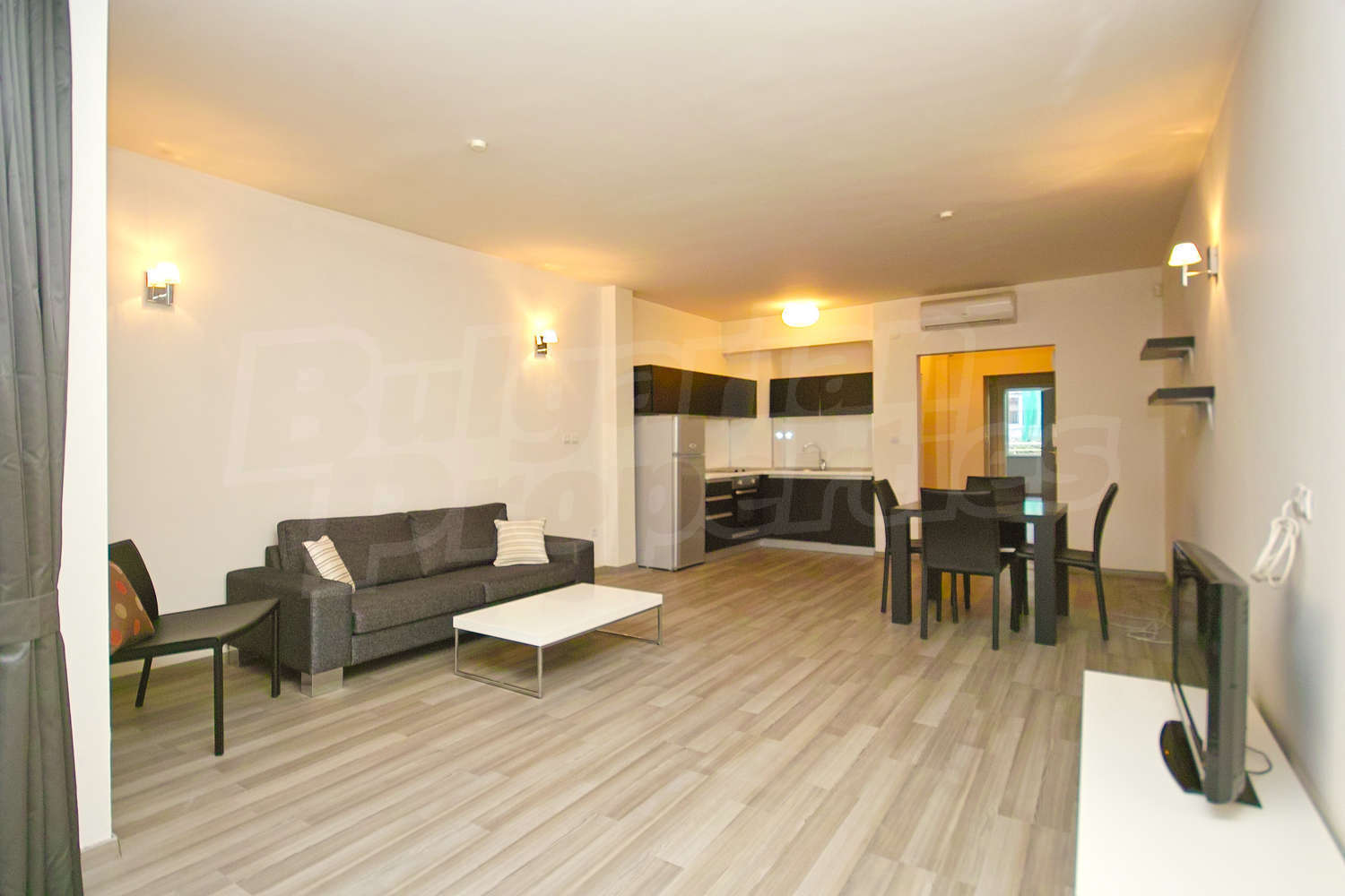 Двухкомнатная квартира площадью 115 кв.м. Предлагаемая недвижимость построена в 2008. Отопление кондиционером. Обеспечено кондиционирование следующего типа: инвенторные кондиционеры. Алюминиевые окна, армированная входная дверь, внешняя изоляция, двойной стеклопакет и ламинированный пол имеются в предлагаемой недвижимости. Недвижимость включает следующую меблировку и оборудование: бойлер электрический, встроенная кухня, вытяжка, духовка, душевая, кондиционер, меблировку, оборудованная ванная комната, посудомоечная машина, стиральная машина, телевизор и холодильник. Из основных коммуникаций обеспечены электричество, вода и центральное водоснабжение. Балконы, ванная комната с туалетом, парковка вне дороги, парковочное место, лифт, общие части с отделкой люкс, заасфальтированная дорога, интернет, интернет Wi-Fi, кабельное телевидение, система охранной сигнализации и спутниковое тв имеются в наличии среди прочих отличительных характеристик предлагаемого объекта, что обеспечит дополнительные удобства для пользования. Виды на горы открываются с недвижимости, раскрывая часть красот живописной Болгарии.