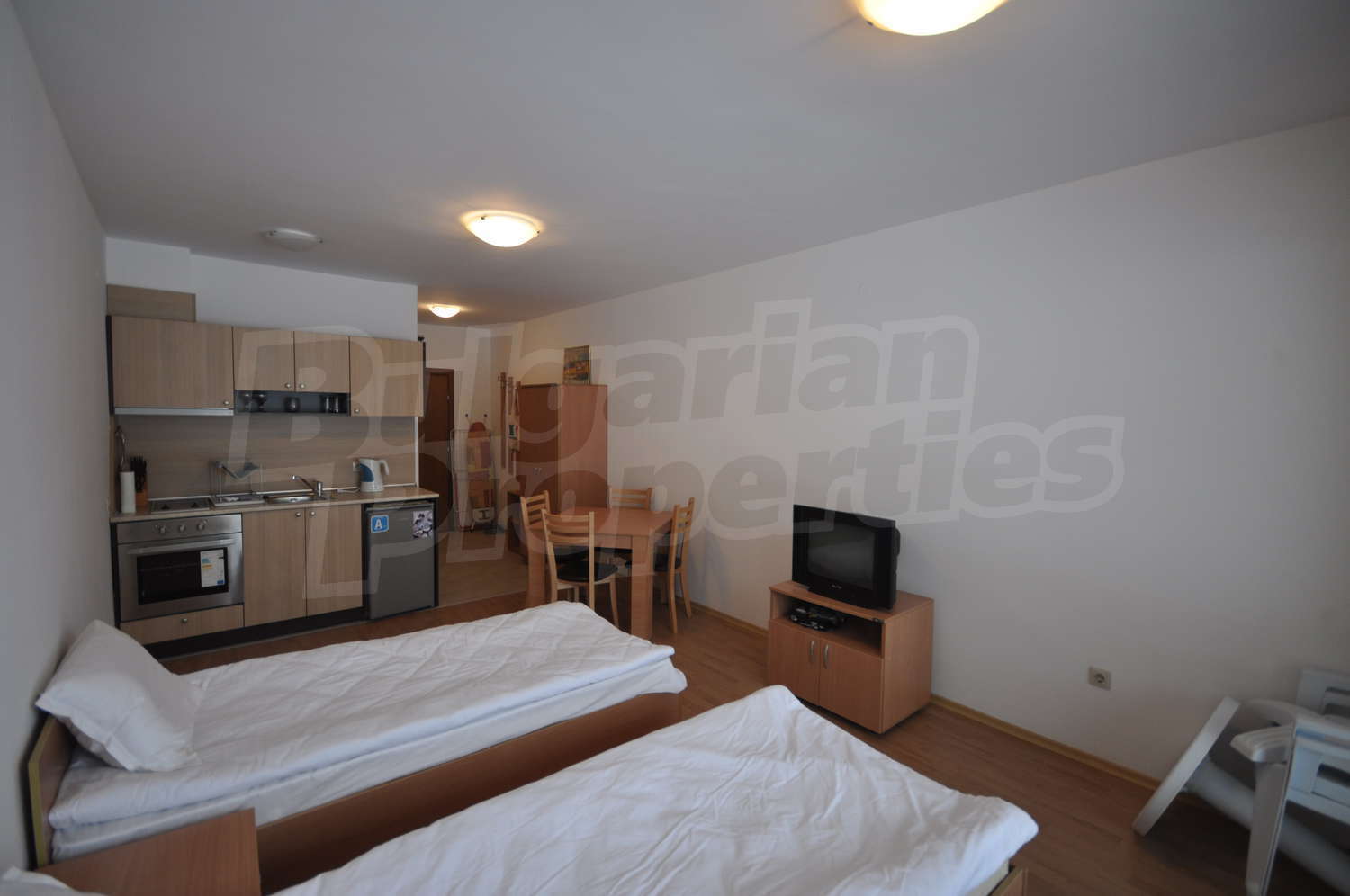 Квартира-студия площадью 51.20 кв.м. Предлагаемая недвижимость построена в 2006. Отопление на электрических радиаторах, отопление на электричестве и отопление на электроконвекторах. Кирпичные стены, ламинированный пол, межкомнатные двери, окна пвх, стены покрашенные латексной краской и терракотовый пол имеются в предлагаемой недвижимости. Недвижимость включает следующую мебель и оснащение: бойлер электрический, ванна, встроенная кухня, вытяжка, духовка, мебель, оборудованная ванная комната, телевизор и холодильник. Из основных коммуникаций обеспечены электричество, центральное водоснабжение и центральная канализация. Парковочное место, терраса, бассейн, джакузи, комплекс закрытого типа, консьерж, лифт, общие части с отделкой люкс, сауна, тренажерный зал, заасфальтированная дорога, интернет, интернет Wi-Fi и кабельное телевидение имеются в наличии среди прочих указанных характеристик предлагаемого объекта, что обеспечит дополнительный комфорт для пользования. Виды на горы и виды на поле открываются с недвижимости, раскрывая часть красот живописной Болгарии.