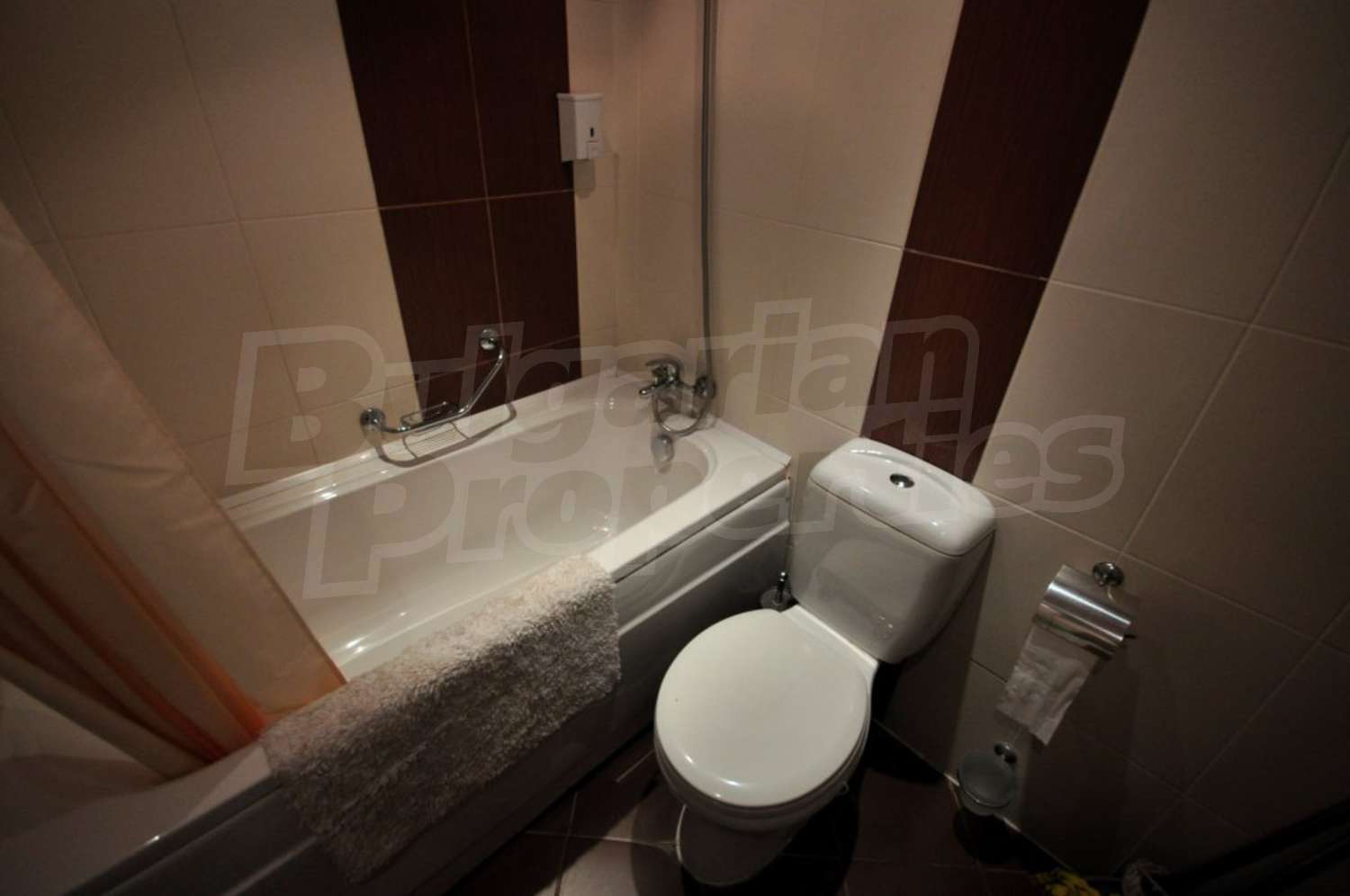 Трехкомнатная квартира площадью 78.28 м2. Предлагаемая недвижимость построена в 2006. Отопление на электрических радиаторах. Ламинированный пол, межкомнатные двери, окна пвх, стены покрашенные латексной краской и терракотовый пол имеются в предлагаемой недвижимости. Недвижимость включает следующую мебель и оборудование: бойлер электрический, ванна, вытяжка и оборудованная ванная комната. Из основных коммуникаций обеспечены электричество, вода и центральная канализация. Ванная комната с туалетом, обозначенная стоянка, терраса, бассейн, джакузи, комплекс закрытого типа, консьерж, лифт, сауна, заасфальтированная дорога, интернет, интернет Wi-Fi и кабельное телевидение имеются в наличии среди прочих указанных характеристик предлагаемого объекта, что обеспечит дополнительный комфорт для пользования. Виды на внутренний двор открываются с недвижимости, раскрывая часть красот живописной Болгарии.