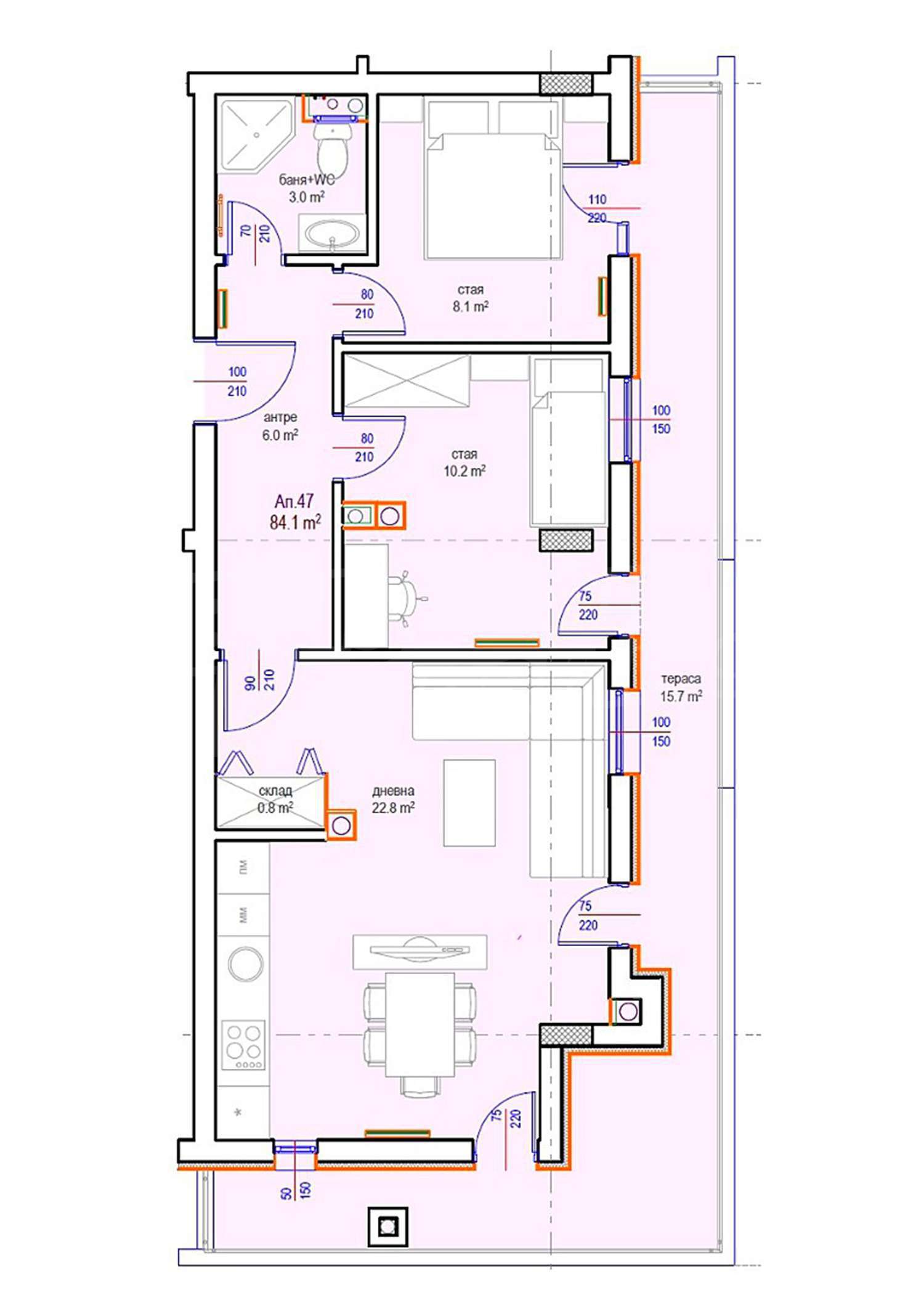 101.26 м2 (жилая площадь: 84.1 м2 плюс общие части: 17.16 м2) еще