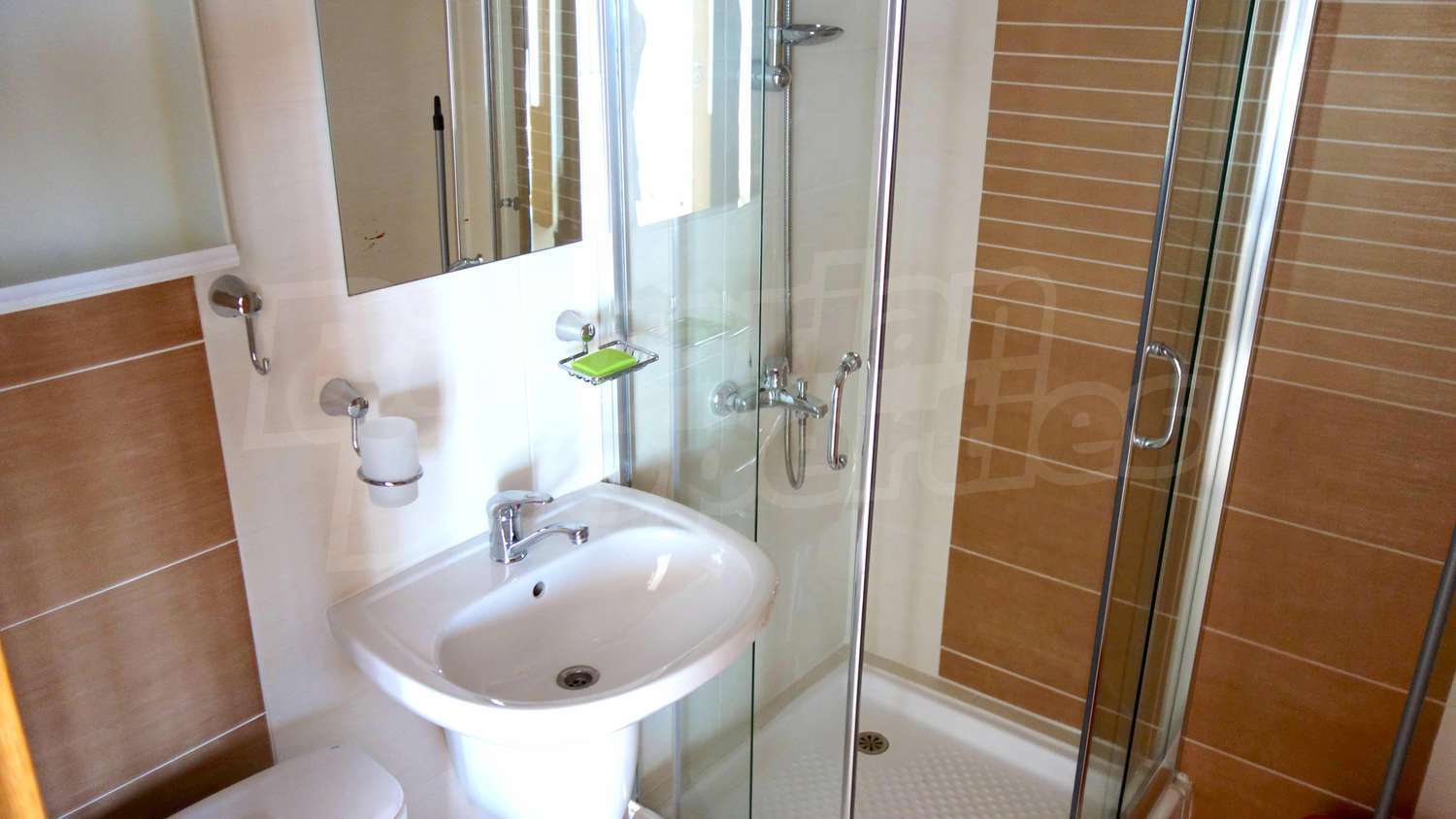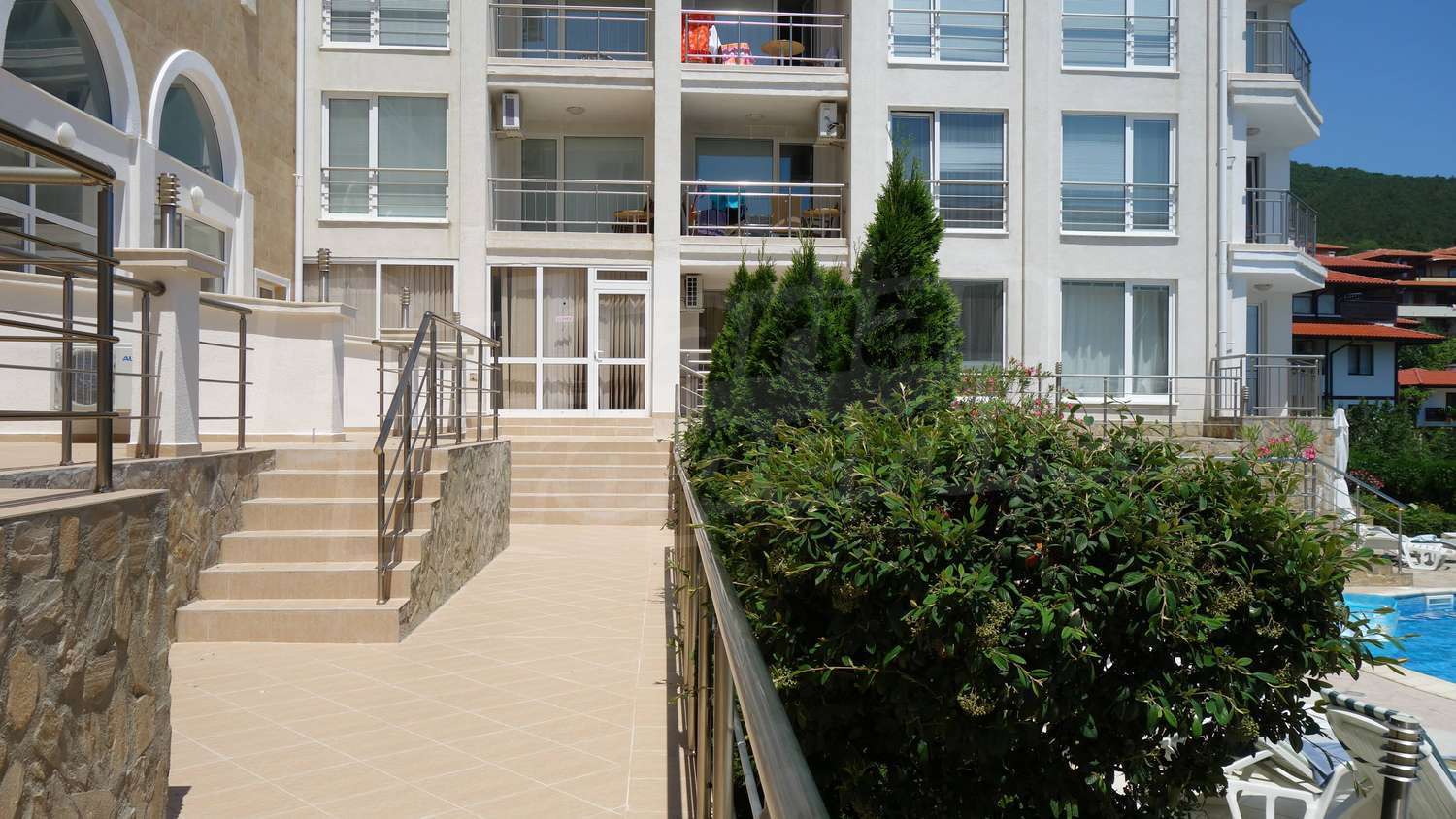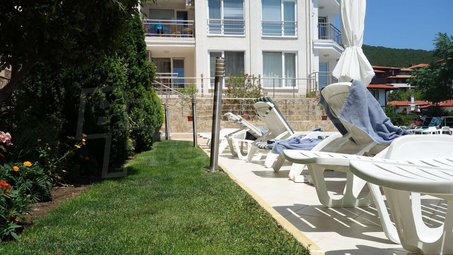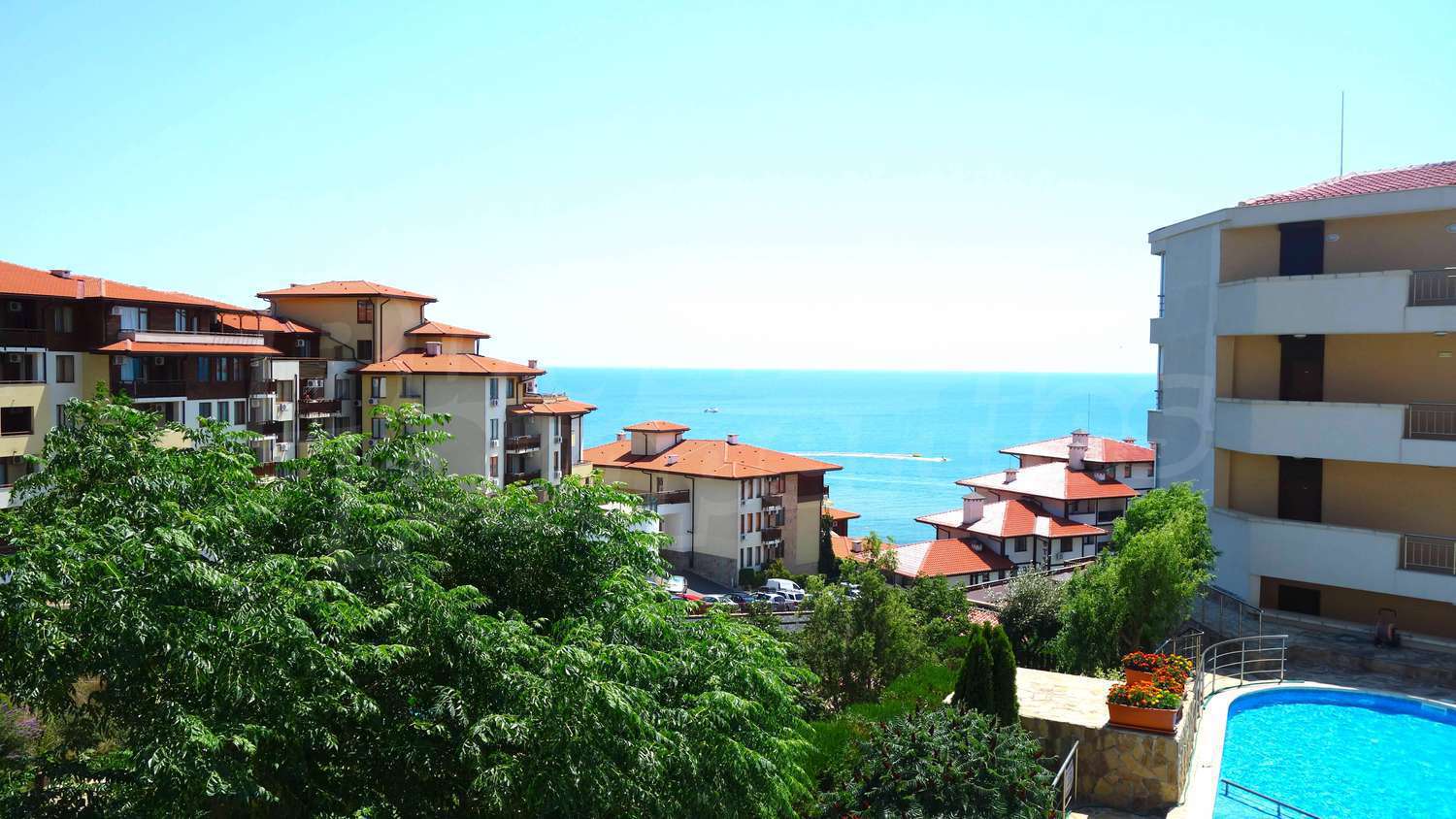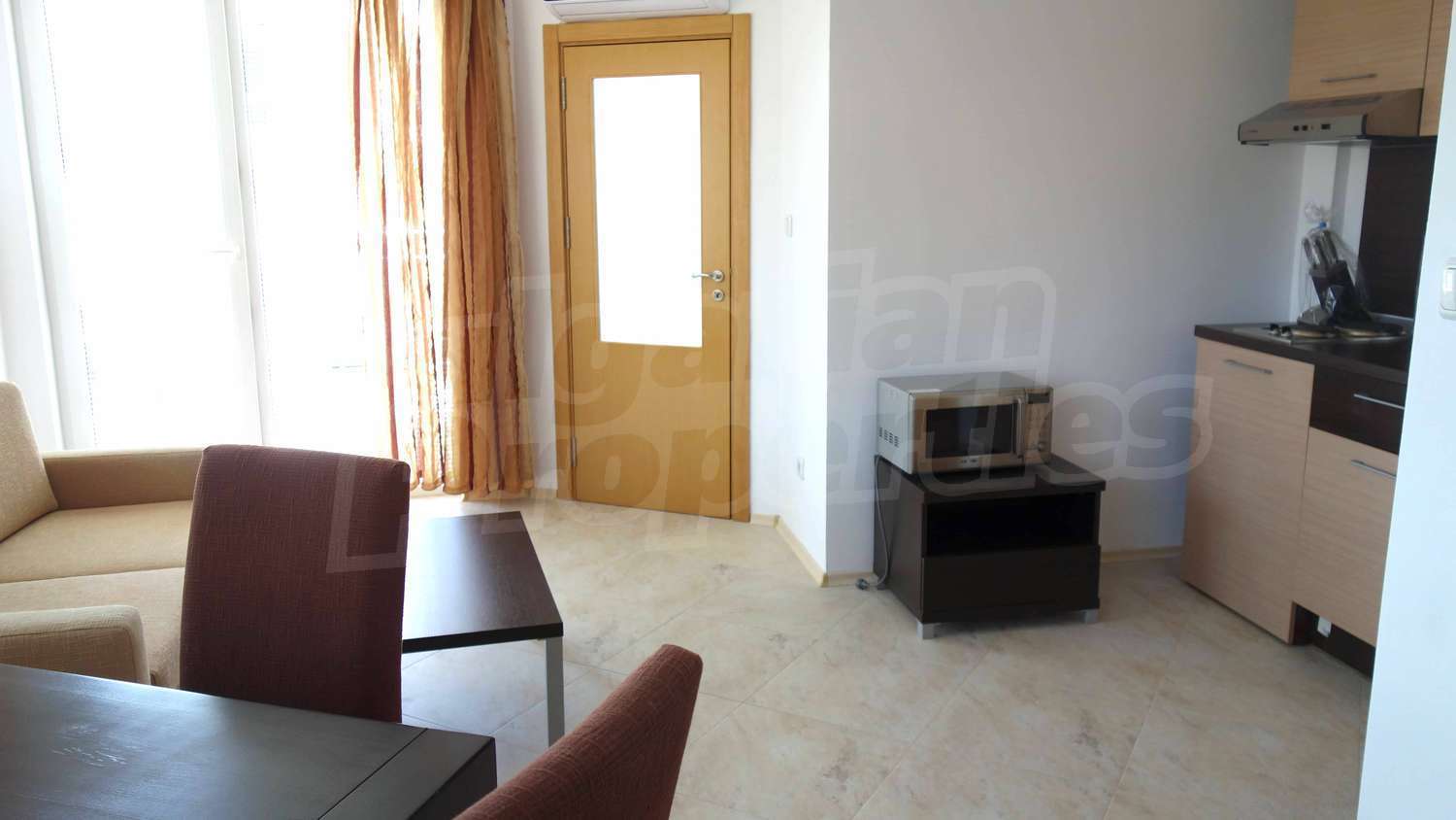 Двухкомнатная квартира площадью 58 м2. Предлагаемая недвижимость построена в 2009. Отопление кондиционером. Обеспечено кондиционирование следующего типа: стандартные кондиционеры. Межкомнатные двери, окна пвх, стены покрашенные латексной краской и терракотовый пол имеются в предлагаемой недвижимости. Недвижимость включает следующую меблировку и оснащение: бойлер электрический, встроенная кухня, вытяжка, душевая, кондиционер, меблировку, оборудованная ванная комната, телевизор и холодильник. Из основных коммуникаций обеспечены электричество, центральное водоснабжение и центральная канализация. Обозначенная стоянка, терраса, бассейн, комплекс закрытого типа, консьерж, лифт, общие части с отделкой люкс, тренажерный зал, заасфальтированная дорога, интернет, интернет Wi-Fi и кабельное телевидение имеются в наличии среди прочих отличительных характеристик предлагаемого объекта, что обеспечит дополнительный комфорт для пользования. Виды на бассейн и виды на море открываются с недвижимости, раскрывая часть красот живописной Болгарии.
