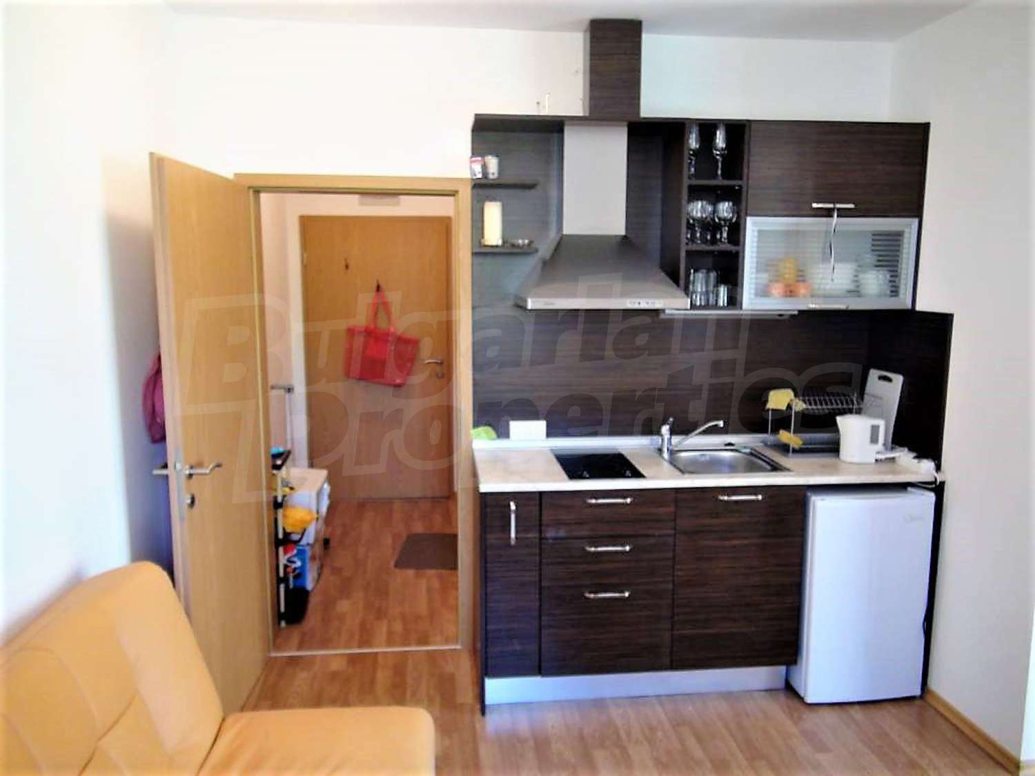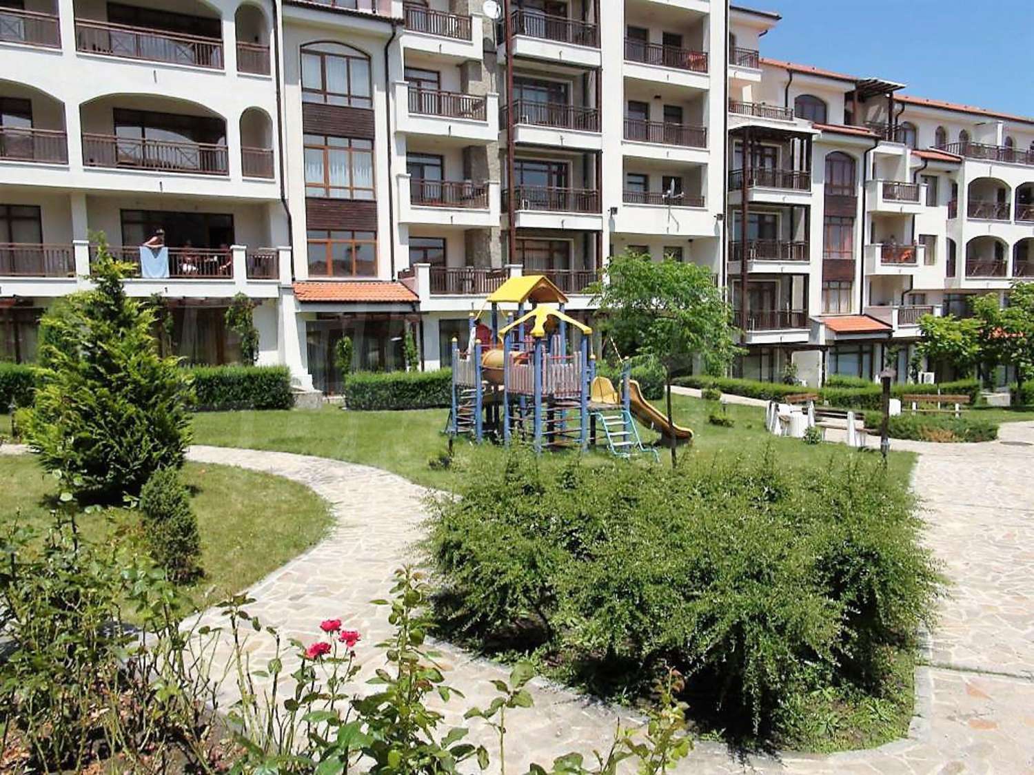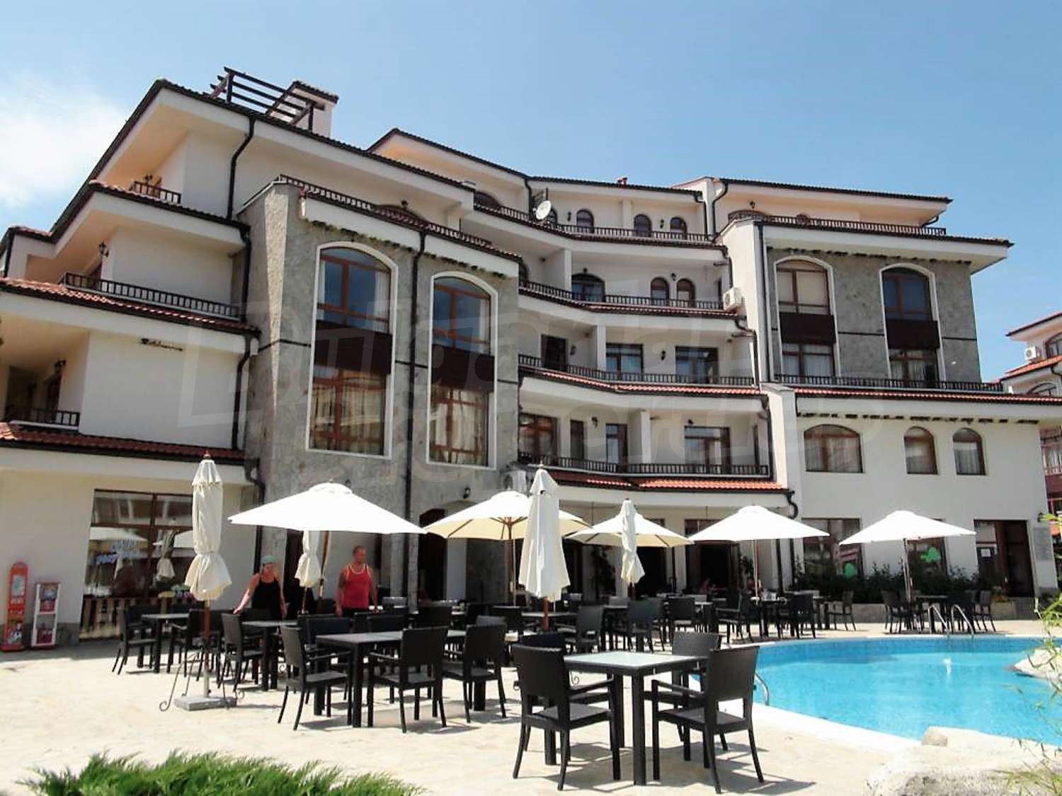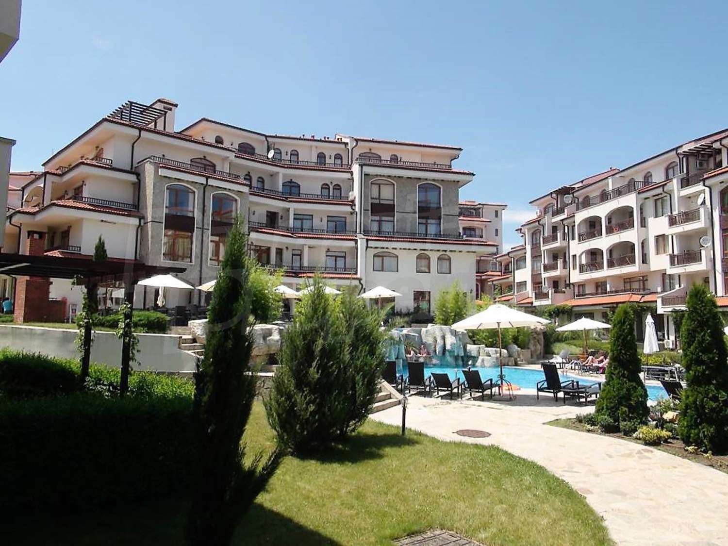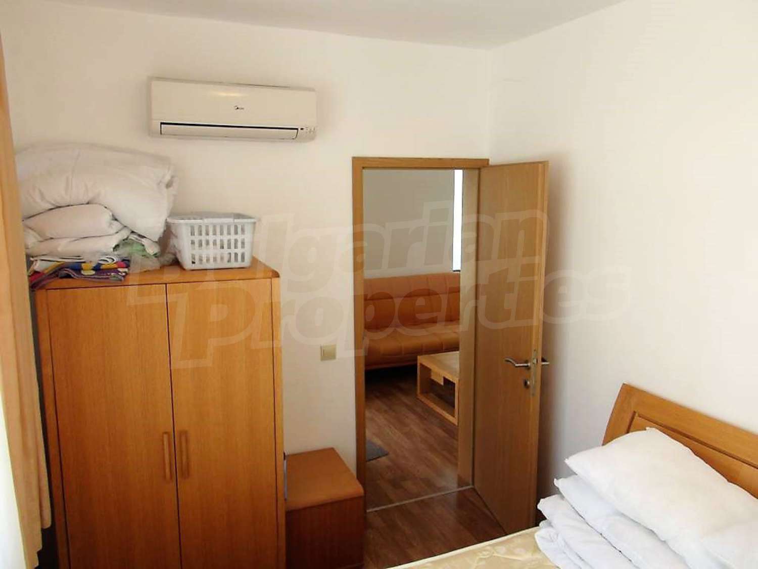 Двухкомнатная квартира площадью 70 м2. Предлагаемая недвижимость построена в 2009. Отопление кондиционером. Алюминиевые окна, ламинированный пол, межкомнатные двери и стены покрашенные латексной краской имеются в предлагаемой недвижимости. Недвижимость включает следующую меблировку и оборудование: вытяжка, кондиционер, меблировку, оборудованная ванная комната, телевизор и холодильник. Из основных коммуникаций обеспечены электричество, центральное водоснабжение и центральная канализация. Терраса, бассейн, интернет и кабельное телевидение имеются в наличии среди прочих обозначенных характеристик предлагаемого объекта, что обеспечит дополнительные удобства для пользования. Виды на море открываются с недвижимости, раскрывая часть красот живописной Болгарии.