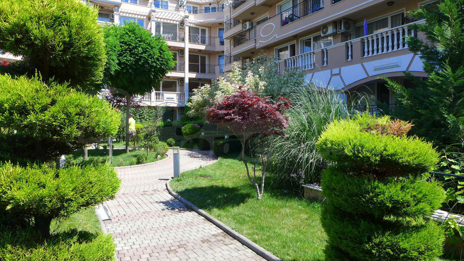 Двухкомнатная квартира площадью 61 кв. метров. Предлагаемая недвижимость построена в 2014. Отопление кондиционером. Обеспечено кондиционирование следующего типа: стандартные кондиционеры. Ламинированный пол, межкомнатные двери, окна пвх, стены покрашенные латексной краской и терракотовый пол имеются в предлагаемой недвижимости. Недвижимость включает следующую мебель и оснащение: бойлер электрический, встроенная кухня, вытяжка, душевая, кондиционер, мебель, оборудованная ванная комната и холодильник. Из основных коммуникаций обеспечены электричество, вода и центральная канализация. Ванная комната с туалетом, обозначенная стоянка, терраса, комплекс закрытого типа, лифт, общие части с отделкой люкс, заасфальтированная дорога, интернет и кабельное телевидение имеются в наличии среди прочих обозначенных характеристик предлагаемого объекта, что обеспечит дополнительный комфорт для пользования. Виды на город и виды на море открываются с недвижимости, раскрывая часть красот живописной Болгарии.
