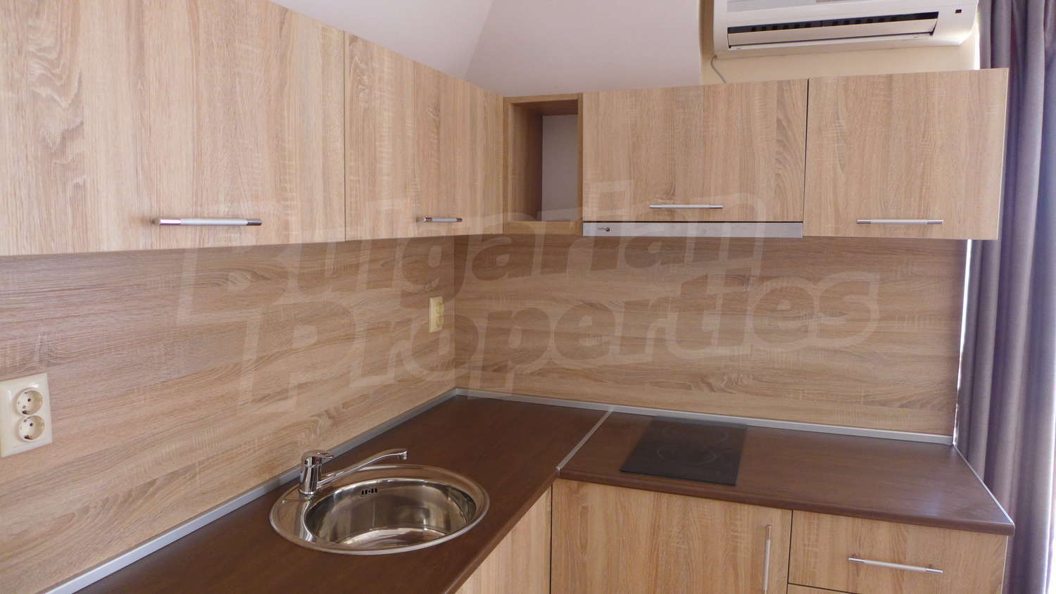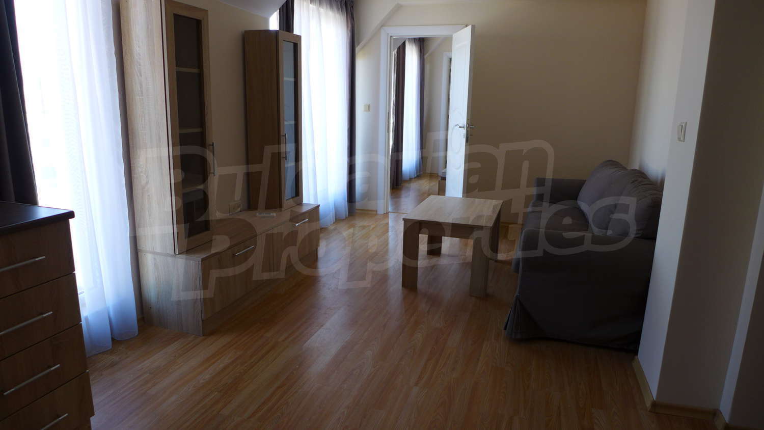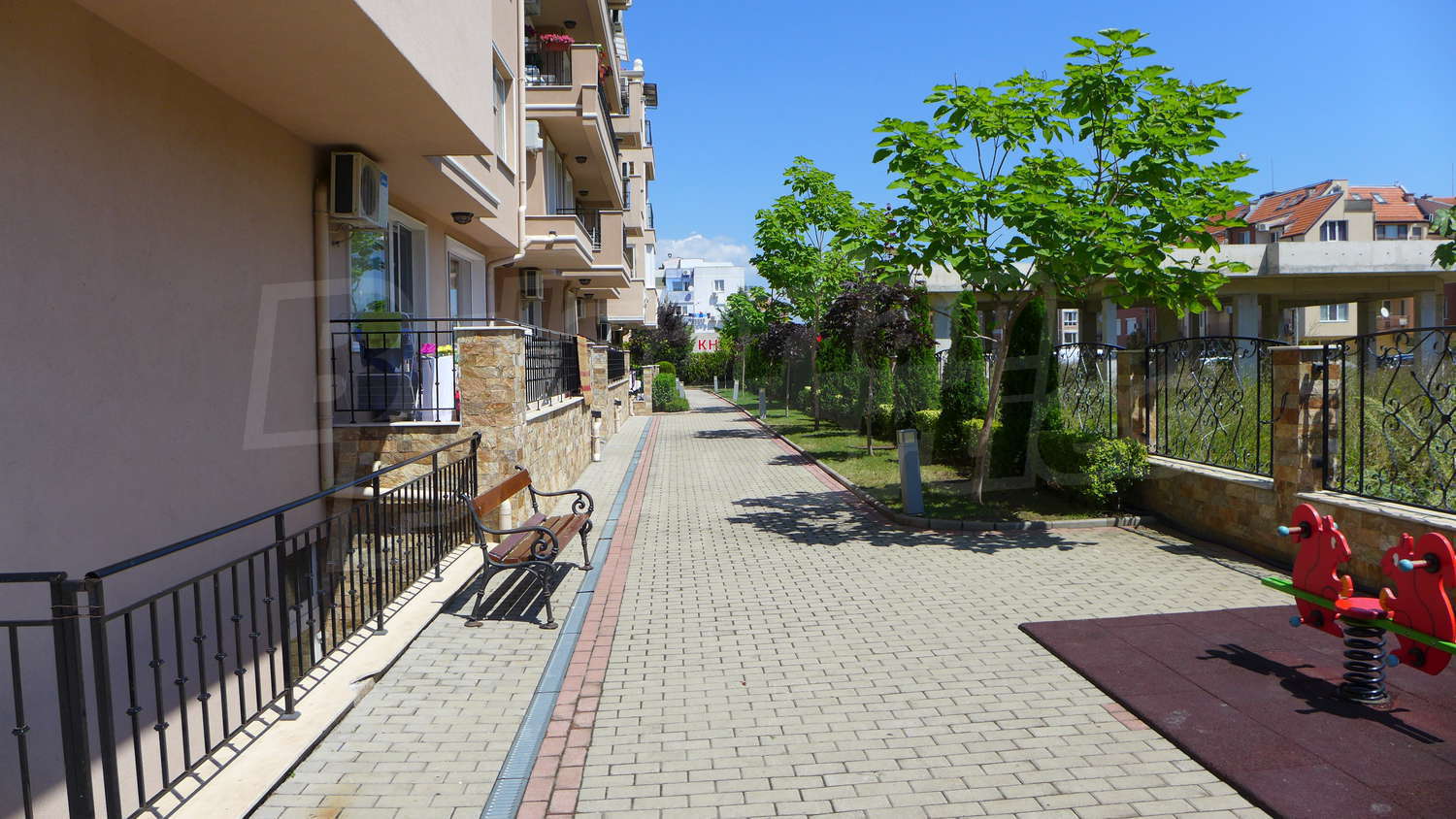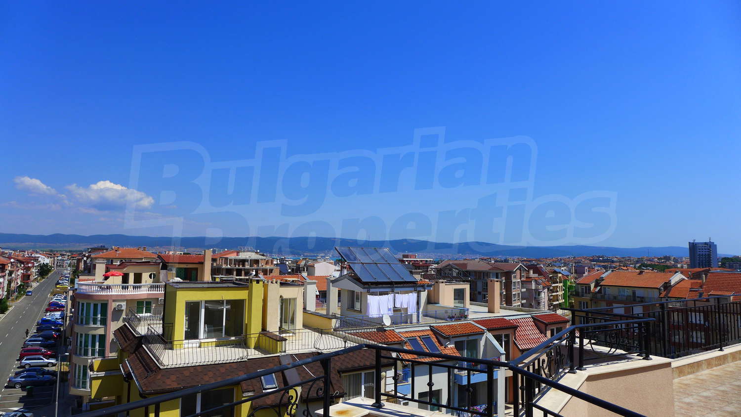 Двухкомнатная квартира площадью 61 кв. метров. Предлагаемая недвижимость построена в 2014. Отопление кондиционером. Обеспечено кондиционирование следующего типа: стандартные кондиционеры. Ламинированный пол, межкомнатные двери, окна пвх, стены покрашенные латексной краской и терракотовый пол имеются в предлагаемой недвижимости. Недвижимость включает следующую мебель и оснащение: бойлер электрический, встроенная кухня, вытяжка, душевая, кондиционер, мебель, оборудованная ванная комната и холодильник. Из основных коммуникаций обеспечены электричество, вода и центральная канализация. Ванная комната с туалетом, обозначенная стоянка, терраса, комплекс закрытого типа, лифт, общие части с отделкой люкс, заасфальтированная дорога, интернет и кабельное телевидение имеются в наличии среди прочих обозначенных характеристик предлагаемого объекта, что обеспечит дополнительный комфорт для пользования. Виды на город и виды на море открываются с недвижимости, раскрывая часть красот живописной Болгарии.