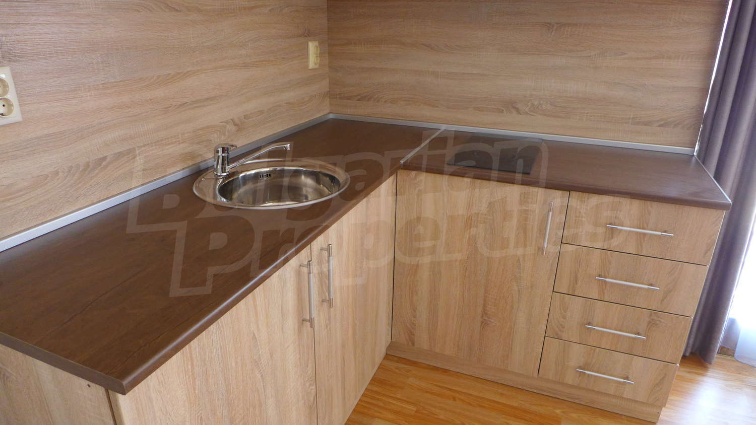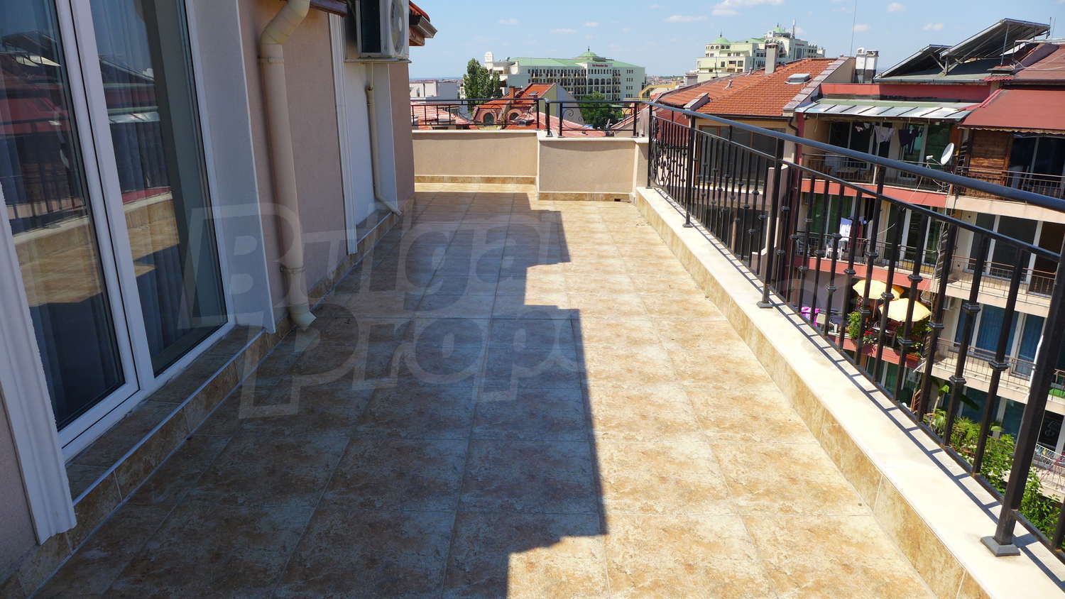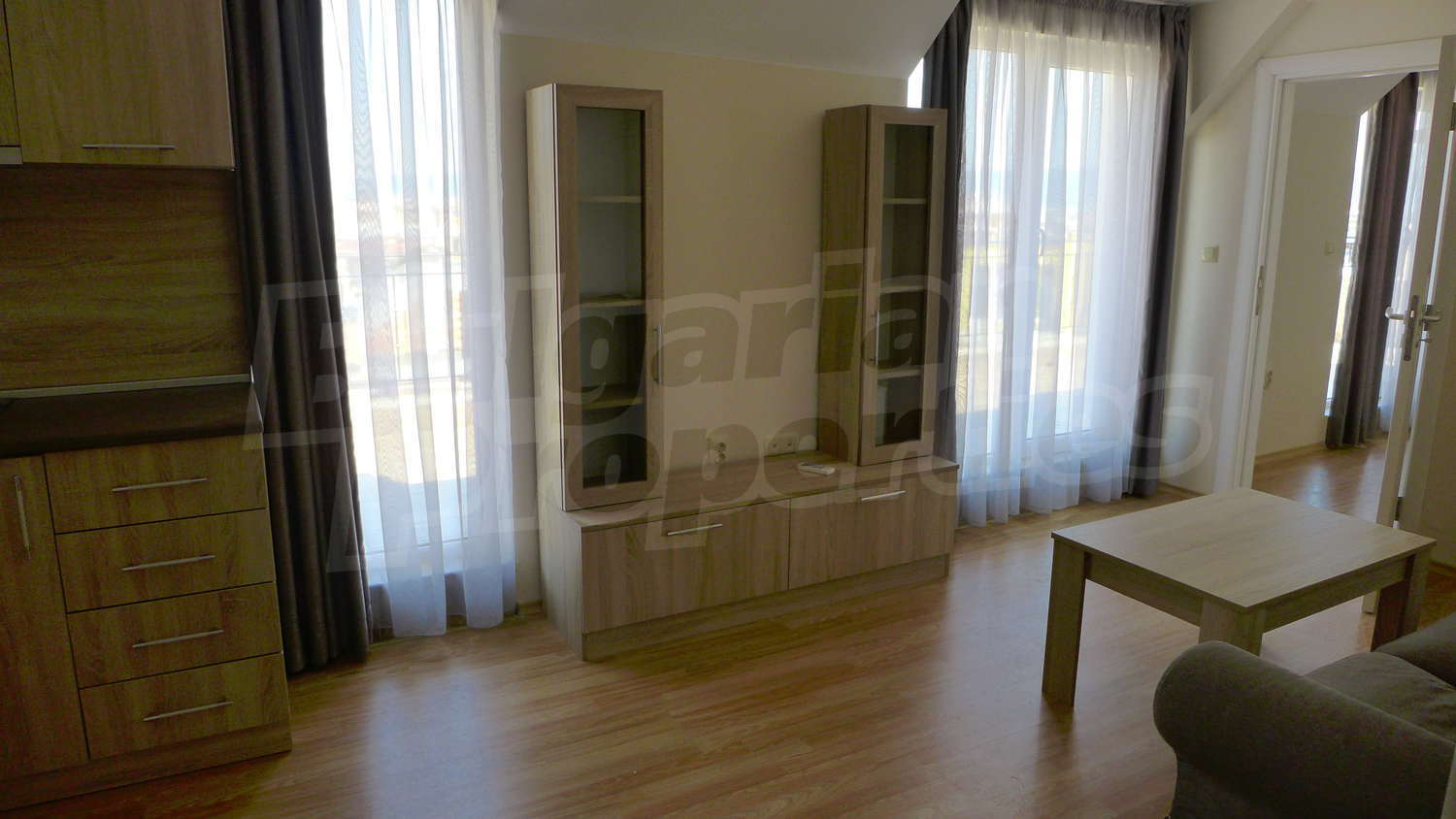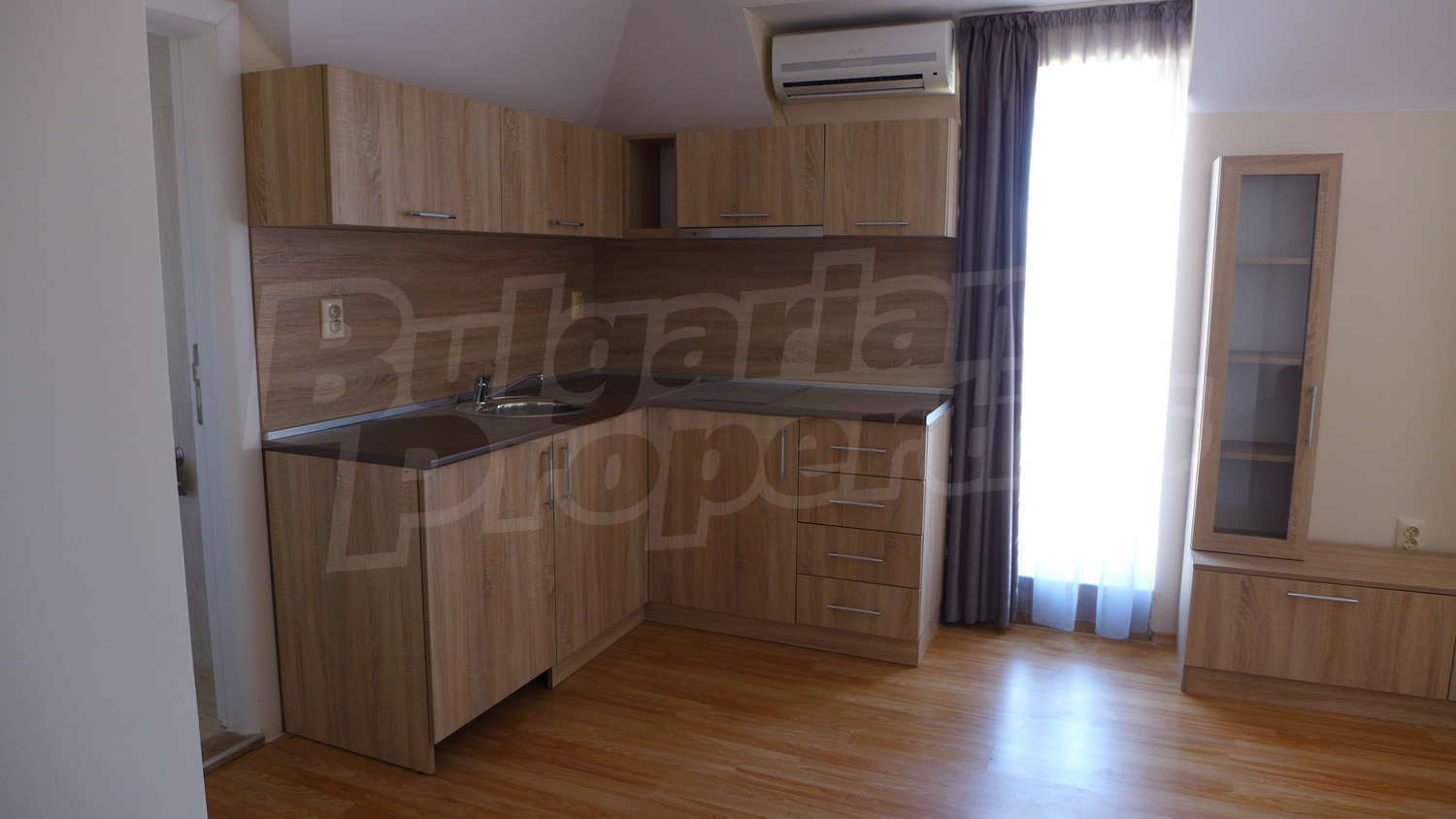 Двухкомнатная квартира площадью 61 кв. метров. Предлагаемая недвижимость построена в 2014. Отопление кондиционером. Обеспечено кондиционирование следующего типа: стандартные кондиционеры. Ламинированный пол, межкомнатные двери, окна пвх, стены покрашенные латексной краской и терракотовый пол имеются в предлагаемой недвижимости. Недвижимость включает следующую мебель и оснащение: бойлер электрический, встроенная кухня, вытяжка, душевая, кондиционер, мебель, оборудованная ванная комната и холодильник. Из основных коммуникаций обеспечены электричество, вода и центральная канализация. Ванная комната с туалетом, обозначенная стоянка, терраса, комплекс закрытого типа, лифт, общие части с отделкой люкс, заасфальтированная дорога, интернет и кабельное телевидение имеются в наличии среди прочих обозначенных характеристик предлагаемого объекта, что обеспечит дополнительный комфорт для пользования. Виды на город и виды на море открываются с недвижимости, раскрывая часть красот живописной Болгарии.