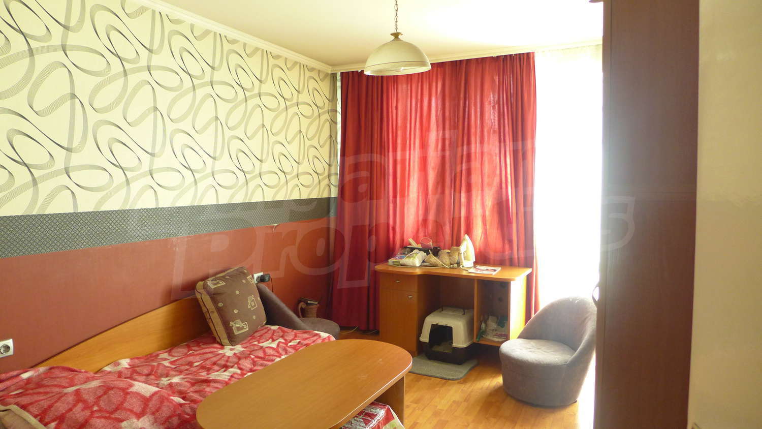 Трехкомнатная квартира площадью 102 кв. метров. Предлагаемая недвижимость построена в 1988. Центральное отопление. Ламинированный пол, межкомнатные двери, обои на стенах, окна пвх, паркетный пол, стены покрашенные латексной краской и терракотовый пол имеются в предлагаемой недвижимости. Из основных коммуникаций обеспечены электричество, вода и центральная канализация. Балконы, ванная комната с туалетом, кладовая, парковка вне дороги, подвал, лифт и заасфальтированная дорога имеются в наличии среди прочих перечисленных характеристик предлагаемого объекта, что обеспечит дополнительный комфорт для пользования. Виды на город открываются с недвижимости, раскрывая часть красот живописной Болгарии.