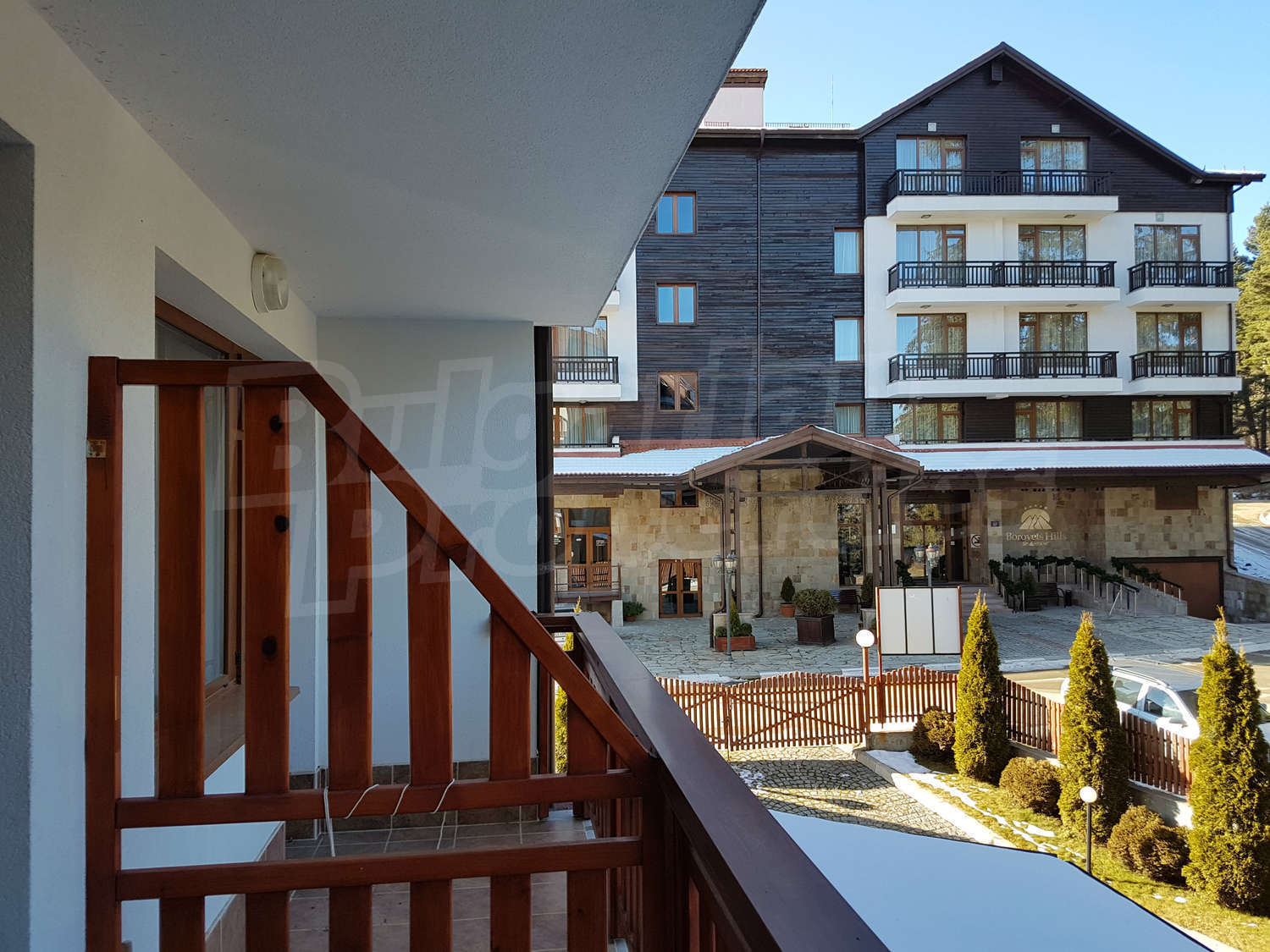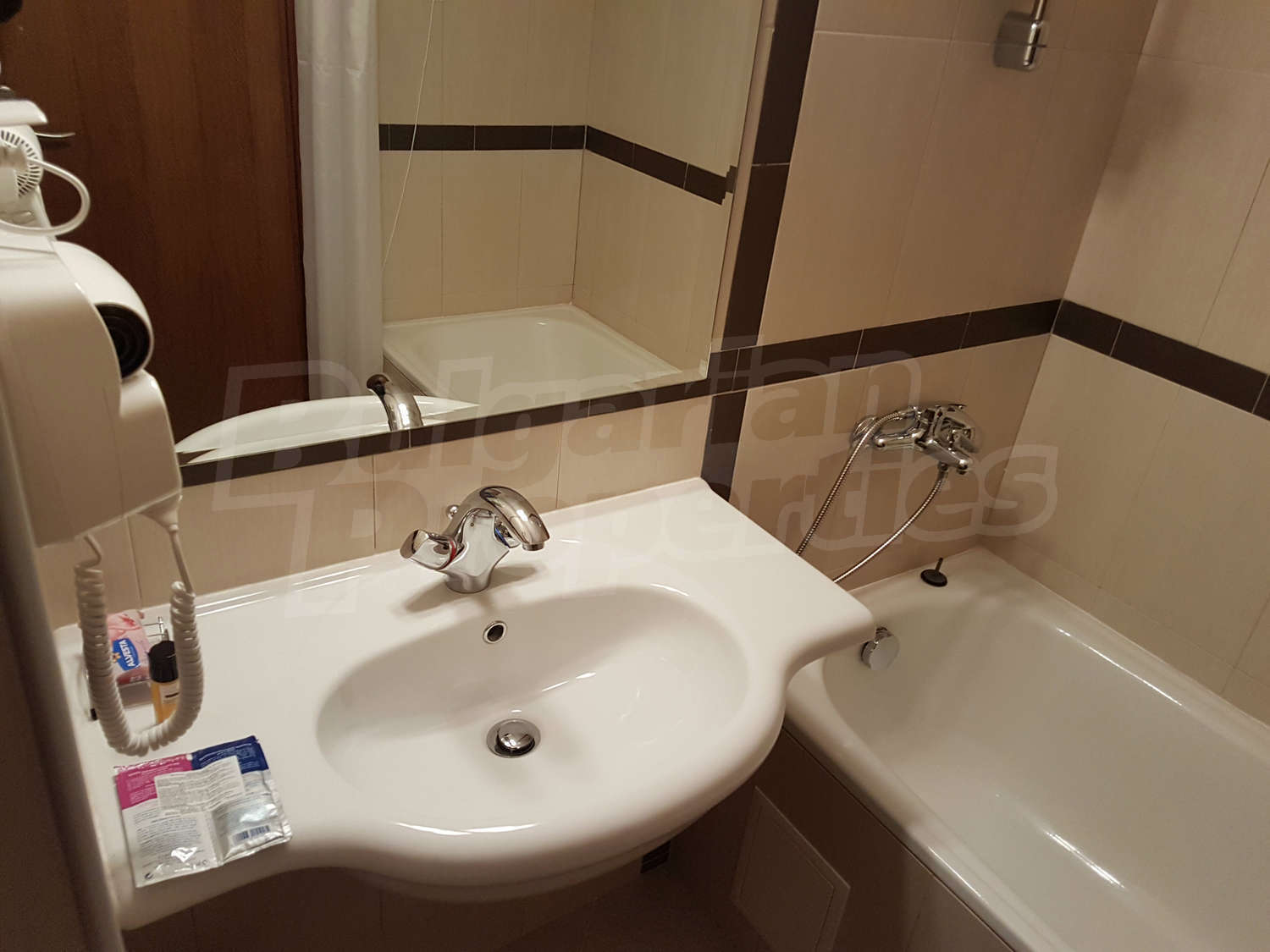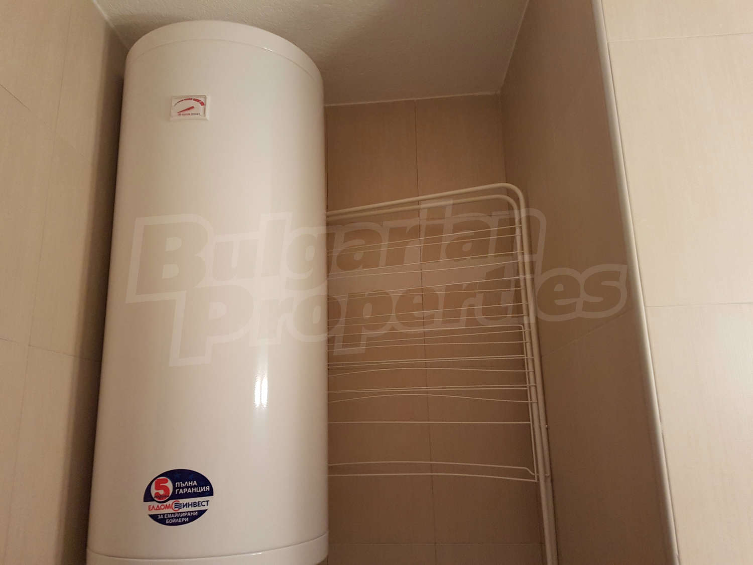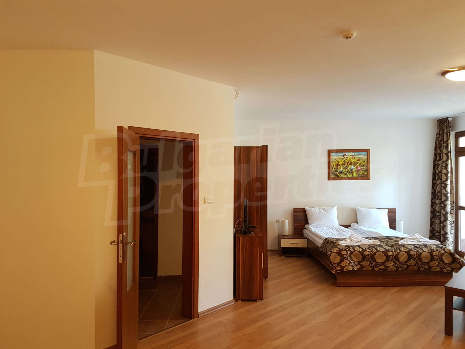 Квартира-студия площадью 70.94 кв.м. Предлагаемая недвижимость построена в 2008. Отопление на электроконвекторах. Деревянные оконные рамы, керамогранитный пол, ламинированный пол и покрашенные стены имеются в предлагаемой недвижимости. Недвижимость включает следующую меблировку и оборудование: встроенная кухня, вытяжка, духовка, меблировку, оборудованная ванная комната, телевизор и холодильник. Из основных коммуникаций обеспечены электричество, вода и центральная канализация. Ванная комната с туалетом, терраса, комплекс закрытого типа, общие части с отделкой люкс, сауна, тренажерный зал, заасфальтированная дорога, интернет, интернет Wi-Fi, кабельное телевидение, спутниковое тв и телефон имеются в наличии среди прочих упомянутых характеристик предлагаемого объекта, что обеспечит дополнительные удобства для пользования. Виды на внутренний двор и виды на лес открываются с недвижимости, раскрывая часть красот живописной Болгарии.