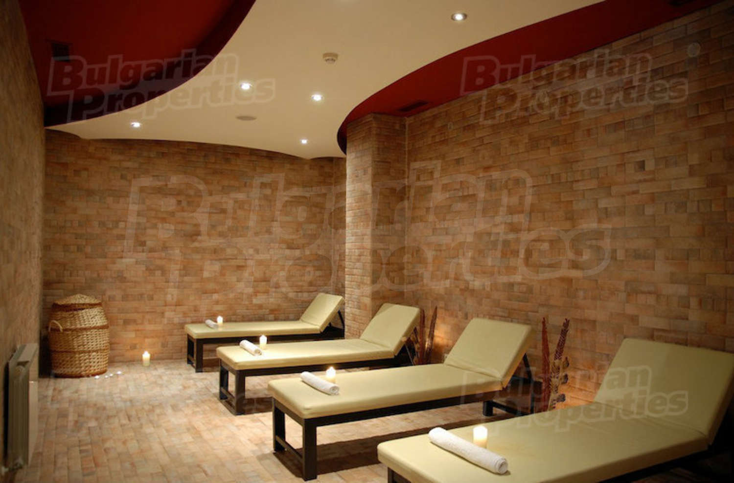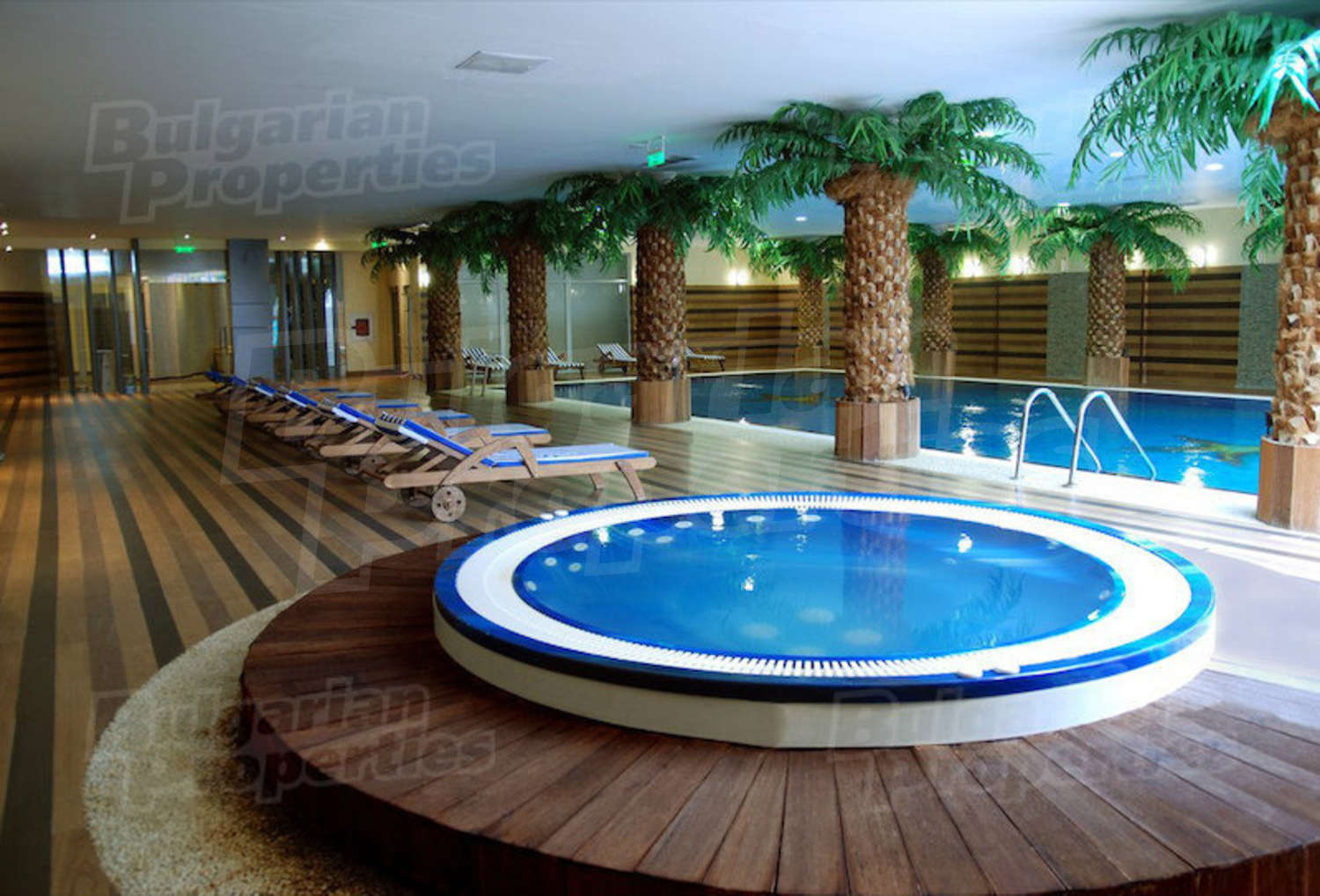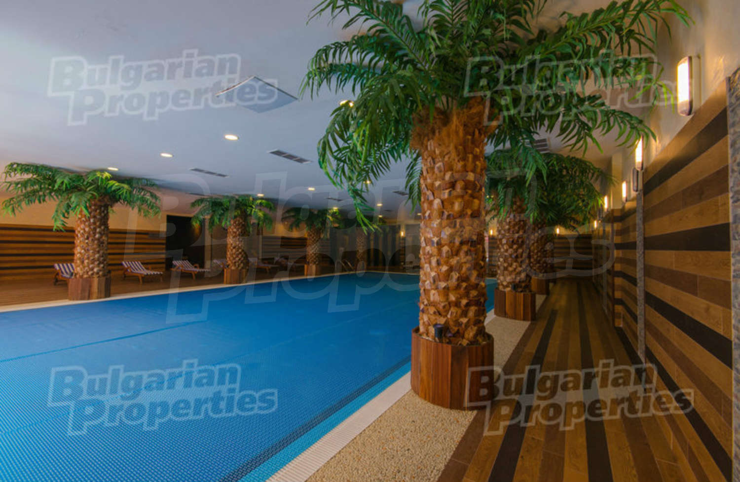 Двухкомнатная квартира площадью 68.50 м2. Локальное отопление и отопление на электрических радиаторах. Ламинированный пол, межкомнатные двери, окна пвх, стены покрашенные латексной краской и терракотовый пол имеются в предлагаемой недвижимости. Недвижимость включает следующую меблировку и оборудование: ванна и оборудованная ванная комната. Из основных коммуникаций обеспечены электричество, вода и канализация. Ванная комната с туалетом, терраса, бассейн, джакузи, комплекс закрытого типа, консьерж, лифт, общие части с отделкой люкс, сауна, теннисный корт, тренажерный зал, заасфальтированная дорога, интернет, интернет Wi-Fi и кабельное телевидение имеются в наличии среди прочих указанных характеристик предлагаемого объекта, что обеспечит дополнительные удобства для пользования. Виды на внутренний двор, виды на горы и виды на лес открываются с недвижимости, раскрывая часть красот живописной Болгарии.