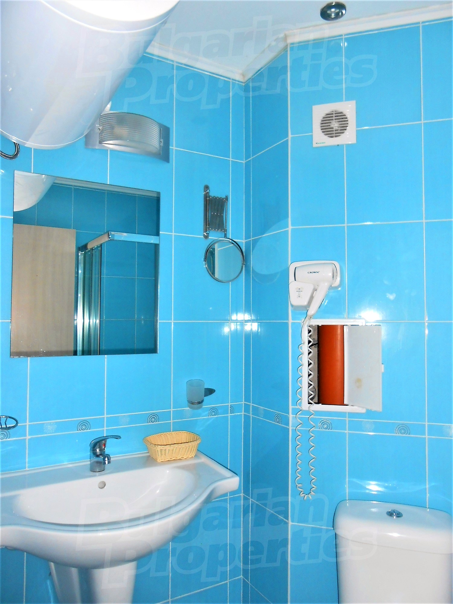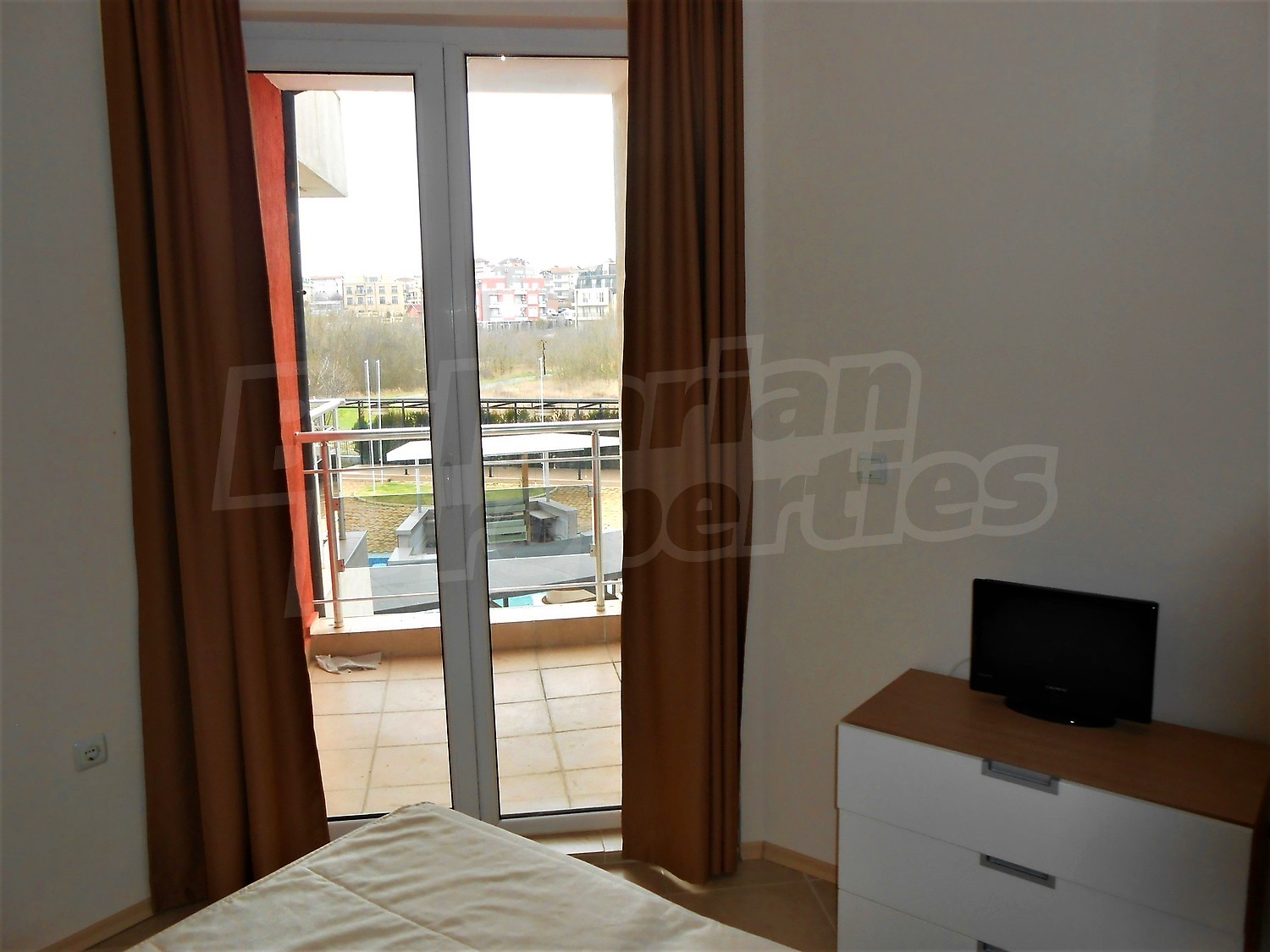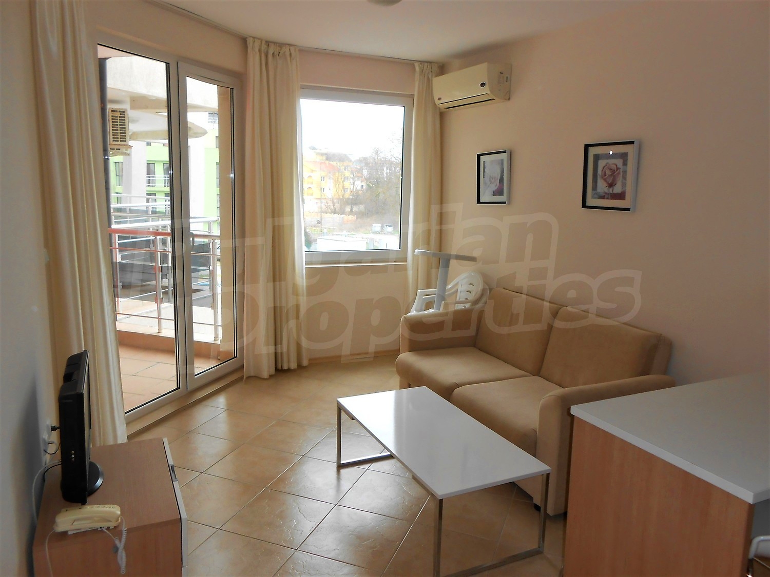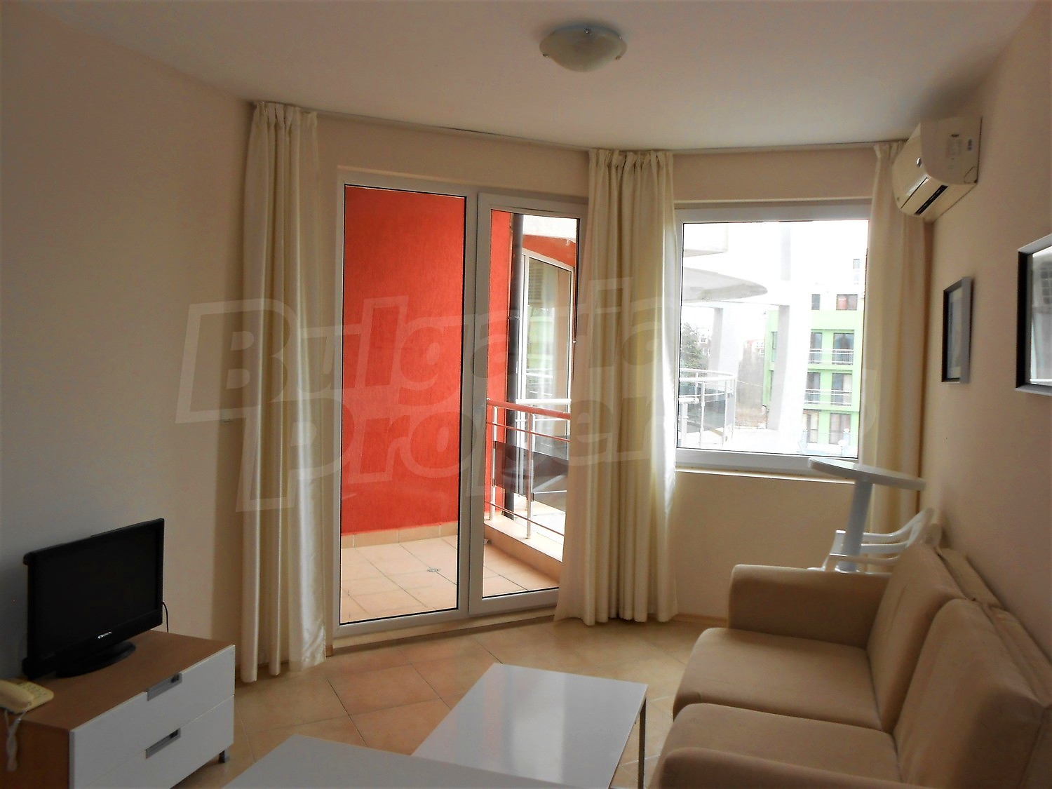Двухкомнатная квартира площадью 46.26 м2. Предлагаемая недвижимость построена в 2008. Отопление кондиционером. Обеспечено кондиционирование следующего типа: стандартные кондиционеры. Керамогранитный пол, межкомнатные двери, окна пвх и стены покрашенные латексной краской имеются в предлагаемой недвижимости. Недвижимость включает следующую меблировку и оборудование: бойлер электрический, встроенная кухня, душевая, кондиционер, меблировку, оборудованная ванная комната, телевизор и холодильник. Из основных коммуникаций обеспечены электричество, центральное водоснабжение и центральная канализация. Ванная комната с туалетом, терраса, бассейн, комплекс закрытого типа, лифт, заасфальтированная дорога, интернет, интернет Wi-Fi и кабельное телевидение имеются в наличии среди прочих характеристик предлагаемого объекта, что обеспечит дополнительные удобства для пользования. Виды на бассейн открываются с недвижимости, раскрывая часть красот живописной Болгарии.