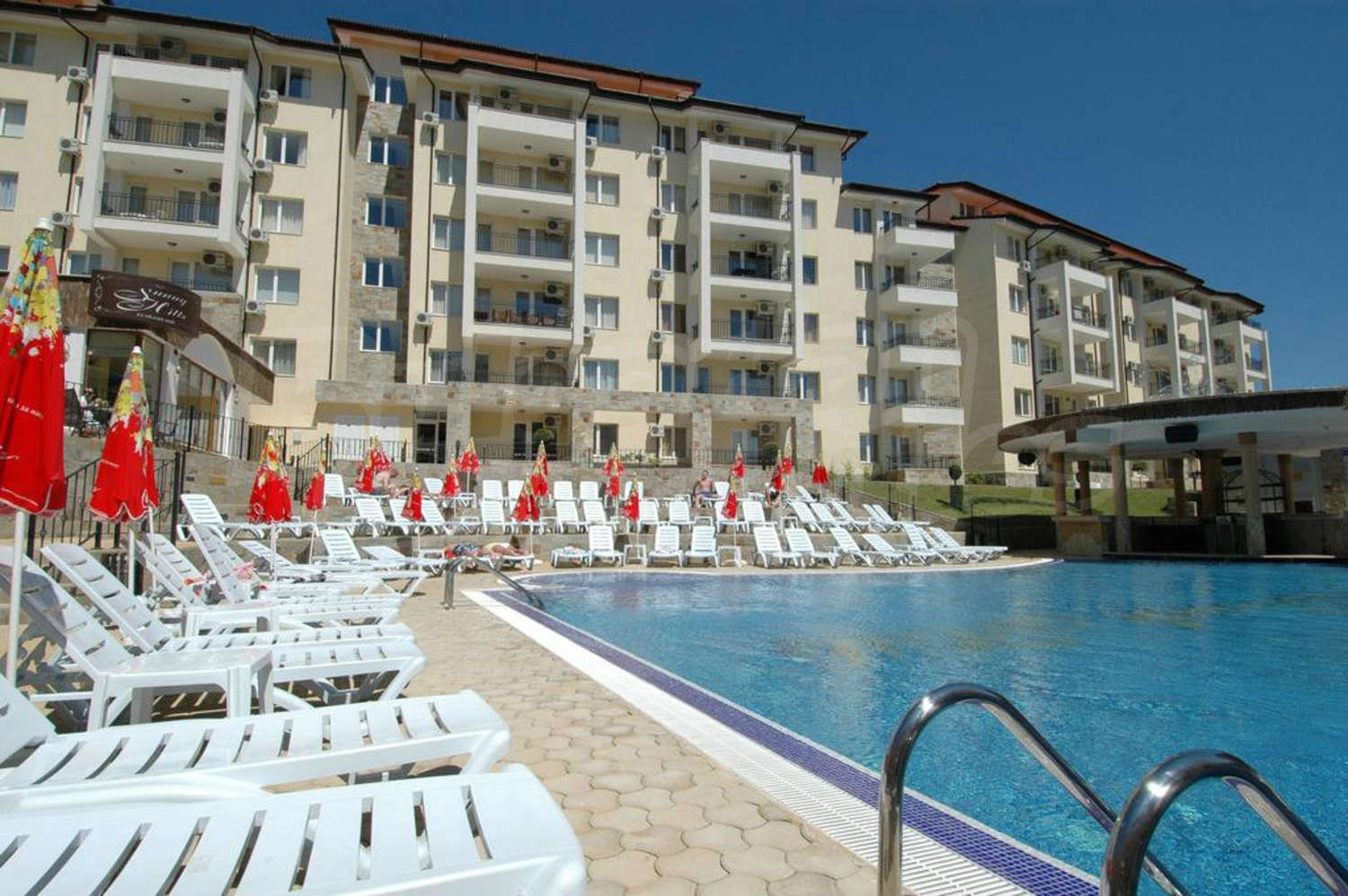 Трехкомнатная квартира площадью 67.92 кв.м. Предлагаемая недвижимость построена в 2009. Отопление кондиционером. Окна пвх, стены покрашенные латексной краской и терракотовый пол имеются в предлагаемой недвижимости. Недвижимость включает следующую мебель и оборудование: вытяжка, духовка, душевая, кондиционер, мебель, оборудованная ванная комната, телевизор и холодильник. Из основных коммуникаций обеспечены электричество, центральное водоснабжение и центральная канализация. Ванная комната с туалетом, обозначенная стоянка, терраса, бассейн, комплекс закрытого типа, консьерж, лифт, теннисный корт, заасфальтированная дорога, интернет и кабельное телевидение имеются в наличии среди прочих упомянутых характеристик предлагаемого объекта, что обеспечит дополнительные удобства для пользования. Виды на бассейн и виды на внутренний двор открываются с недвижимости, раскрывая часть красот живописной Болгарии.