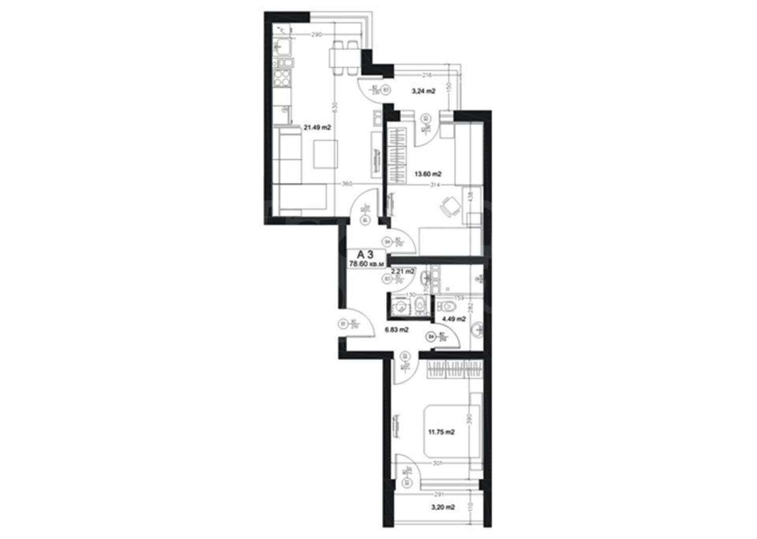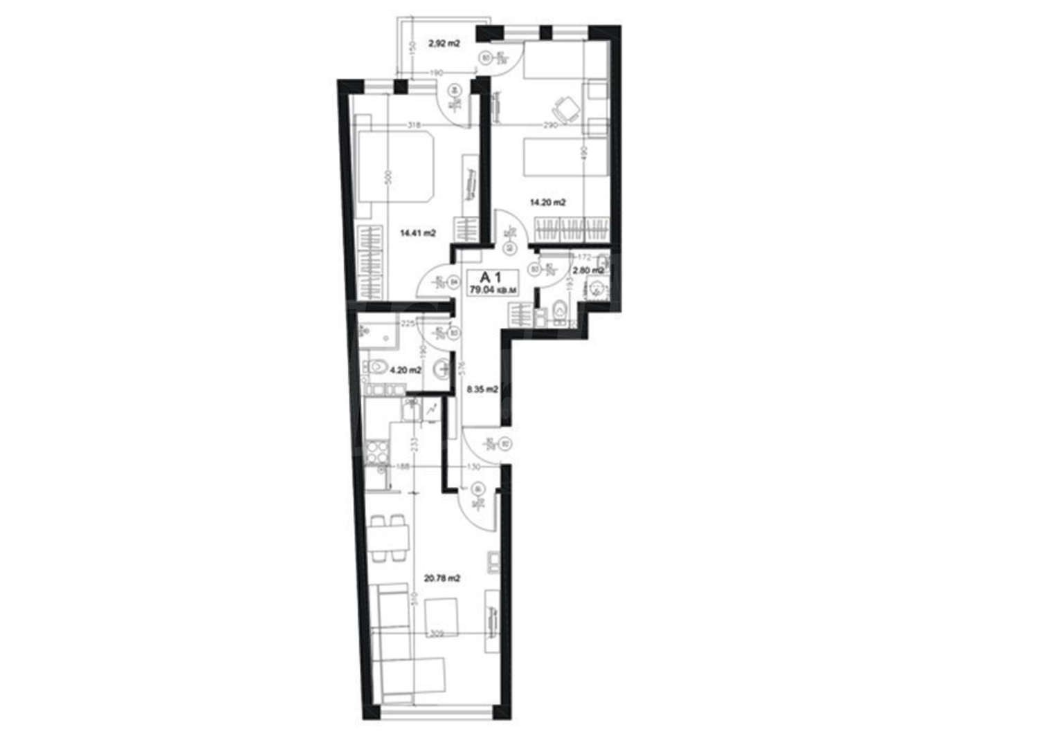 93.85 м2 (жилая площадь: 93.85 м2 плюс общие части: 0.00 м2) еще