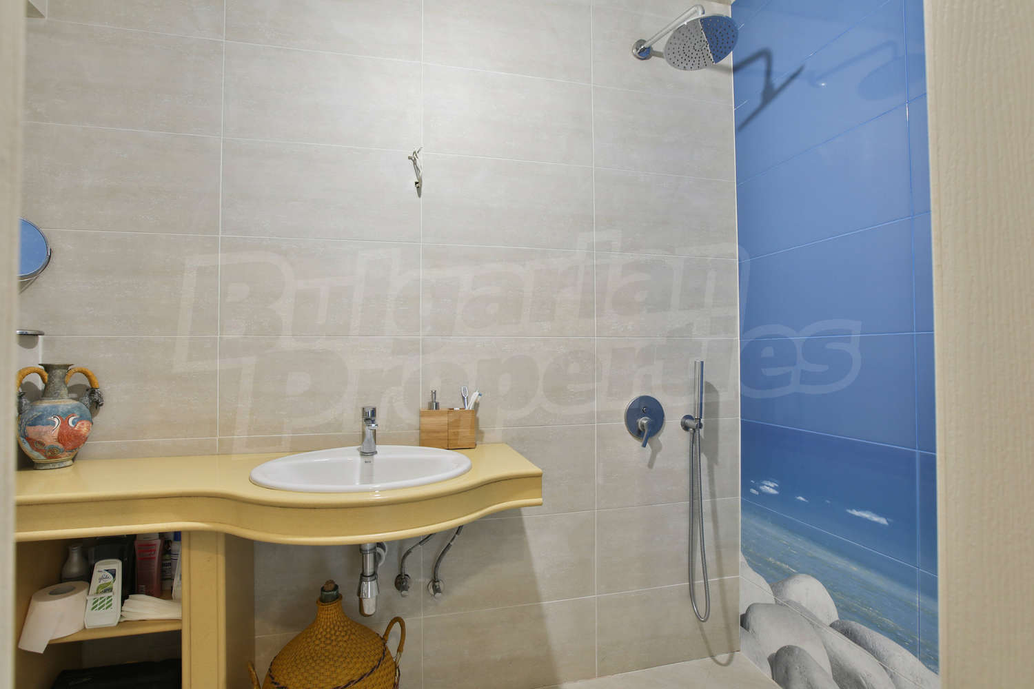 Двухкомнатная квартира площадью 130 м2. Предлагаемая недвижимость построена в 2016. Отопление кондиционером и центральное отопление. Керамогранитный пол, ламинированный пол, окна пвх и покрашенные стены имеются в предлагаемой недвижимости. Из основных коммуникаций обеспечены электричество, вода и канализация. Ванная комната с туалетом, кладовая, парковочное место, комплекс закрытого типа, консьерж, лифт, общие части с отделкой люкс, интернет, кабельное телевидение, система охранной сигнализации и телефон имеются в наличии среди прочих указанных характеристик предлагаемого объекта, что обеспечит дополнительные удобства для пользования. Виды на внутренний двор открываются с недвижимости, раскрывая часть красот живописной Болгарии.