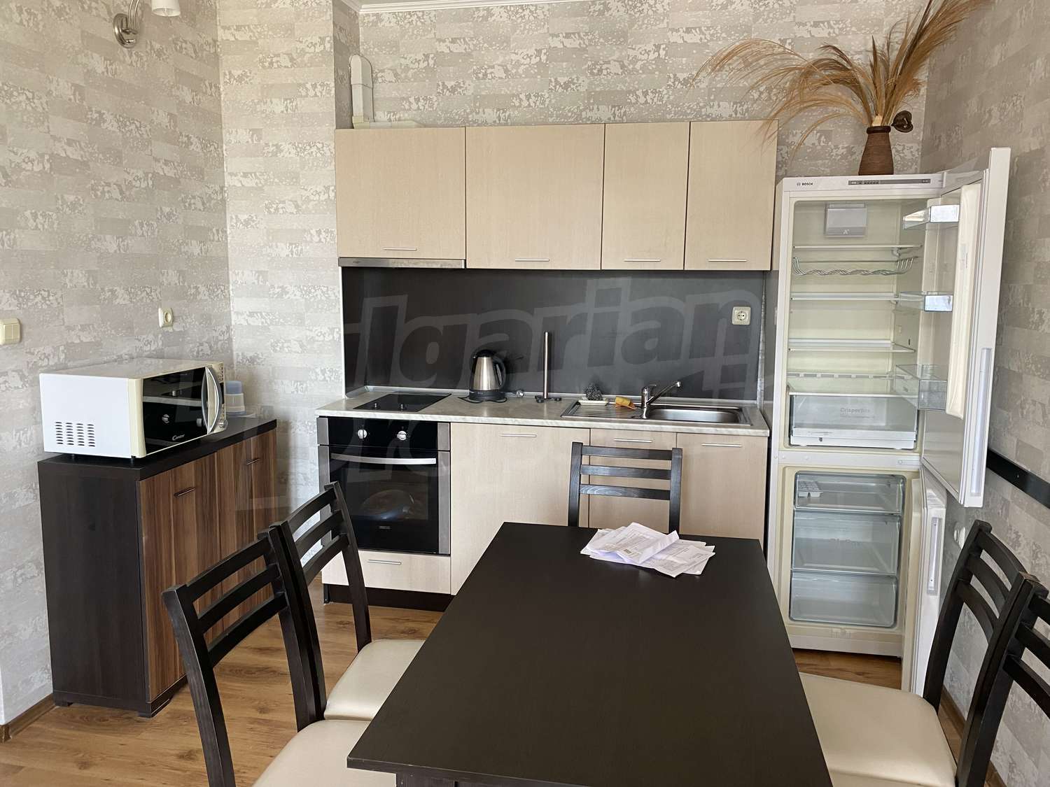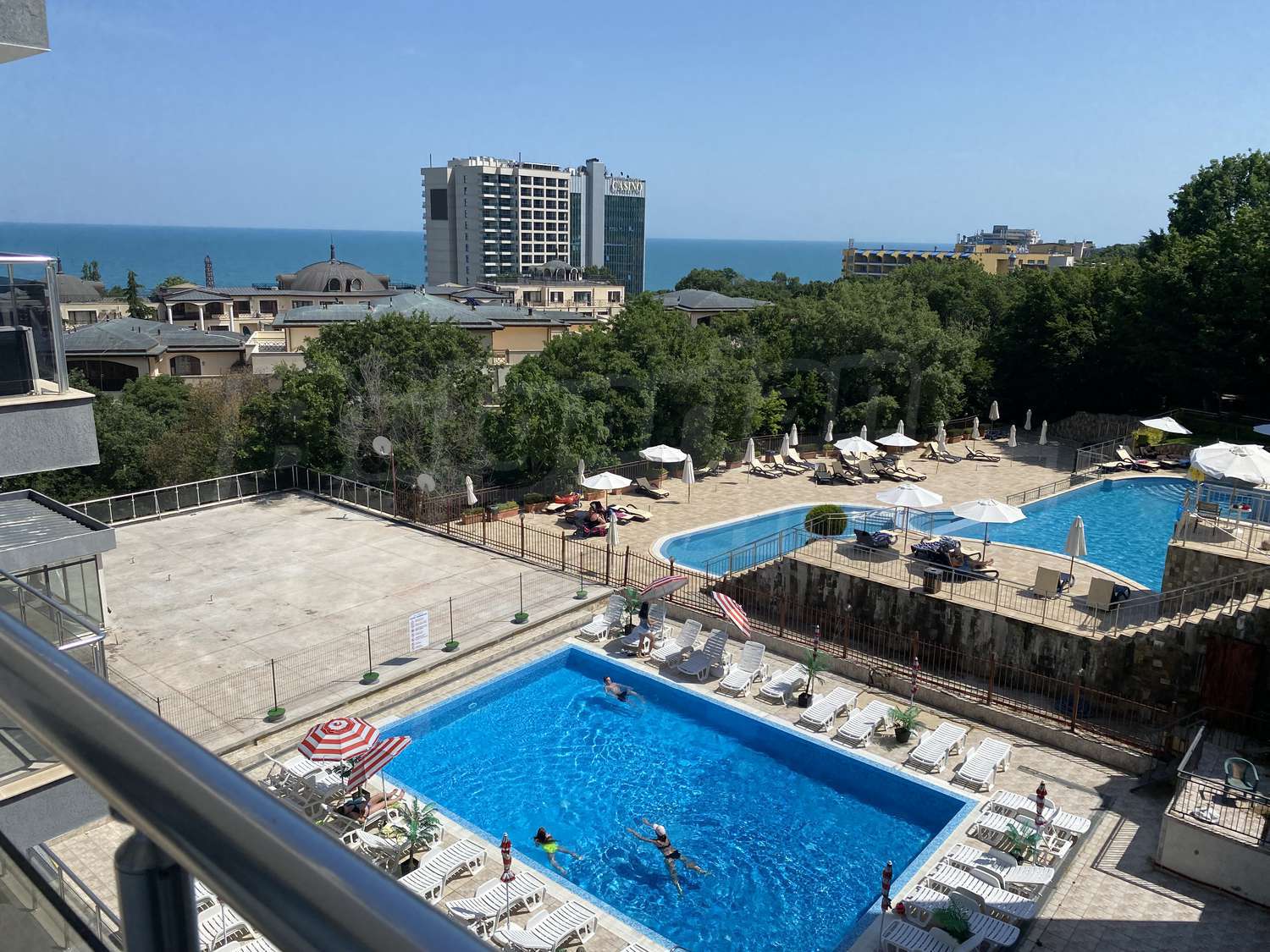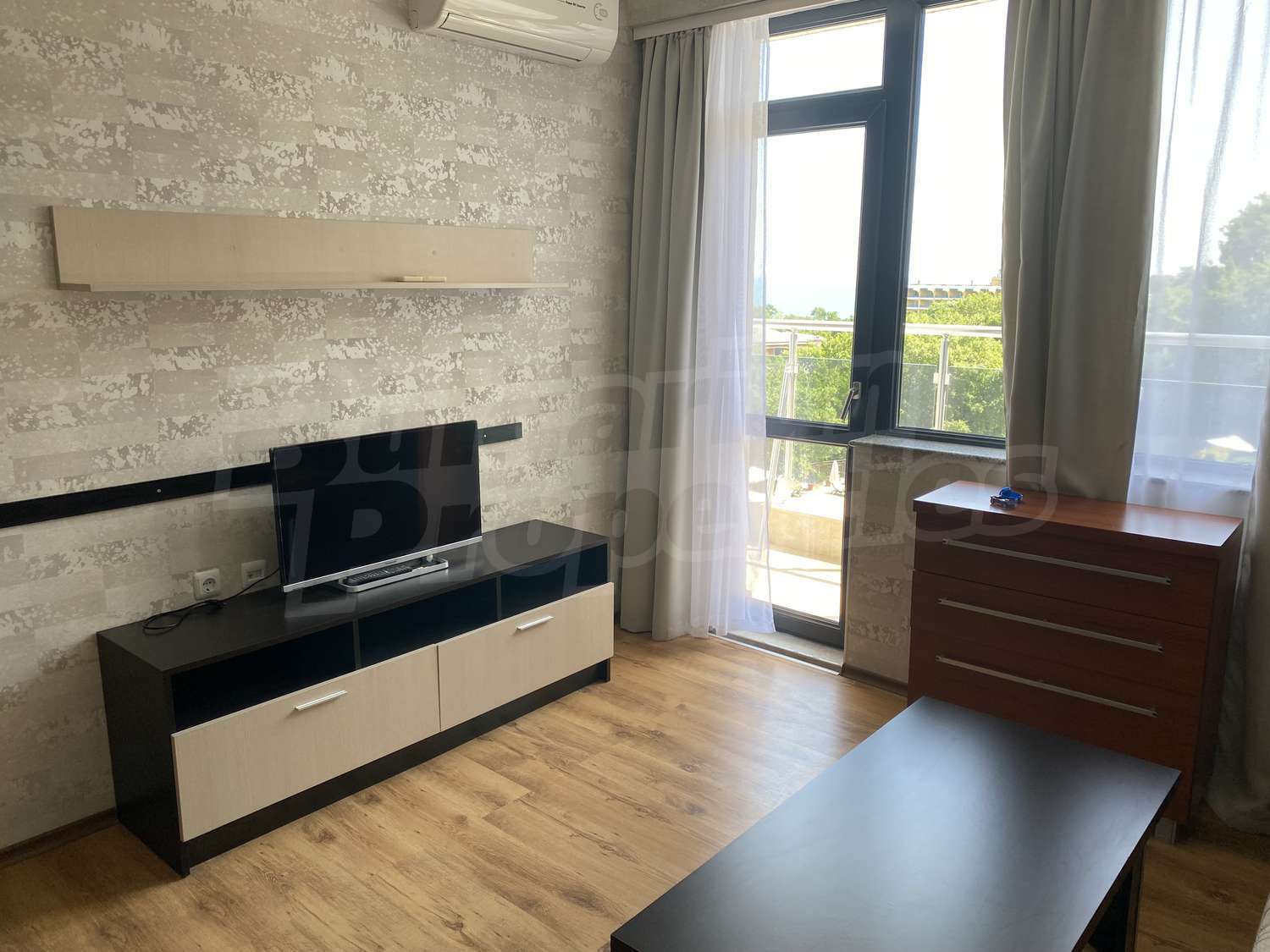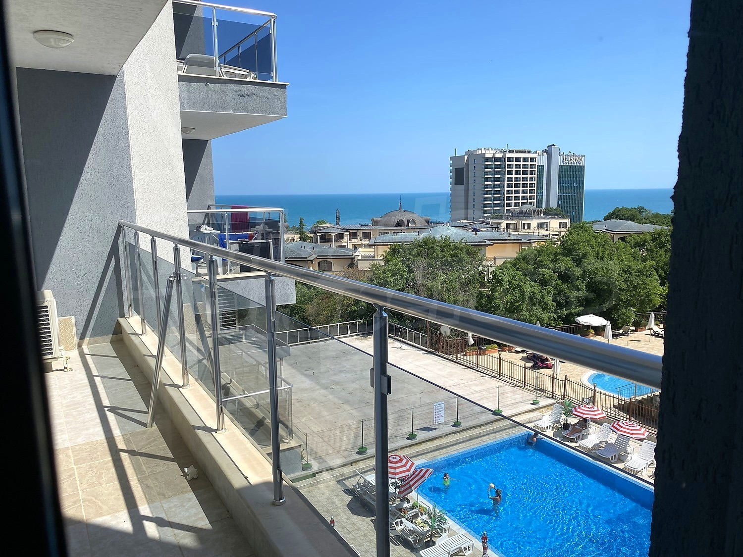 Трехкомнатная квартира площадью 109.84 кв.м. Предлагаемая недвижимость построена в 2010. Отопление кондиционером. Керамогранитный пол, ламинированный пол, межкомнатные двери, окна пвх, покрашенные стены и терракотовый пол имеются в предлагаемой недвижимости. Недвижимость включает следующую мебель и оснащение: встроенная кухня, вытяжка, духовка, душевая, кондиционер, мебель, оборудованная ванная комната и холодильник. Из основных коммуникаций обеспечены электричество, вода и центральная канализация. Ванная комната с туалетом, кладовая, обозначенная стоянка, терраса, интернет, кабельное телевидение и телефон имеются в наличии среди прочих указанных характеристик предлагаемого объекта, что обеспечит дополнительные удобства для пользования. Виды на бассейн, виды на внутренний двор и виды на море открываются с недвижимости, раскрывая часть красот живописной Болгарии.