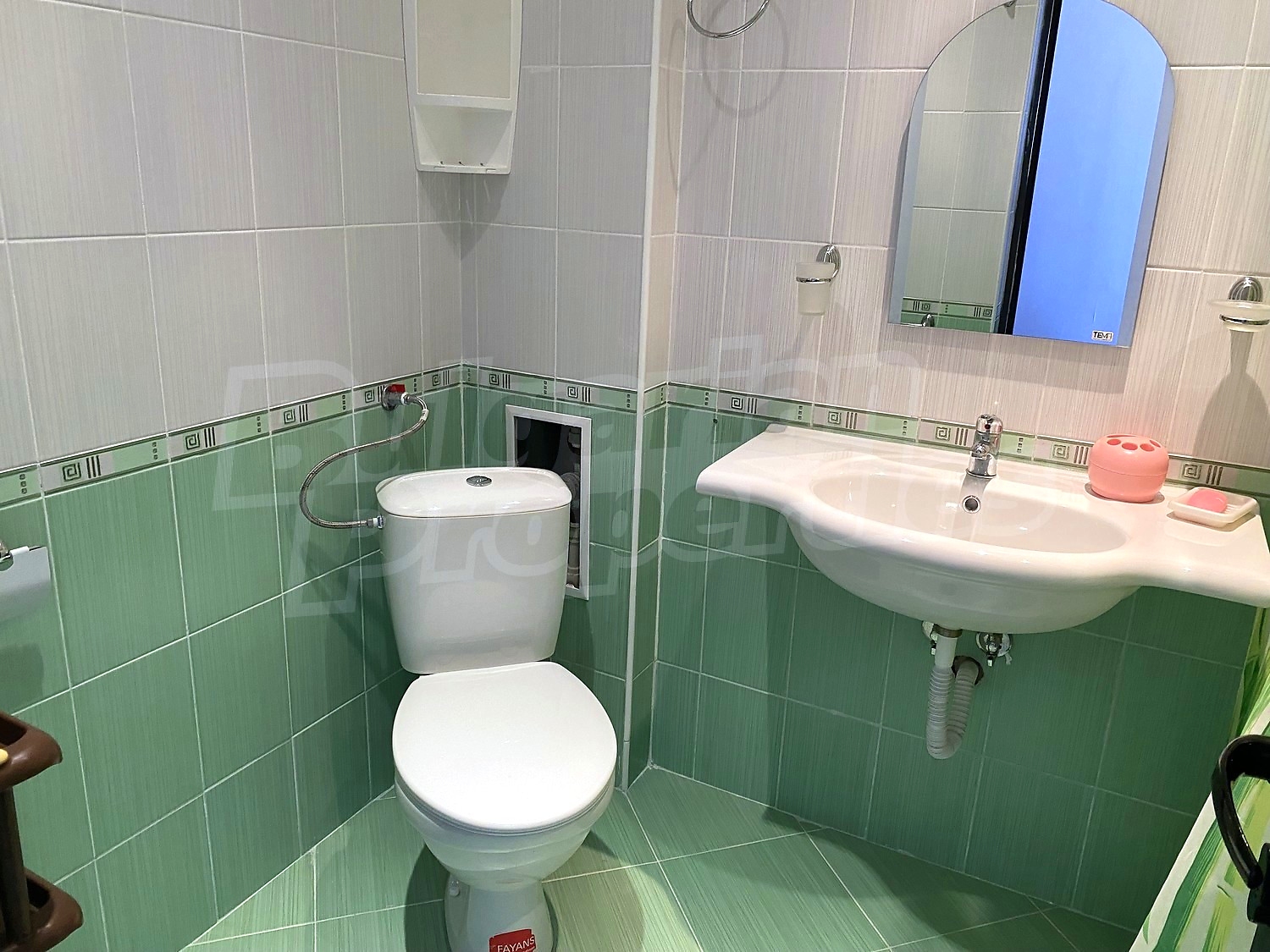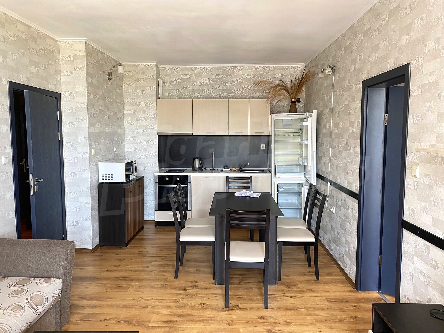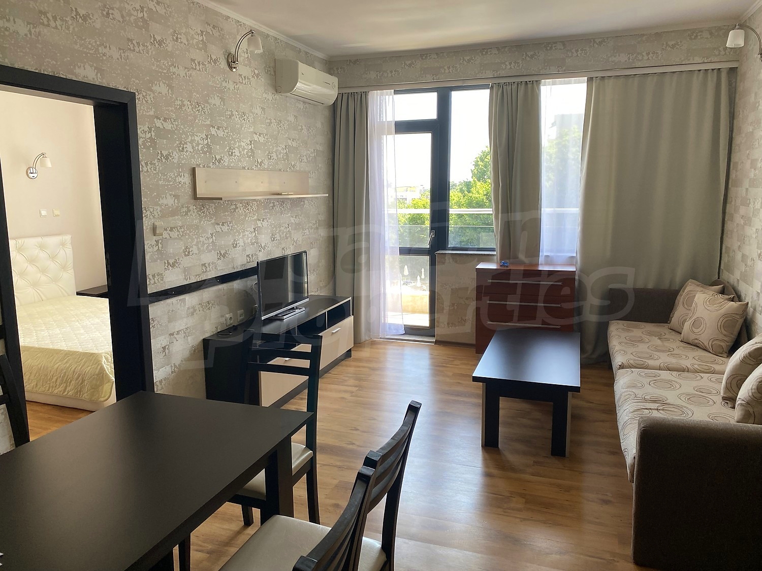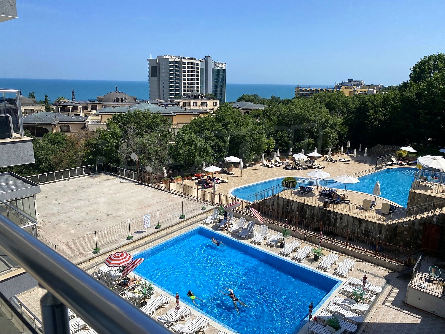 Трехкомнатная квартира площадью 109.84 кв.м. Предлагаемая недвижимость построена в 2010. Отопление кондиционером. Керамогранитный пол, ламинированный пол, межкомнатные двери, окна пвх, покрашенные стены и терракотовый пол имеются в предлагаемой недвижимости. Недвижимость включает следующую мебель и оснащение: встроенная кухня, вытяжка, духовка, душевая, кондиционер, мебель, оборудованная ванная комната и холодильник. Из основных коммуникаций обеспечены электричество, вода и центральная канализация. Ванная комната с туалетом, кладовая, обозначенная стоянка, терраса, интернет, кабельное телевидение и телефон имеются в наличии среди прочих указанных характеристик предлагаемого объекта, что обеспечит дополнительные удобства для пользования. Виды на бассейн, виды на внутренний двор и виды на море открываются с недвижимости, раскрывая часть красот живописной Болгарии.