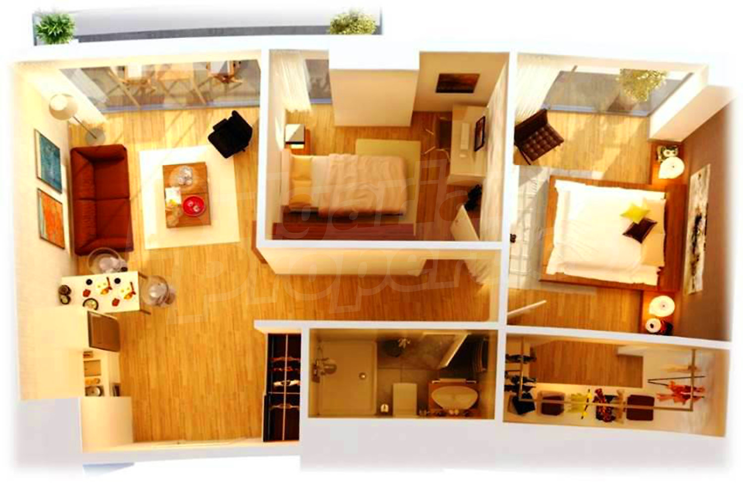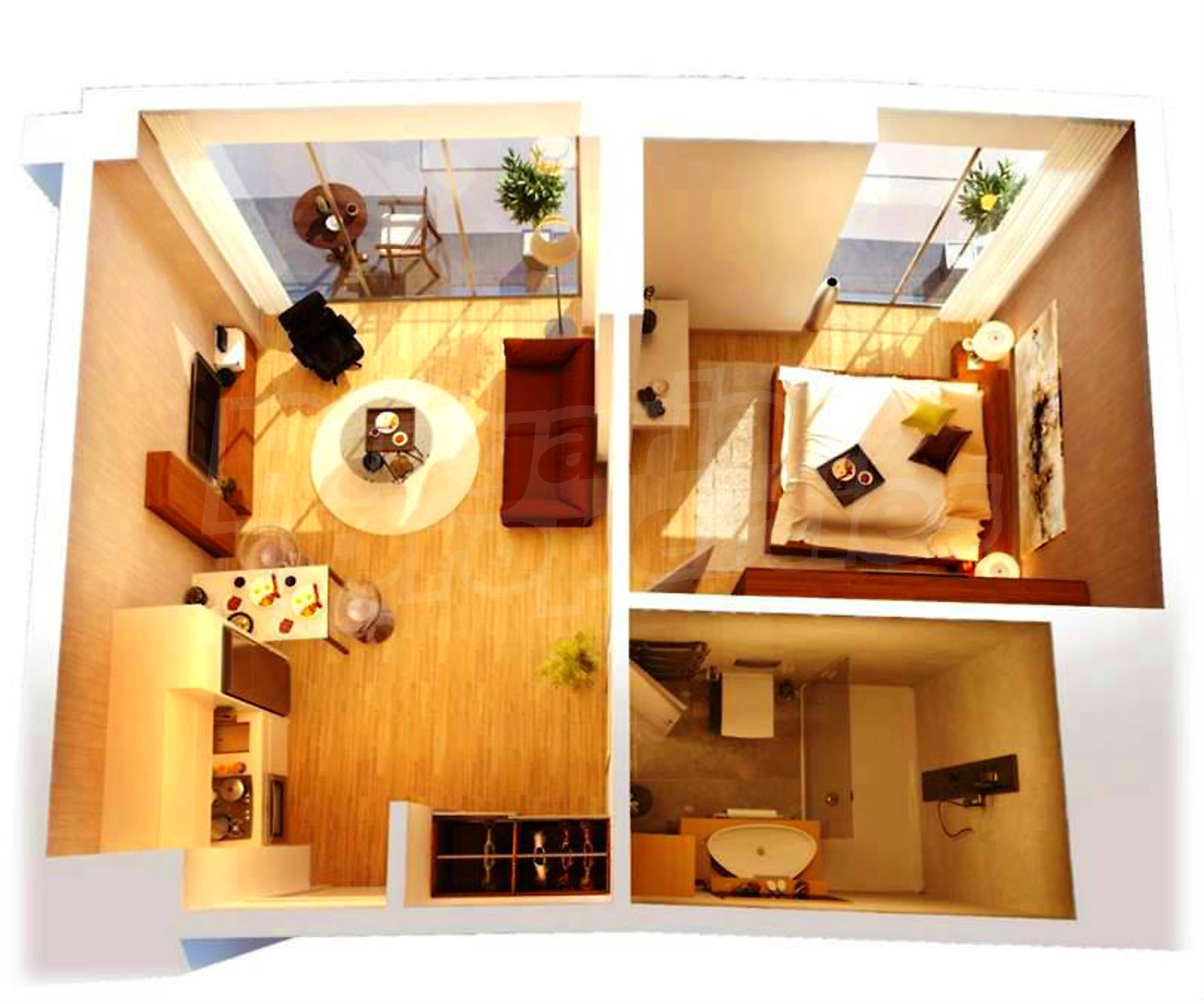 Квартира площадью 47.80 м2. Предлагаемая недвижимость построена в 2022. Армированная входная дверь, внешняя изоляция и двойной стеклопакет имеются в предлагаемой недвижимости. Из основных коммуникаций обеспечены электричество, центральное водоснабжение и центральная канализация. Балконы, ванная комната с туалетом, бассейн, комплекс закрытого типа, консьерж, лифт, общие части с отделкой люкс, заасфальтированная дорога, интернет, кабельное телевидение и телефон имеются в наличии среди прочих отличительных характеристик предлагаемого объекта, что обеспечит дополнительный комфорт для пользования. Виды на населенный пункт и виды на горы открываются с недвижимости, раскрывая часть красот живописной Болгарии.
