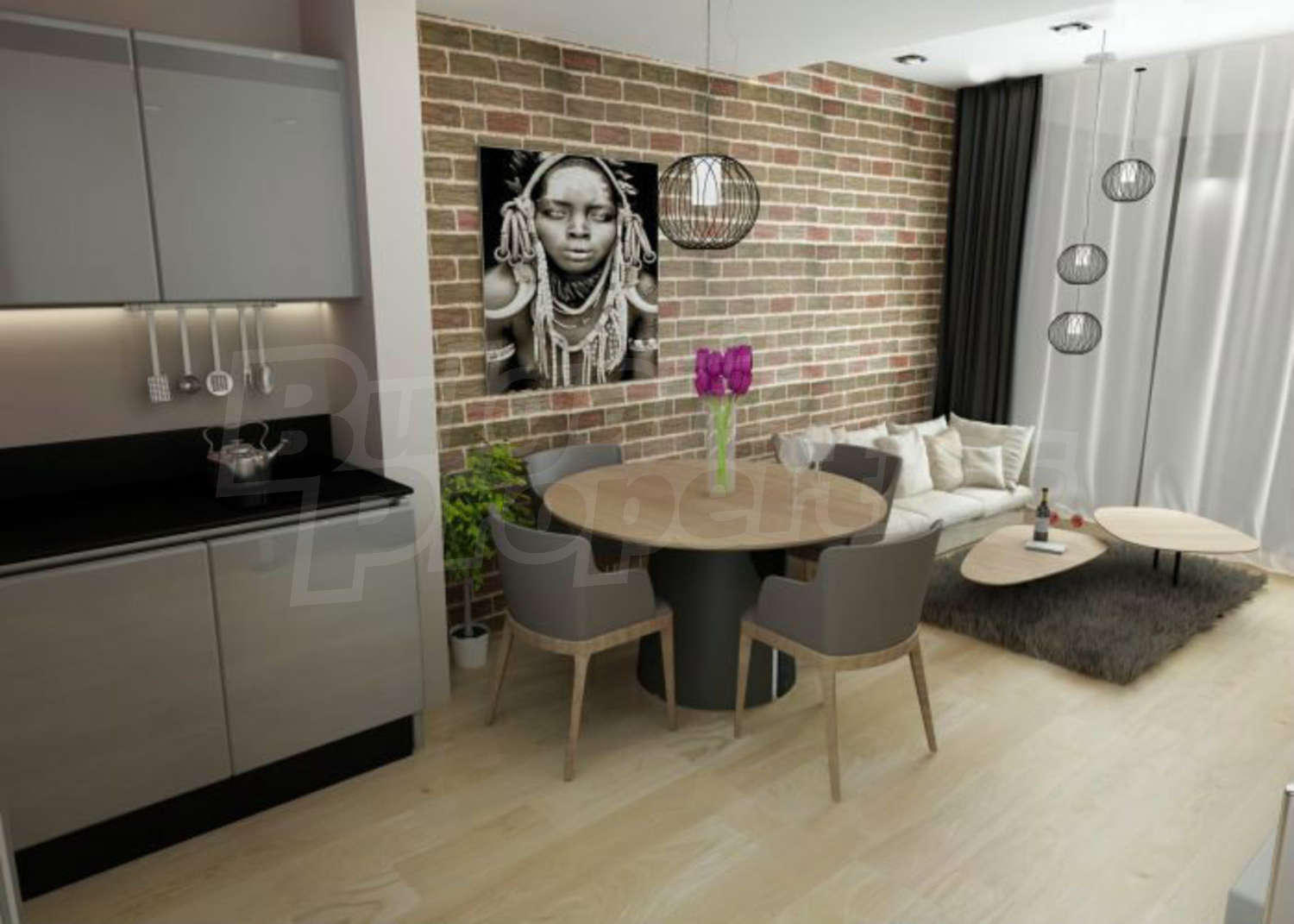 Квартира площадью 113.98 кв.м. Предлагаемая недвижимость построена в 2019. Отопление кондиционером. Обеспечено кондиционирование следующего типа: стандартные кондиционеры. Внешняя изоляция и окна пвх имеются в предлагаемой недвижимости. Из основных коммуникаций обеспечены электричество, центральное водоснабжение и центральная канализация. Парковка вне дороги, парковочное место, подвал, подземная стоянка, терраса, лифт, общие части с отделкой люкс, заасфальтированная дорога, интернет и кабельное телевидение имеются в наличии среди прочих обозначенных характеристик предлагаемого объекта, что обеспечит дополнительный комфорт для пользования. Виды на населенный пункт открываются с недвижимости, раскрывая часть красот живописной Болгарии.