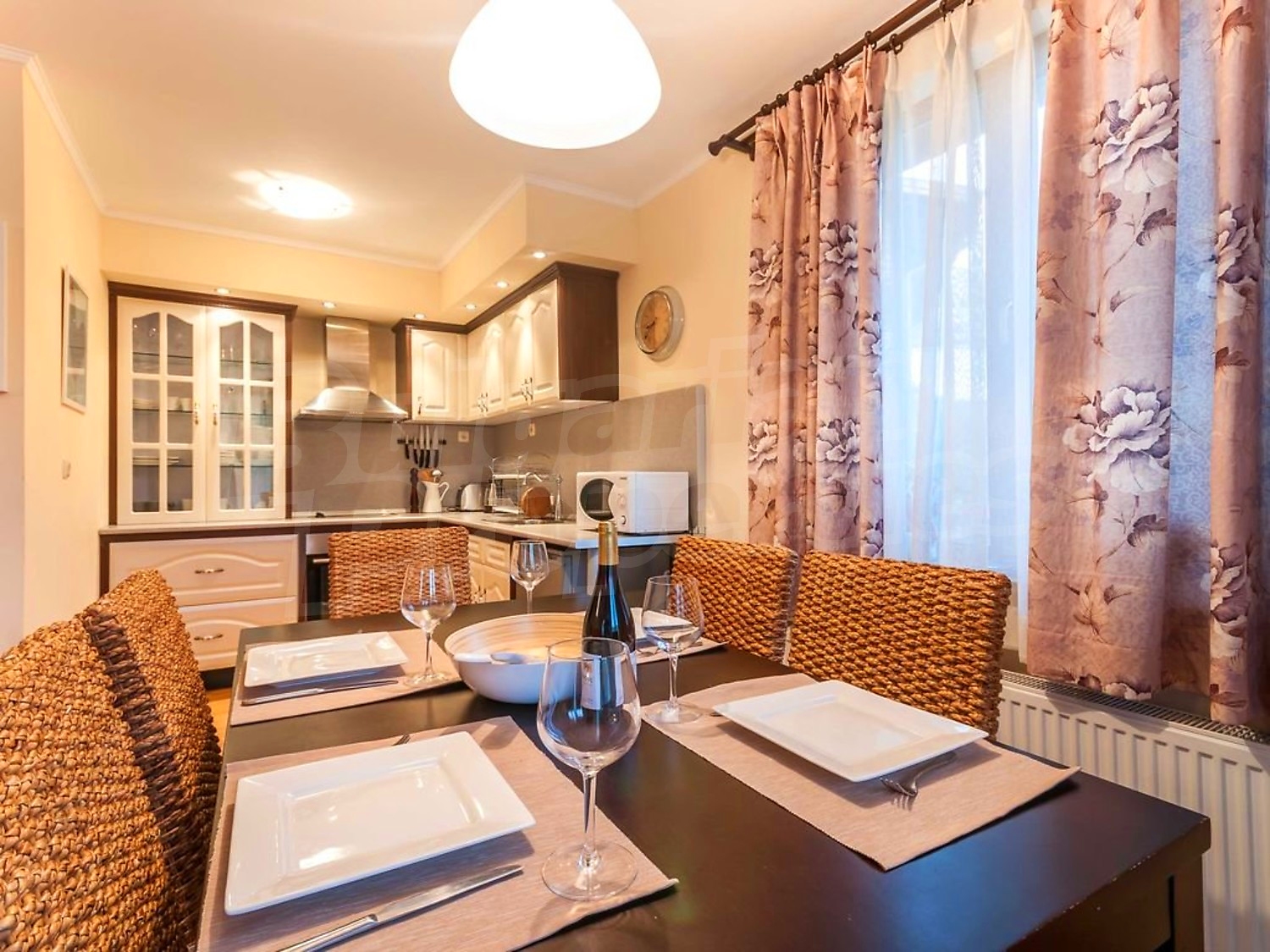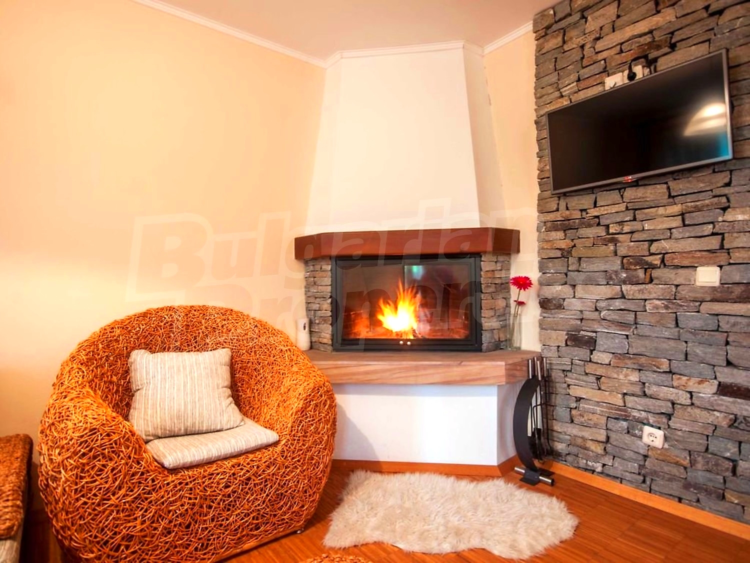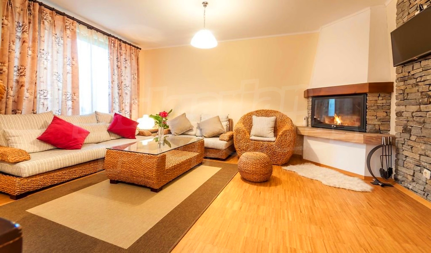 Шале площадью 115.80 кв. метров. Камин. Ламинированный пол, окна пвх и покрашенные стены имеются в предлагаемой недвижимости. Недвижимость включает следующую мебель и оборудование: вытяжка, духовка, мебель, оборудованная ванная комната, телевизор и холодильник. Ванная комната, парковочное место, туалет, джакузи, комплекс закрытого типа и сауна имеются в наличии среди прочих отличительных характеристик предлагаемого объекта, что обеспечит дополнительные удобства для пользования. Виды на горы открываются с недвижимости, раскрывая часть красот живописной Болгарии.