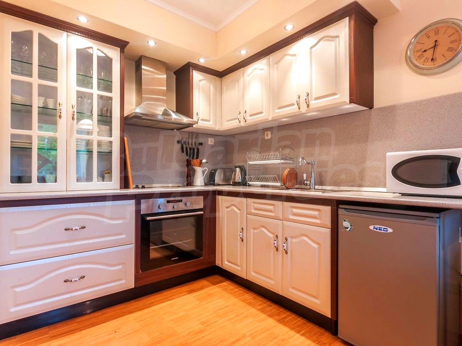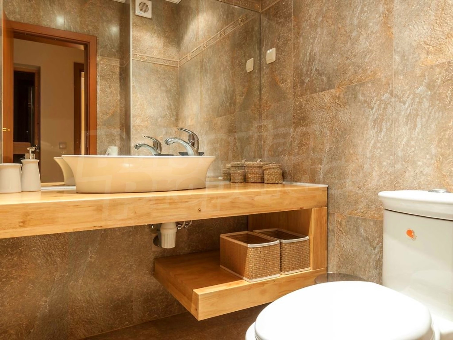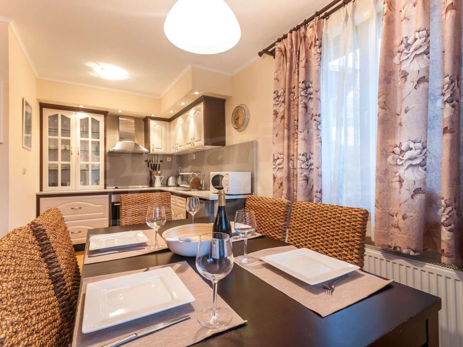 Шале площадью 115.80 кв. метров. Камин. Ламинированный пол, окна пвх и покрашенные стены имеются в предлагаемой недвижимости. Недвижимость включает следующую мебель и оборудование: вытяжка, духовка, мебель, оборудованная ванная комната, телевизор и холодильник. Ванная комната, парковочное место, туалет, джакузи, комплекс закрытого типа и сауна имеются в наличии среди прочих отличительных характеристик предлагаемого объекта, что обеспечит дополнительные удобства для пользования. Виды на горы открываются с недвижимости, раскрывая часть красот живописной Болгарии.