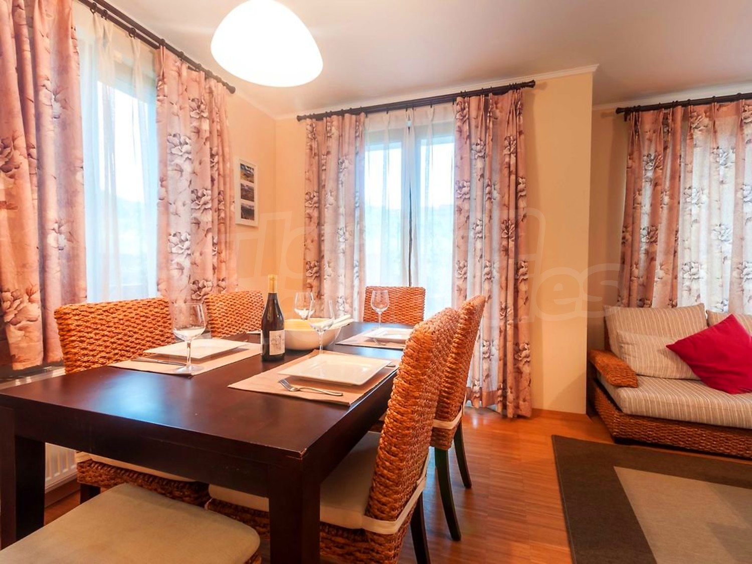 Шале площадью 115.80 кв. метров. Камин. Ламинированный пол, окна пвх и покрашенные стены имеются в предлагаемой недвижимости. Недвижимость включает следующую мебель и оборудование: вытяжка, духовка, мебель, оборудованная ванная комната, телевизор и холодильник. Ванная комната, парковочное место, туалет, джакузи, комплекс закрытого типа и сауна имеются в наличии среди прочих отличительных характеристик предлагаемого объекта, что обеспечит дополнительные удобства для пользования. Виды на горы открываются с недвижимости, раскрывая часть красот живописной Болгарии.
