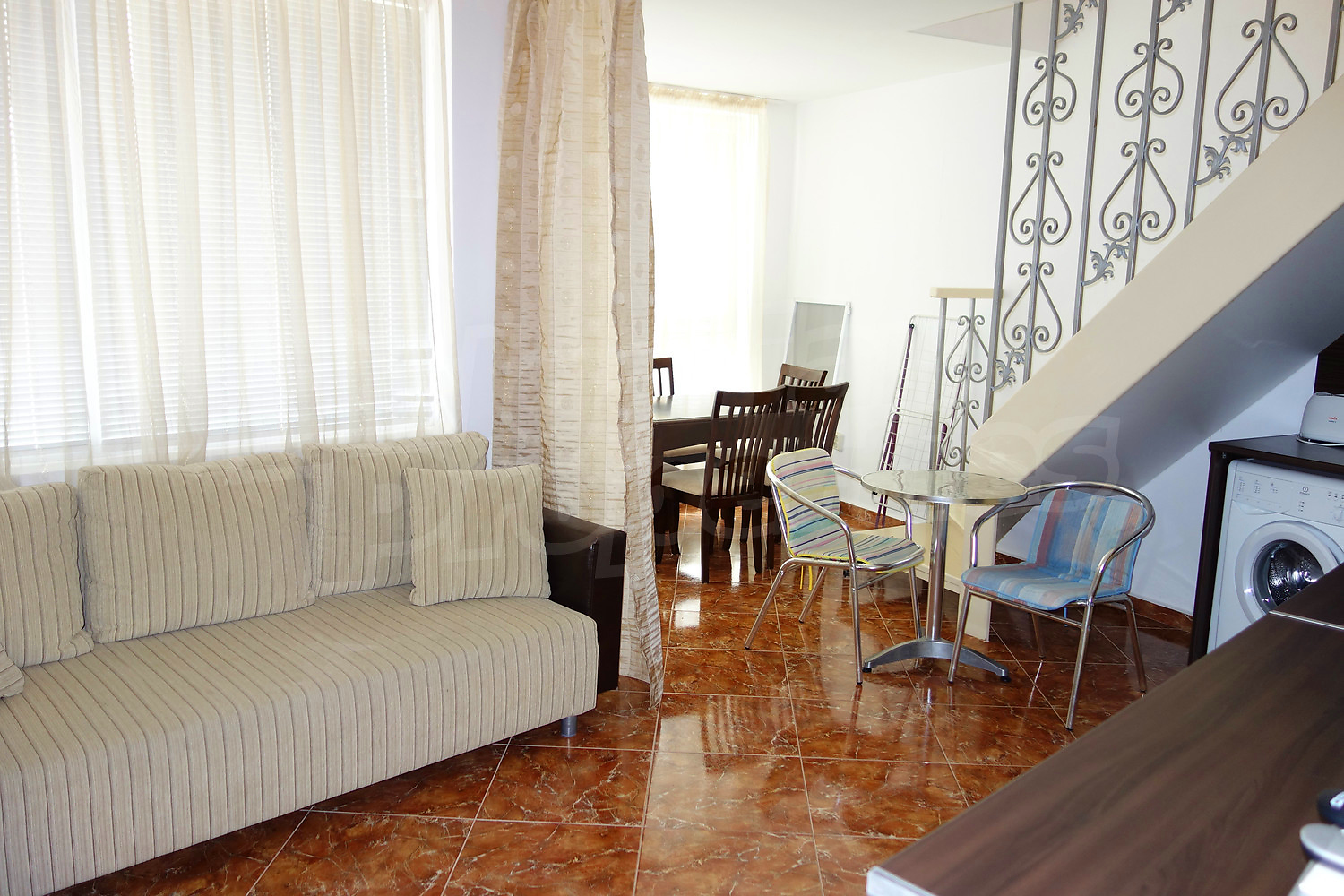 Пентхаус в двух уровнях площадью 74.86 кв.м. Предлагаемая недвижимость построена в 2008. Отопление кондиционером. Окна пвх, покрашенные стены и терракотовый пол имеются в предлагаемой недвижимости. Недвижимость включает следующую мебель и оснащение: бойлер электрический, вытяжка, духовка, душевая, кондиционер, мебель, оборудованная ванная комната, стиральная машина и холодильник. Из основных коммуникаций обеспечены электричество, вода и канализация. Балконы имеются в наличии среди прочих отличительных характеристик предлагаемого объекта, что обеспечит дополнительный комфорт для пользования. Виды на населенный пункт открываются с недвижимости, раскрывая часть красот живописной Болгарии.