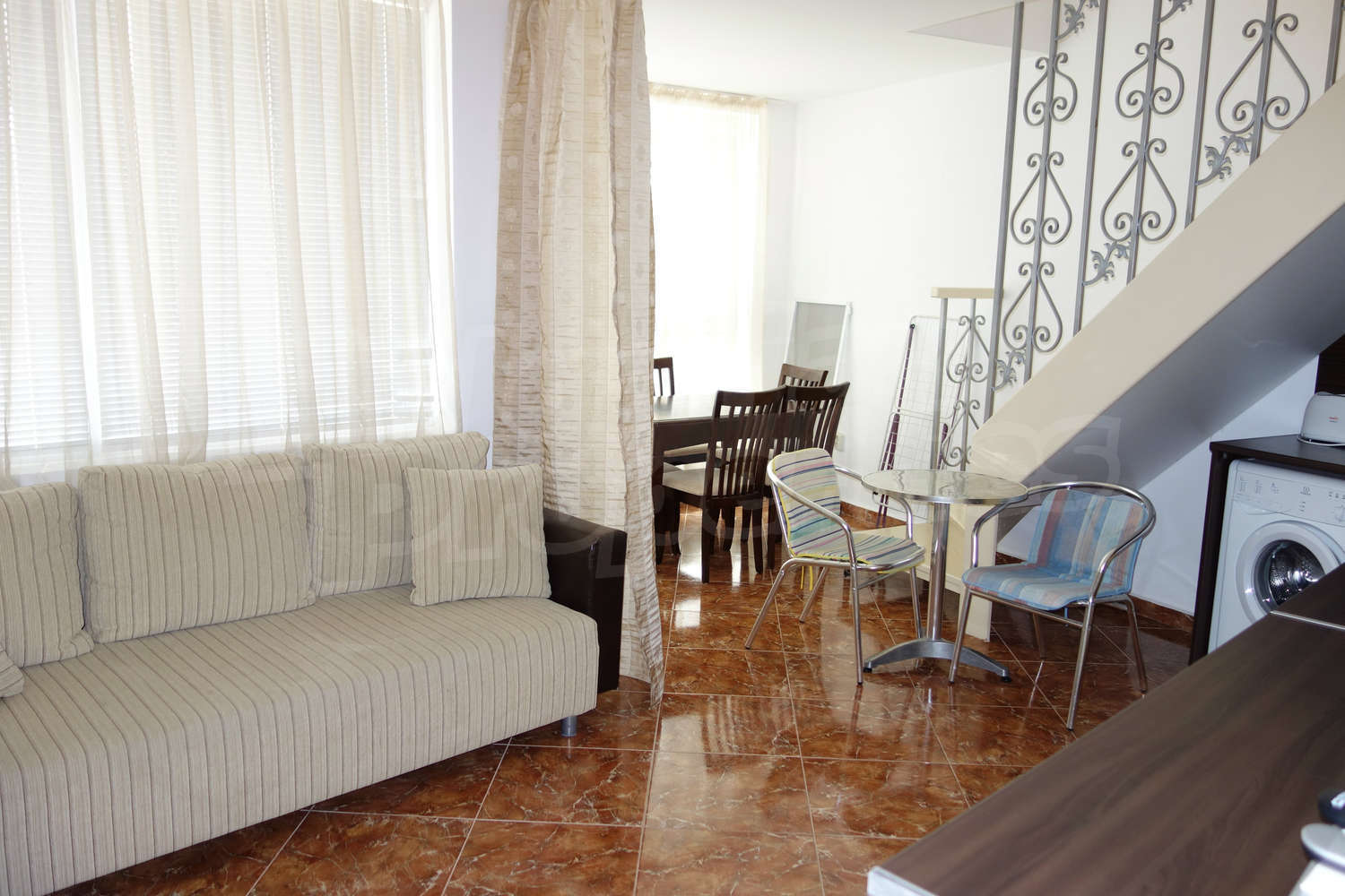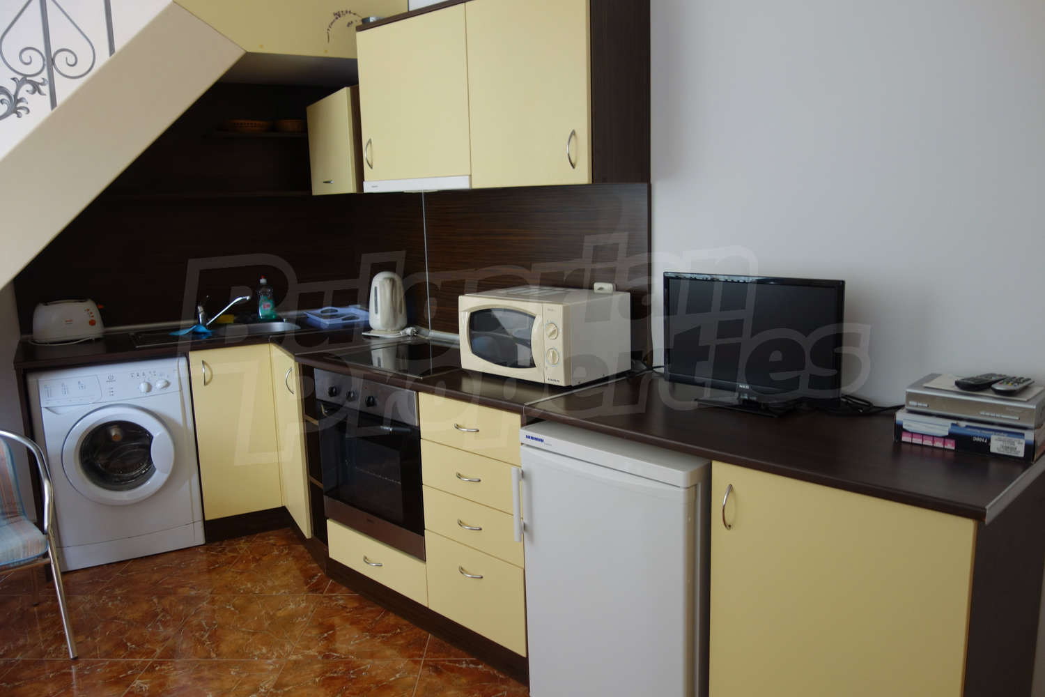Пентхаус в двух уровнях площадью 74.86 кв.м. Предлагаемая недвижимость построена в 2008. Отопление кондиционером. Окна пвх, покрашенные стены и терракотовый пол имеются в предлагаемой недвижимости. Недвижимость включает следующую мебель и оснащение: бойлер электрический, вытяжка, духовка, душевая, кондиционер, мебель, оборудованная ванная комната, стиральная машина и холодильник. Из основных коммуникаций обеспечены электричество, вода и канализация. Балконы имеются в наличии среди прочих отличительных характеристик предлагаемого объекта, что обеспечит дополнительный комфорт для пользования. Виды на населенный пункт открываются с недвижимости, раскрывая часть красот живописной Болгарии.