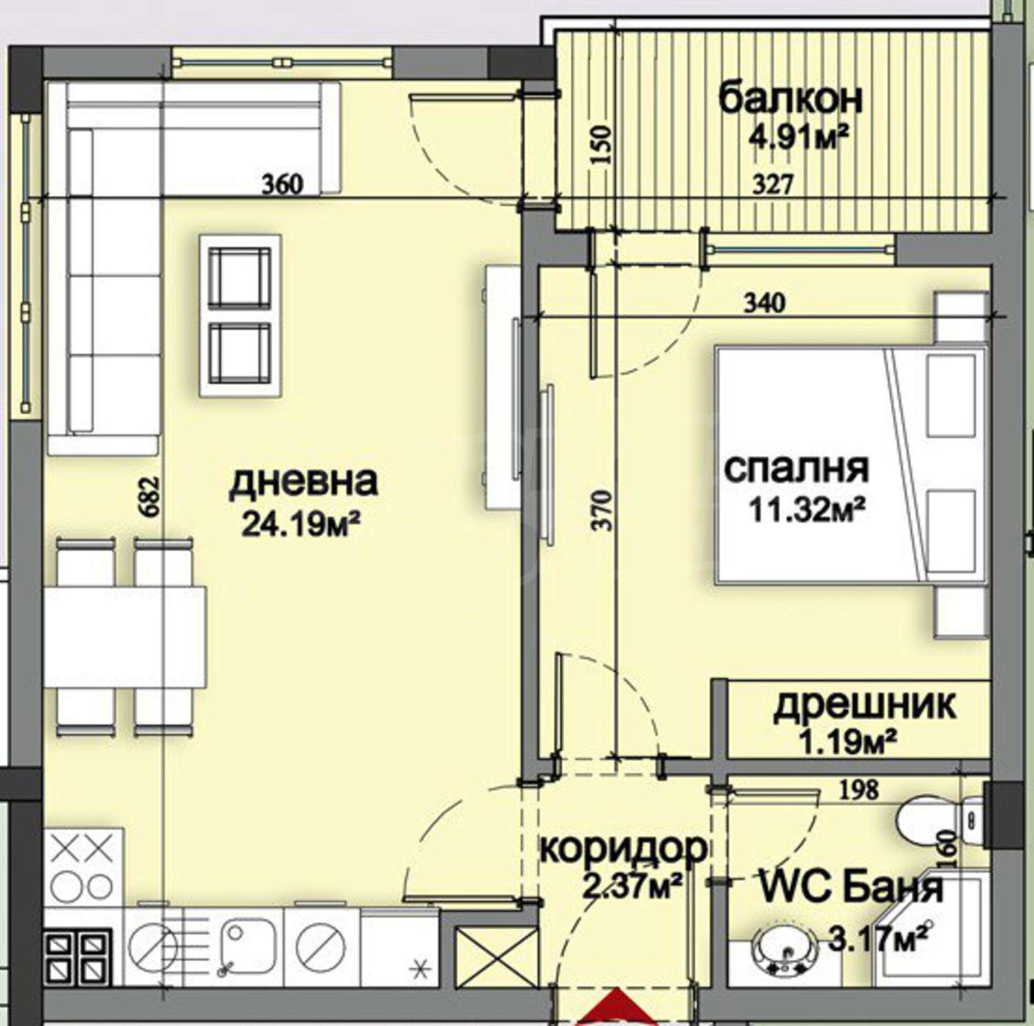 Квартира площадью 62.90 кв.м. Предлагаемая недвижимость построена в 2019. Отопление кондиционером. Армированная входная дверь, внешняя изоляция и окна пвх имеются в предлагаемой недвижимости. Из основных коммуникаций обеспечены электричество, вода и центральная канализация. Балконы, ванная комната с туалетом и лифт имеются в наличии среди прочих указанных характеристик предлагаемого объекта, что обеспечит дополнительный комфорт для пользования. Виды на населенный пункт открываются с недвижимости, раскрывая часть красот живописной Болгарии.