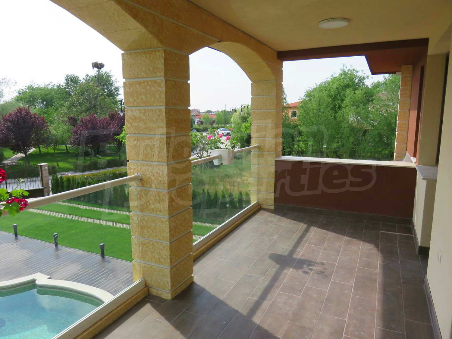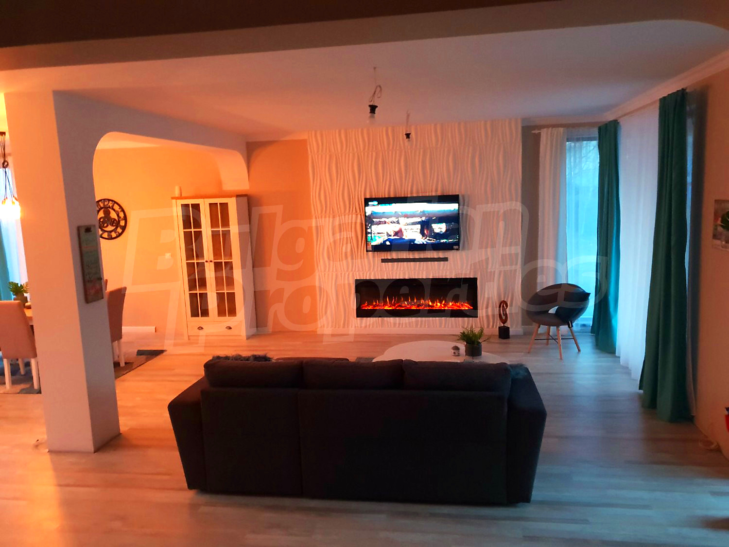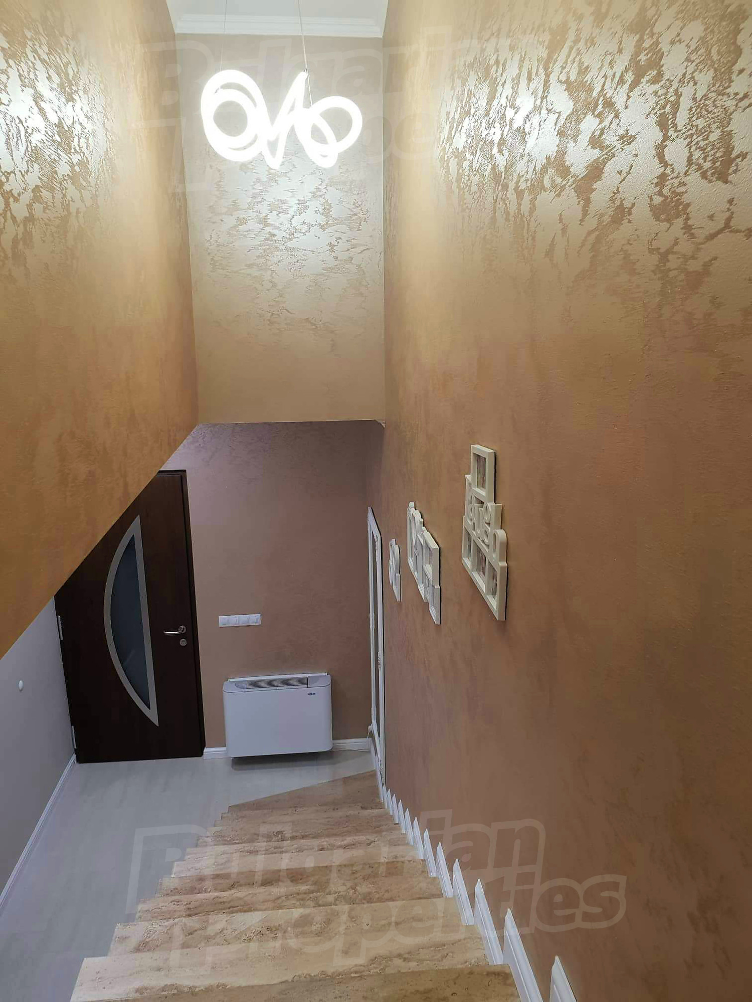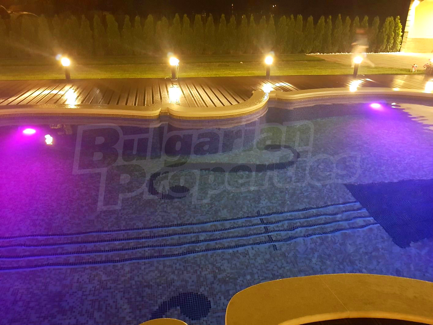 Дом площадью 246 кв. метров. Предлагаемая недвижимость построена в 2019. Газовая система отопления и локальное отопление. Ламинированный пол, окна пвх и покрашенные стены имеются в предлагаемой недвижимости. Недвижимость включает следующую мебель и оборудование: мебель, оборудованная ванная комната и телевизор. Из основных коммуникаций обеспечены отопление на газу, электричество, центральное водоснабжение и центральная канализация. Балконы, гараж, комплекс закрытого типа, общие части с отделкой люкс и заасфальтированная дорога имеются в наличии среди прочих характеристик предлагаемого объекта, что обеспечит дополнительный комфорт для пользования. Виды на бассейн и виды на внутренний двор открываются с недвижимости, раскрывая часть красот живописной Болгарии.