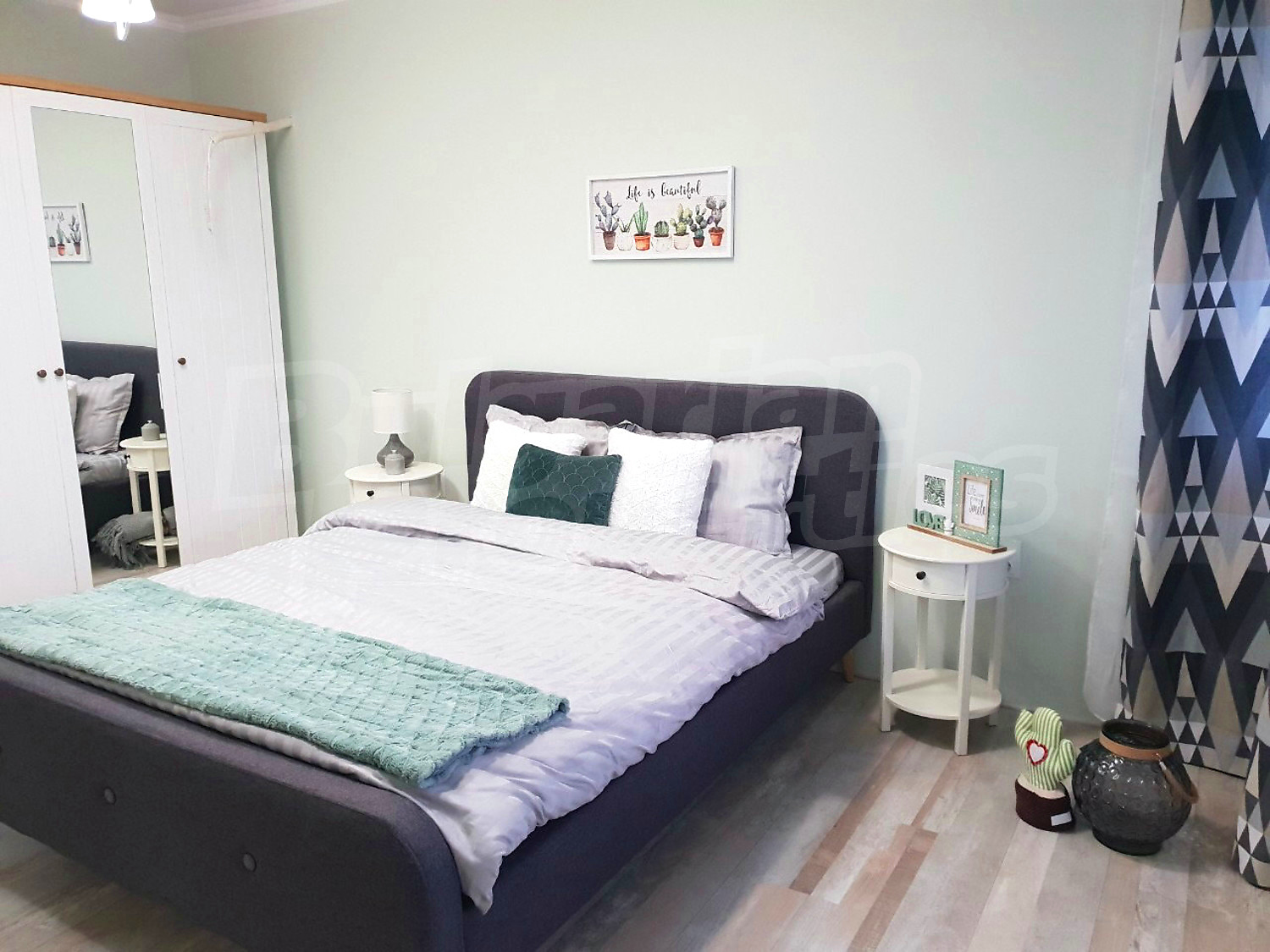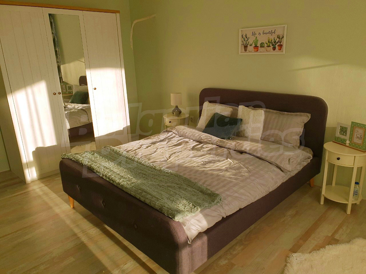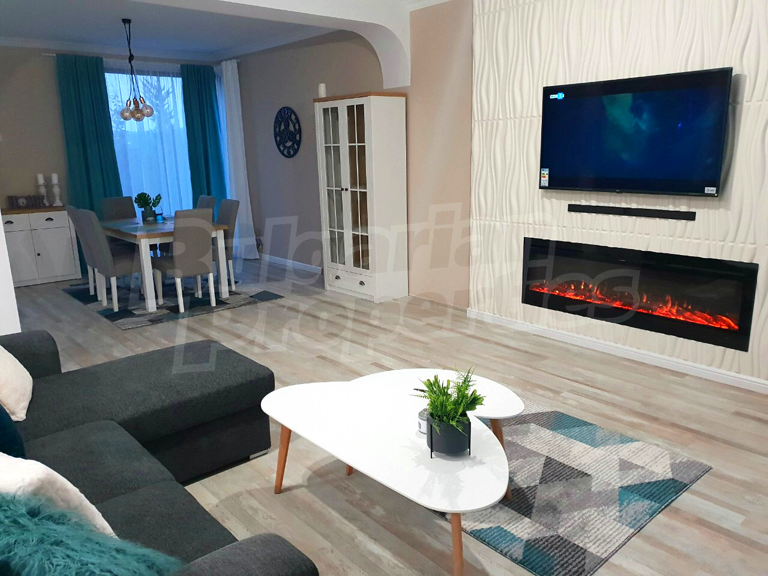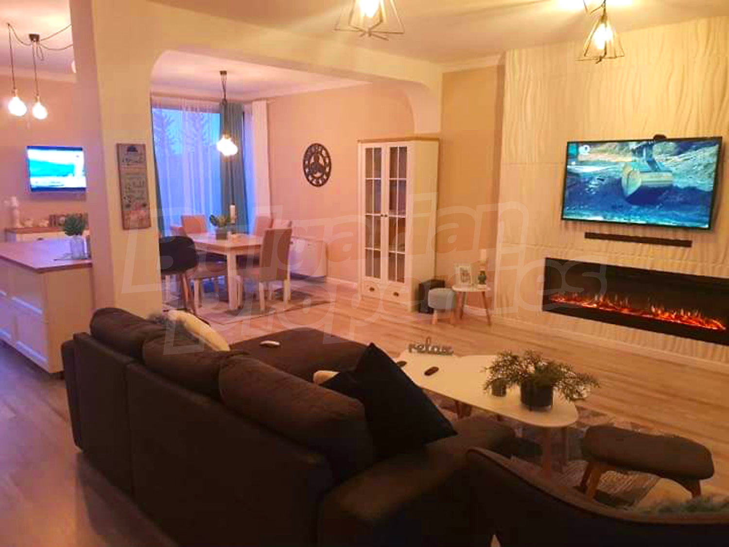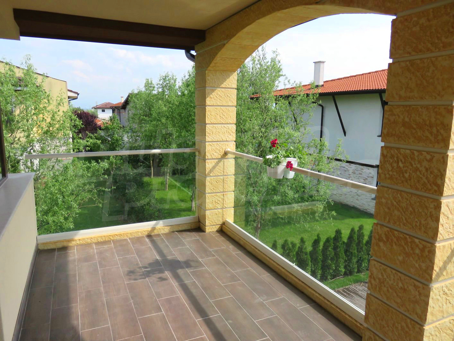 Дом площадью 246 кв. метров. Предлагаемая недвижимость построена в 2019. Газовая система отопления и локальное отопление. Ламинированный пол, окна пвх и покрашенные стены имеются в предлагаемой недвижимости. Недвижимость включает следующую мебель и оборудование: мебель, оборудованная ванная комната и телевизор. Из основных коммуникаций обеспечены отопление на газу, электричество, центральное водоснабжение и центральная канализация. Балконы, гараж, комплекс закрытого типа, общие части с отделкой люкс и заасфальтированная дорога имеются в наличии среди прочих характеристик предлагаемого объекта, что обеспечит дополнительный комфорт для пользования. Виды на бассейн и виды на внутренний двор открываются с недвижимости, раскрывая часть красот живописной Болгарии.