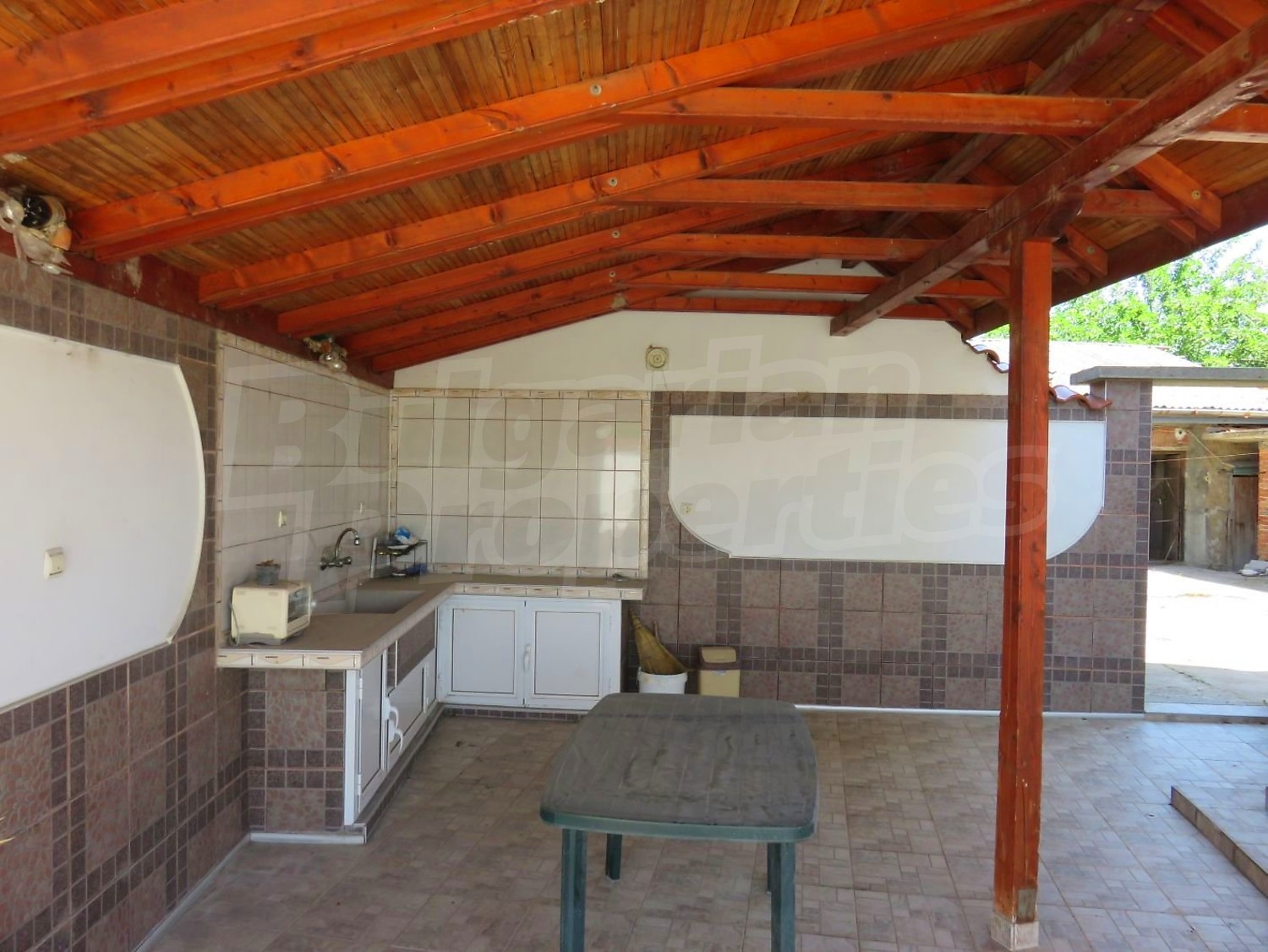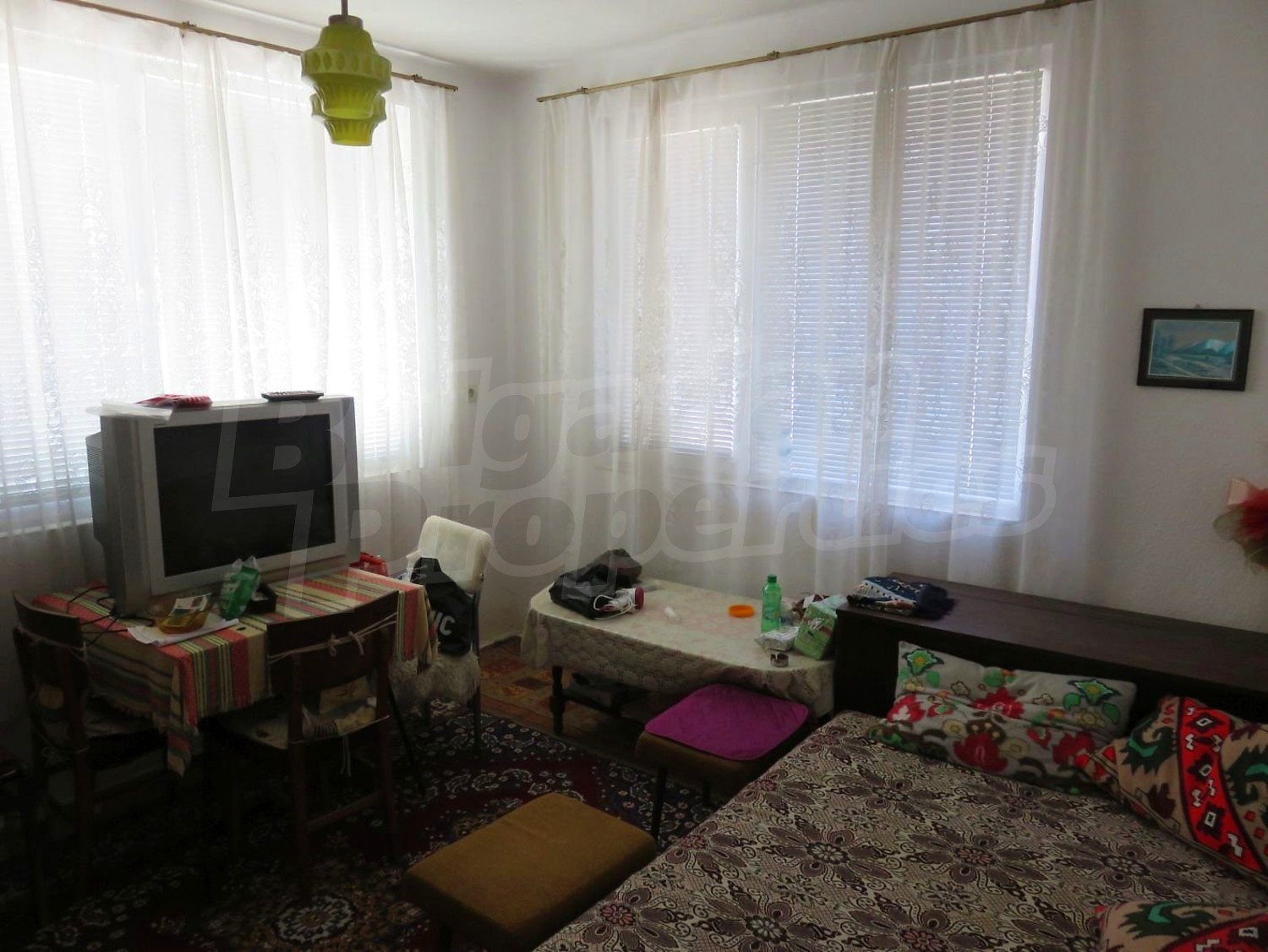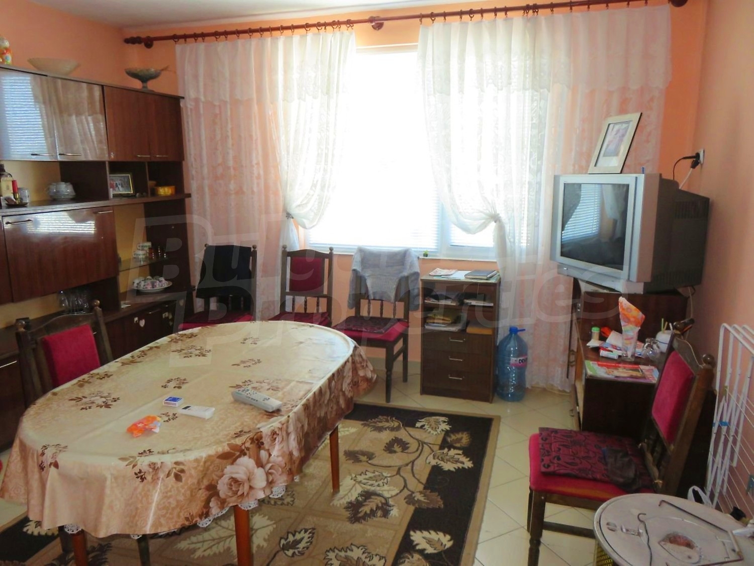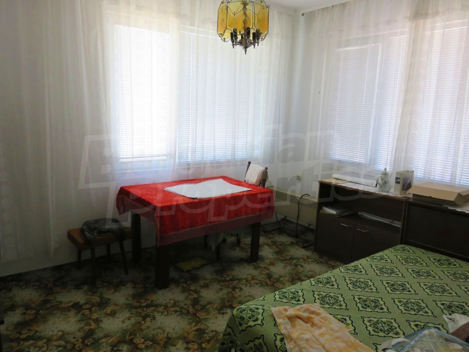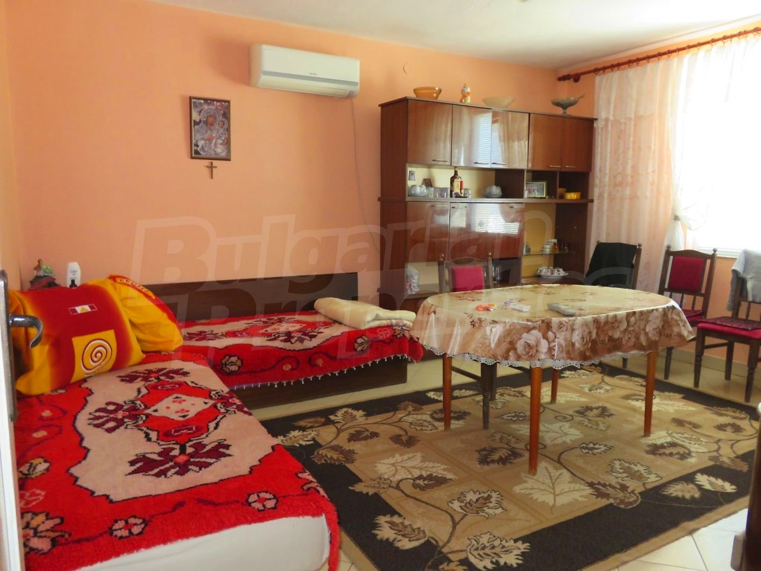 Дом площадью 140 м2. Отопление кондиционером. Обеспечено кондиционирование следующего типа: стандартные кондиционеры. Внешняя изоляция, ковровый настил, межкомнатные двери, окна пвх, стены покрашенные латексной краской и терракотовый пол имеются в предлагаемой недвижимости. Недвижимость включает следующую мебель и оснащение: бойлер электрический, вытяжка, духовка, кондиционер, мебель, оборудованная ванная комната, стиральная машина, телевизор и холодильник. Из основных коммуникаций обеспечены электричество, центральное водоснабжение и центральная канализация. Веранда, внутренний туалет, внутренняя ванная, гараж, терраса, заасфальтированная дорога и кабельное телевидение имеются в наличии среди прочих указанных характеристик предлагаемого объекта, что обеспечит дополнительный комфорт для пользования. Виды на внутренний двор открываются с недвижимости, раскрывая часть красот живописной Болгарии.