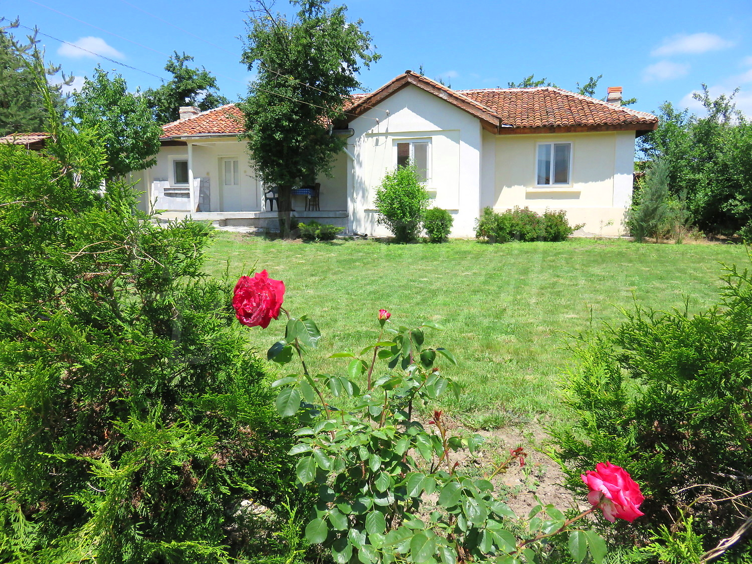 Дом площадью 90 кв.м. Окна пвх, покрашенные стены и терракотовый пол имеются в предлагаемой недвижимости. Недвижимость включает следующую мебель и оборудование: встроенная кухня и оборудованная ванная комната. Из основных коммуникаций обеспечены электричество, вода и центральная канализация. Ванная комната с туалетом, гараж и заасфальтированная дорога имеются в наличии среди прочих отличительных характеристик предлагаемого объекта, что обеспечит дополнительные удобства для пользования. Виды на горы открываются с недвижимости, раскрывая часть красот живописной Болгарии.