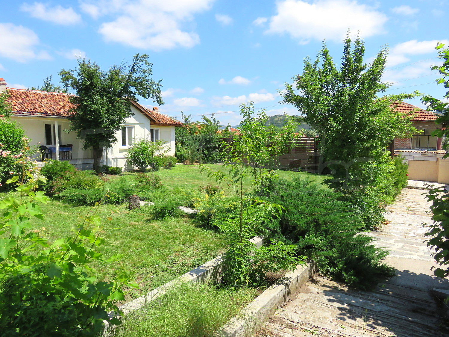 Дом площадью 90 кв.м. Окна пвх, покрашенные стены и терракотовый пол имеются в предлагаемой недвижимости. Недвижимость включает следующую мебель и оборудование: встроенная кухня и оборудованная ванная комната. Из основных коммуникаций обеспечены электричество, вода и центральная канализация. Ванная комната с туалетом, гараж и заасфальтированная дорога имеются в наличии среди прочих отличительных характеристик предлагаемого объекта, что обеспечит дополнительные удобства для пользования. Виды на горы открываются с недвижимости, раскрывая часть красот живописной Болгарии.
