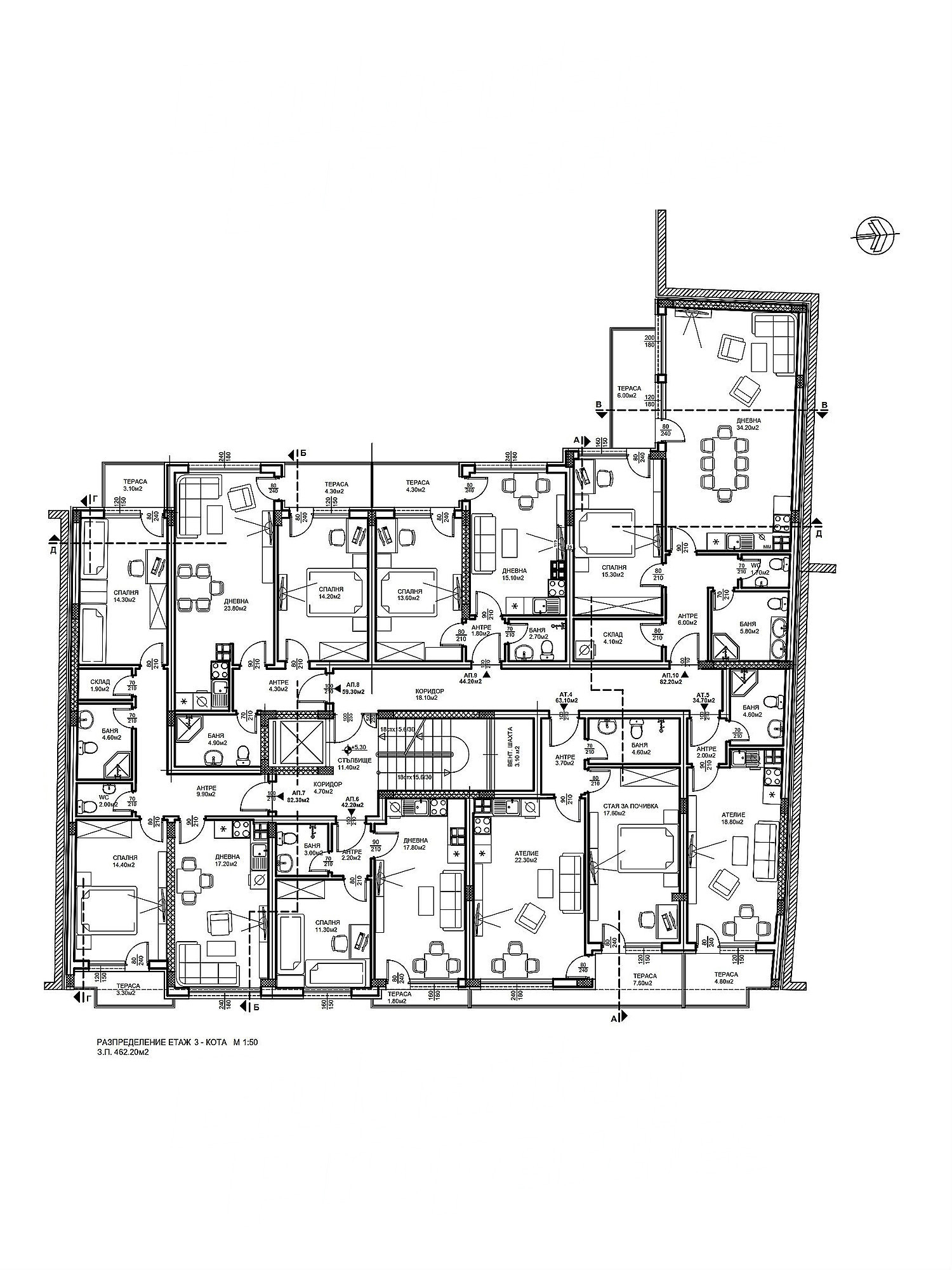 Апартаменты (различные типы), Квартиры-студии, Двухкомнатные квартиры, Трёхкомнатные квартиры